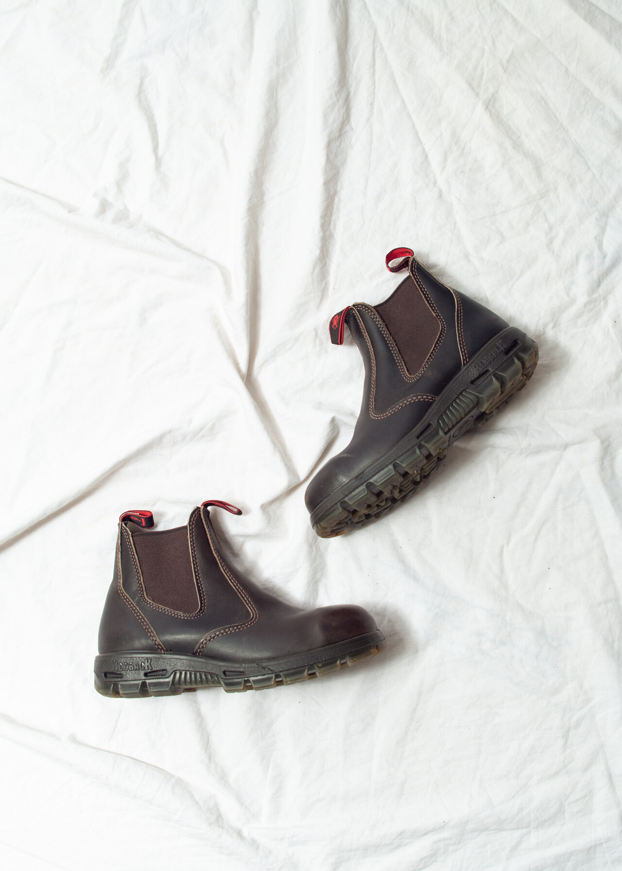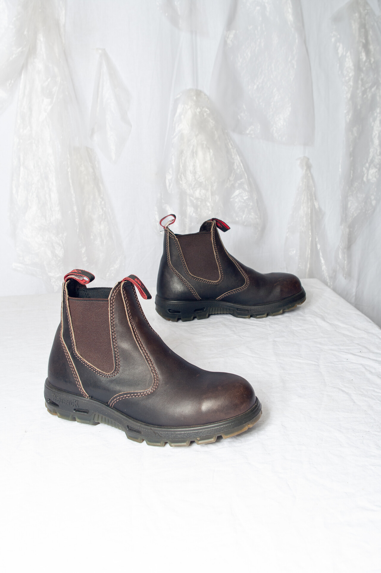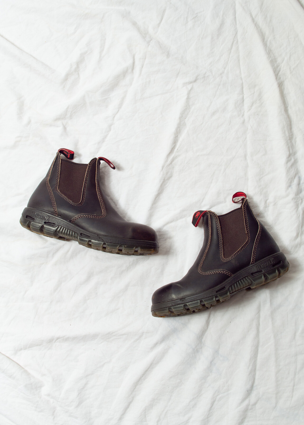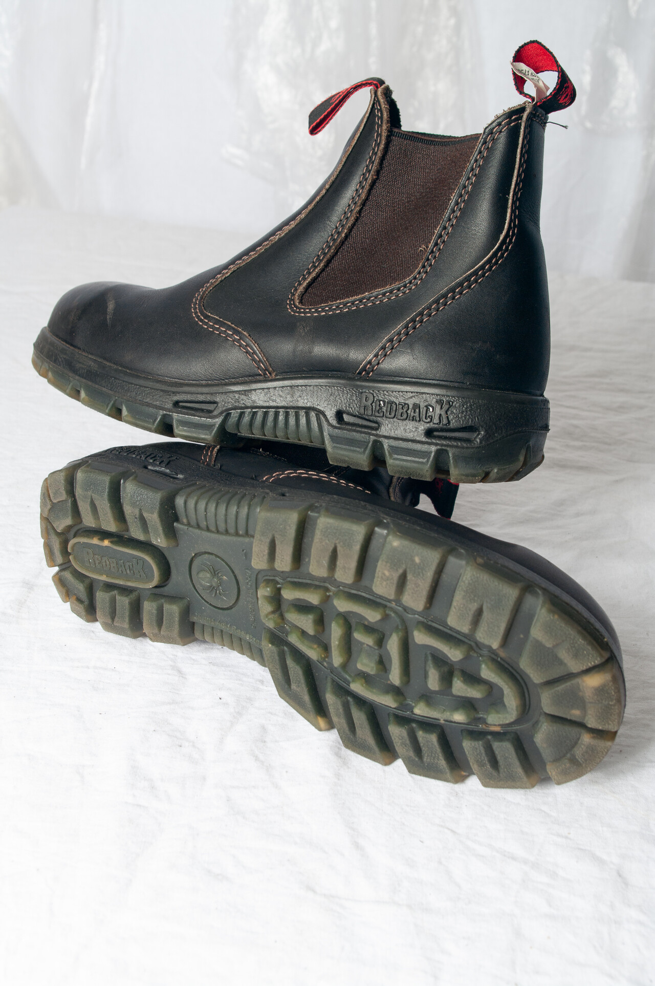 Tags: 2000s vintage fashion, chunky ankle boots, leather boots, made in Australia, Redback, whimsi twee, work footwear, workwear, y2k grunge outfit, y2k style accessory