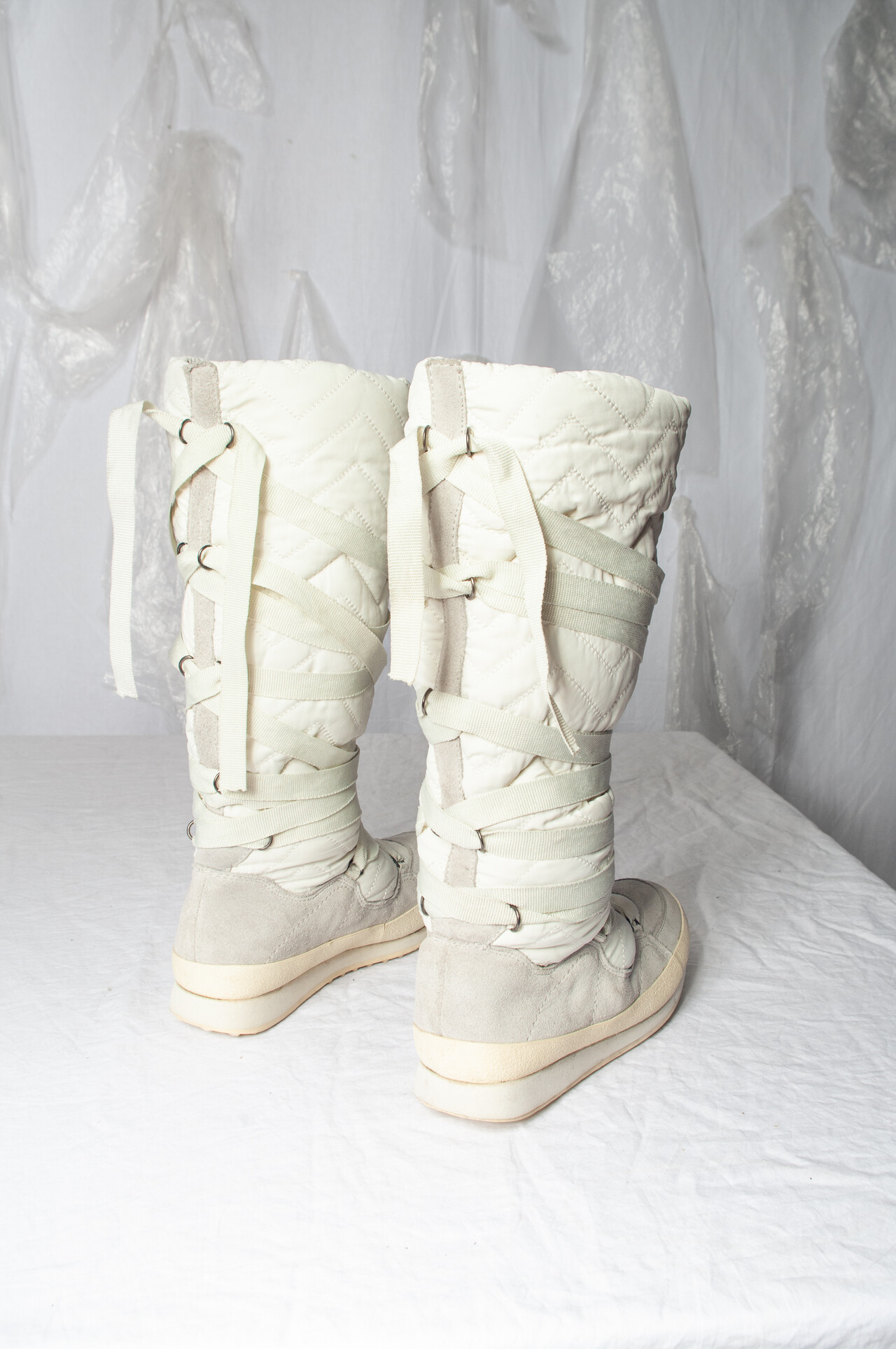 These Y2K vintage vagabond boots are like strapping your feet into a time machine set to “winter chic” mode. Available in white, they’ll have you strutting through the snow with early 2000s swagger.