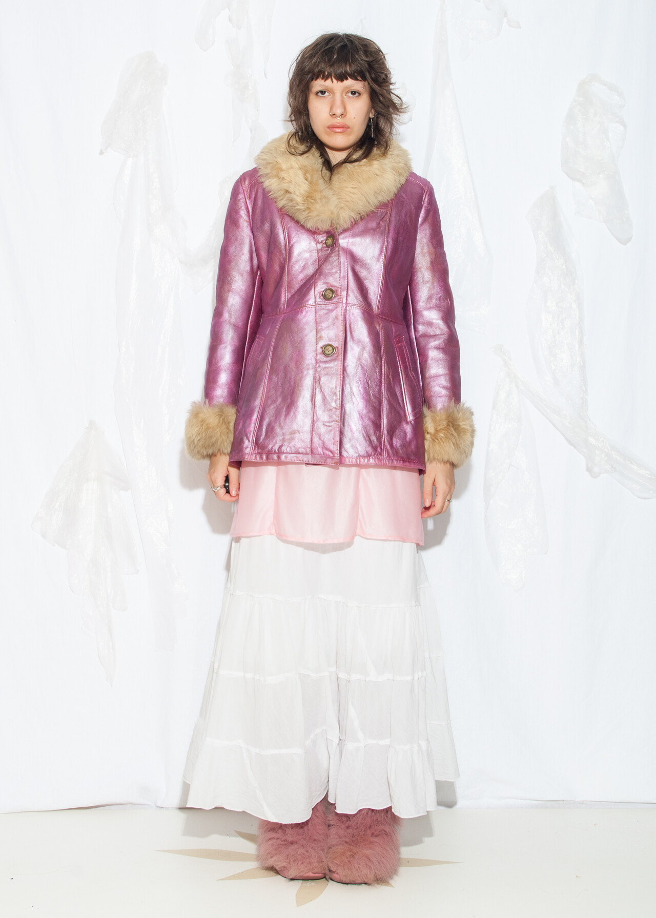 Tags: 70s vintage fashion, afghan coat, fur collar coat, hand-painted, leather winter coat, metallic leather, Penny Lane style, pink suede jacket, real leather coat, reworked, sheepskin fur coat, upcycled, y2k grunge outfit
