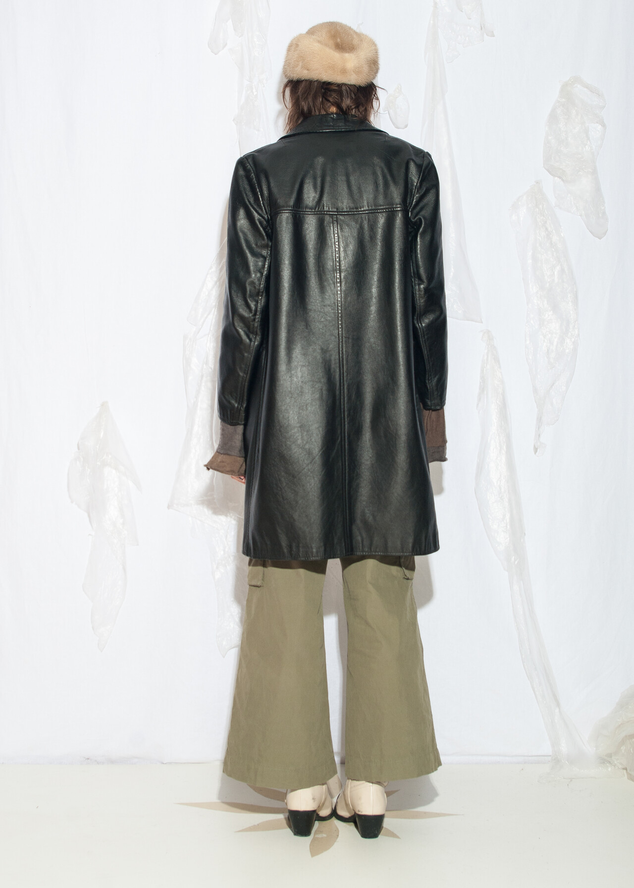 Vintage 60s Leather Midi Coat in Black