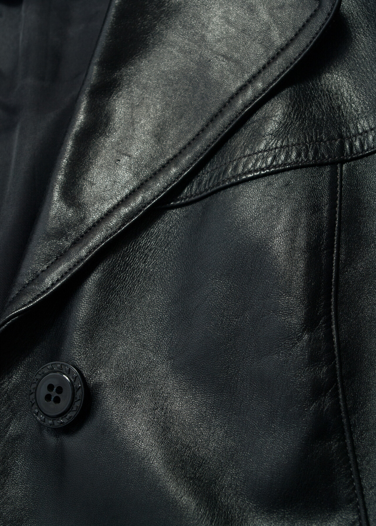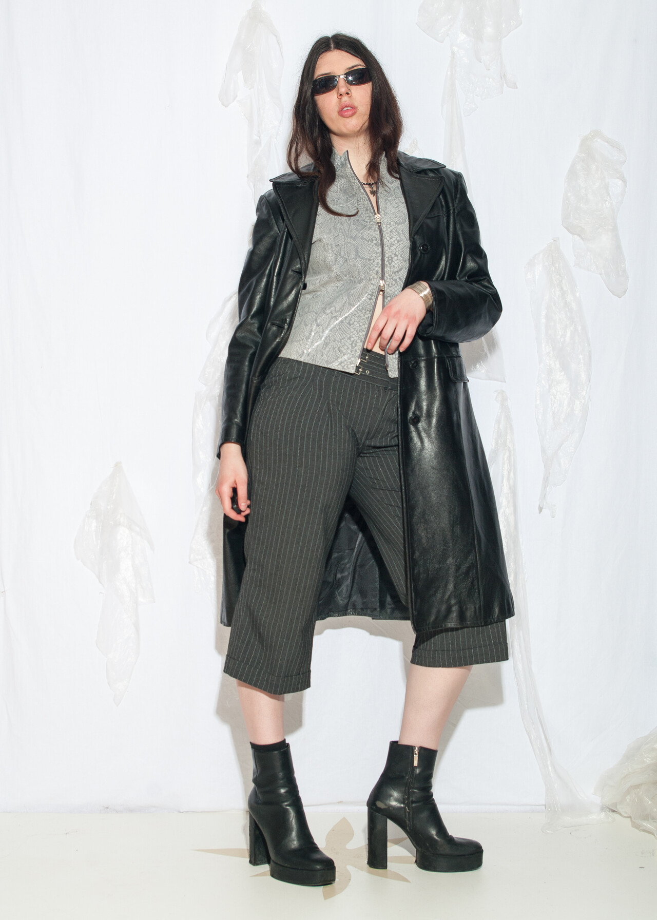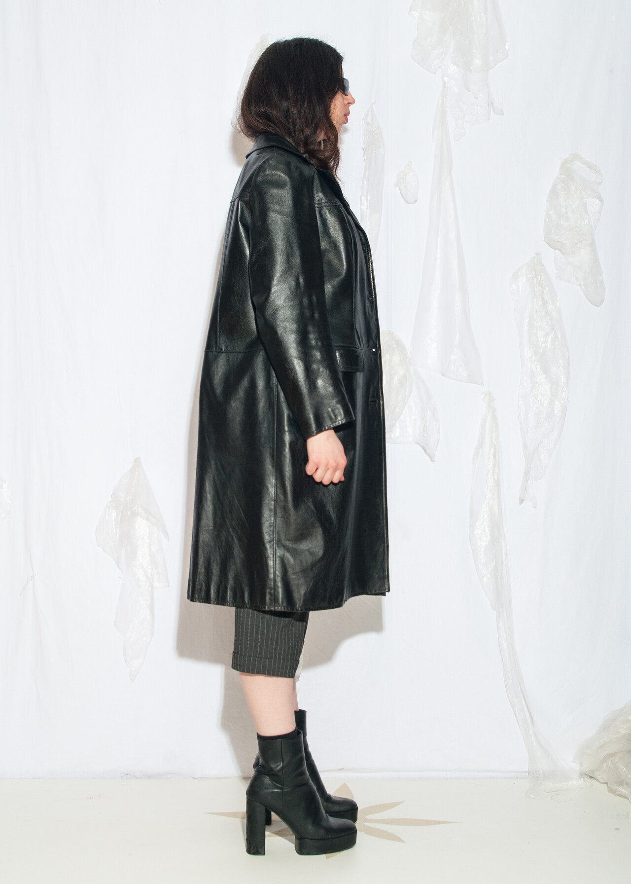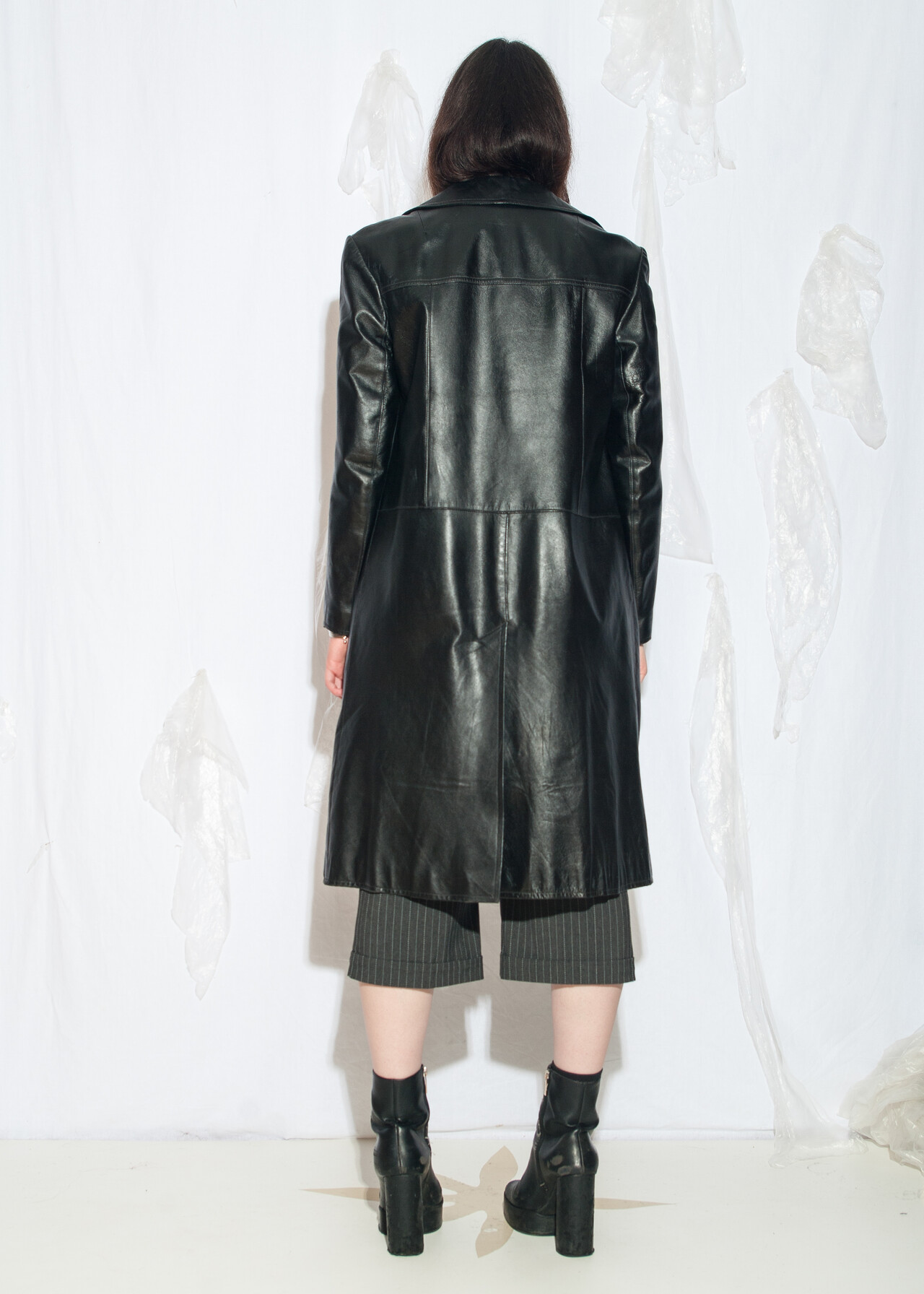 Tags: 00s streetwear, 60s vintage clothing, European vintage, grunge outfit, long blazer cut coat, Matrix style jacket, minimalist look, real leather coat, whimsigoth, y2k style fashion