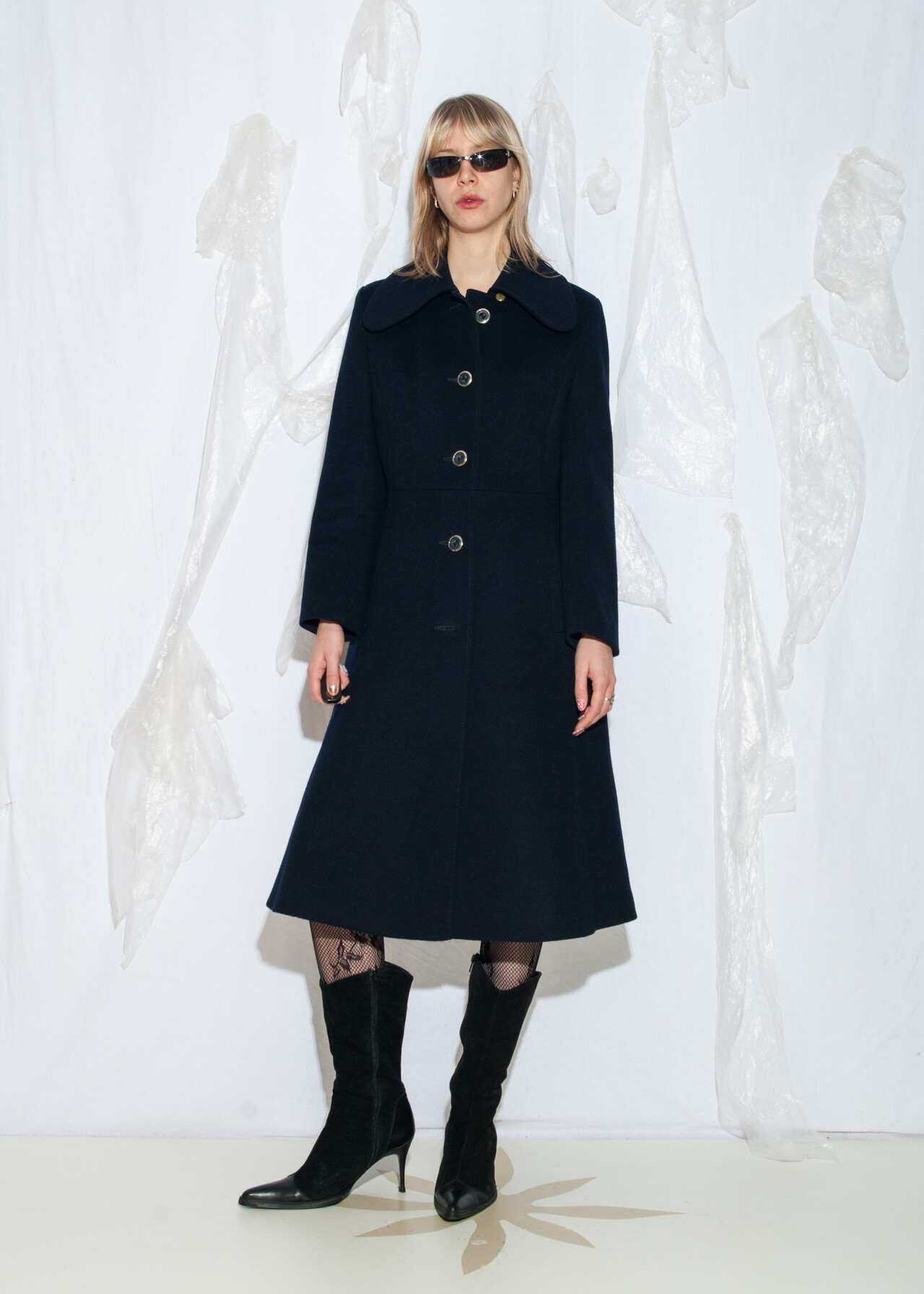 Tags: 60s vintage fashion, European vintage, long wool coat, minimalist look, mod coat, round collar, slim fit jacket, y2k grunge outfit, y2k style clothing
