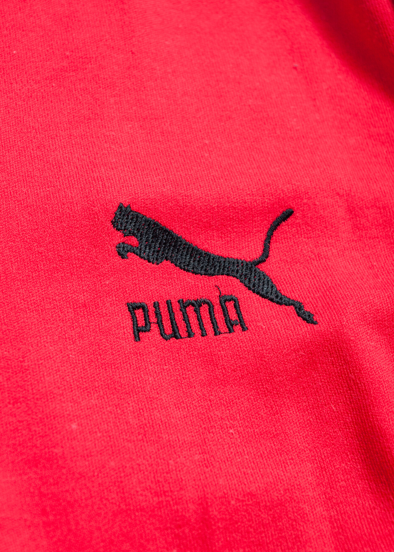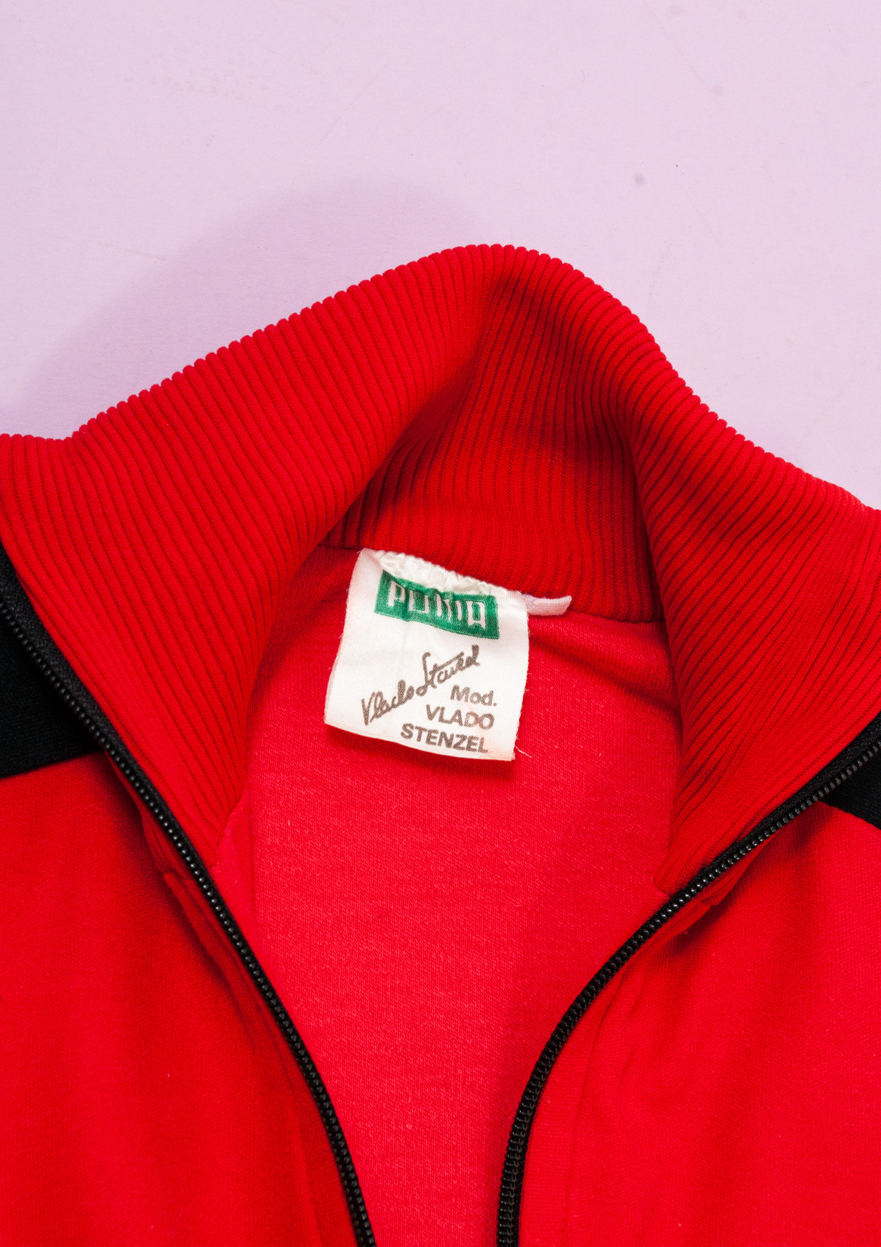 Tags: 70s vintage fashion, fitted sweatshirt, Puma, rare vintage find, red soccer jacket, retro sports top, tracksuit top, y2k style clothing, zip front sweater
