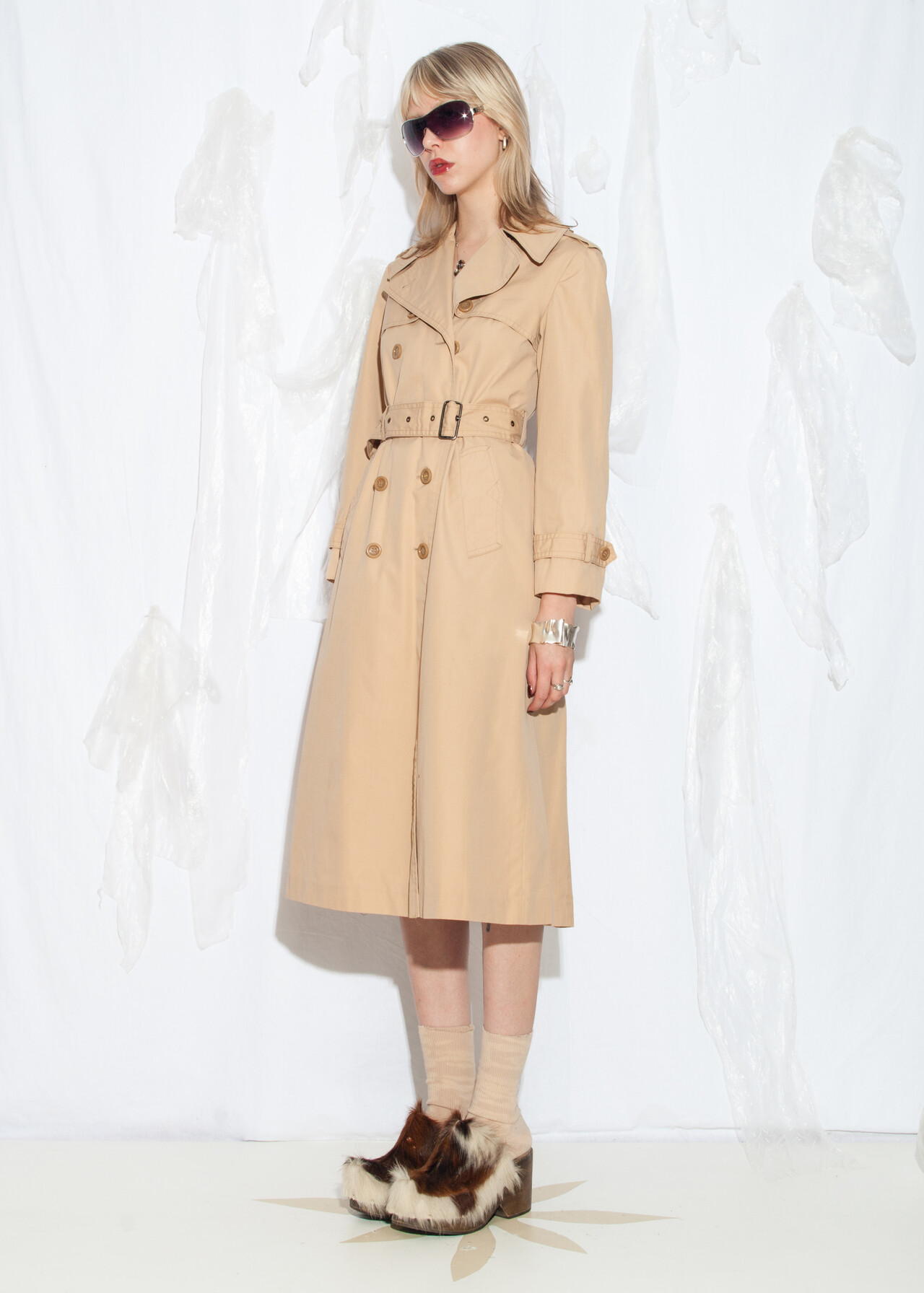 Tags: 70s vintage fashion, beige trench coat, belted coat, double breasted, long jacket, preppy mod aesthetic, y2k style clothing