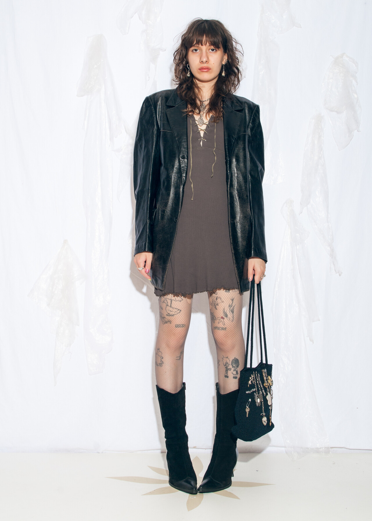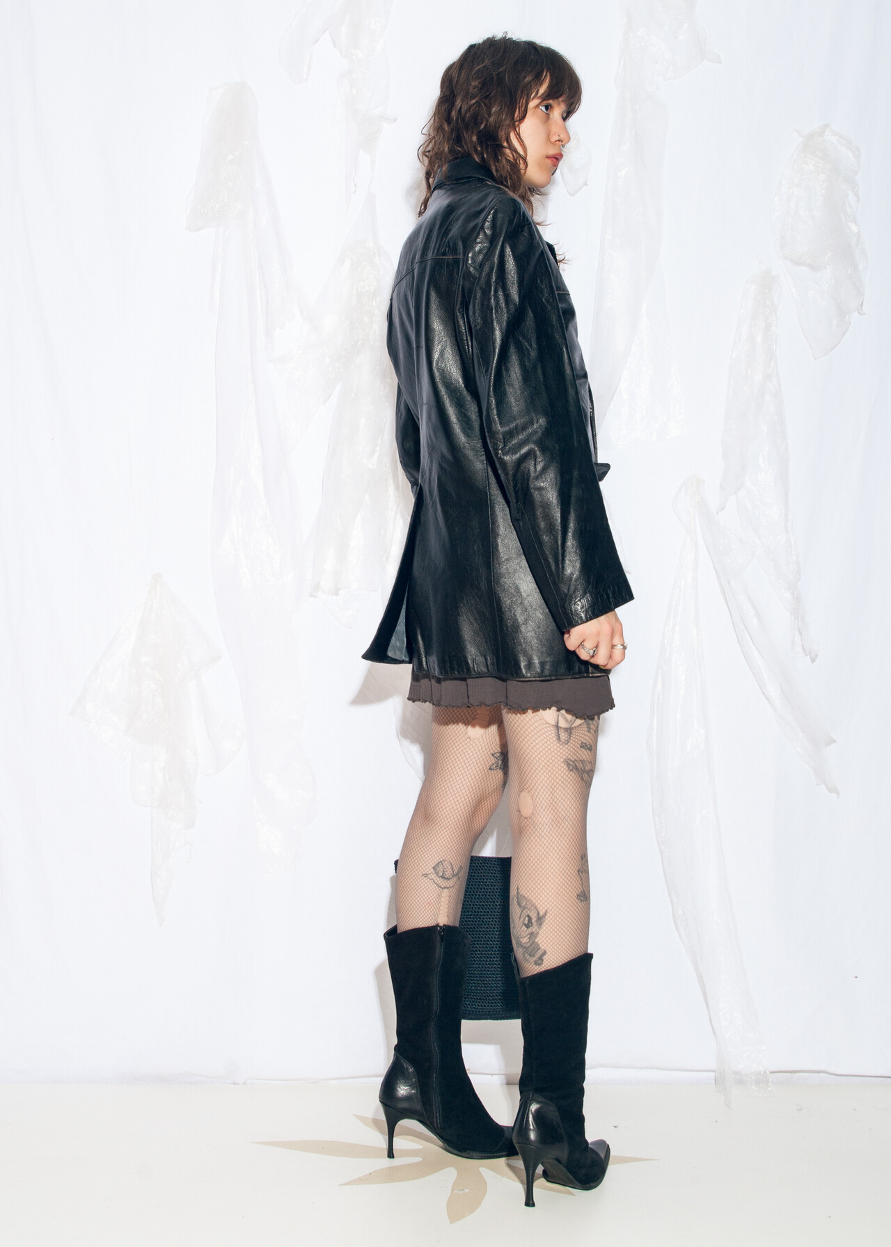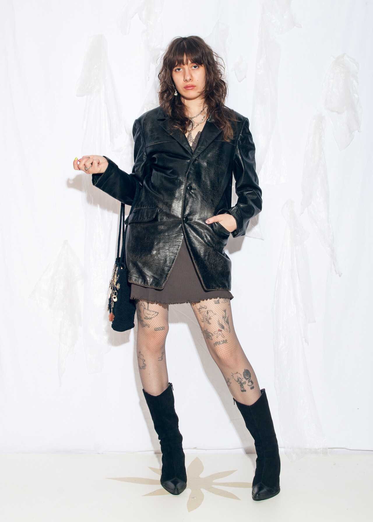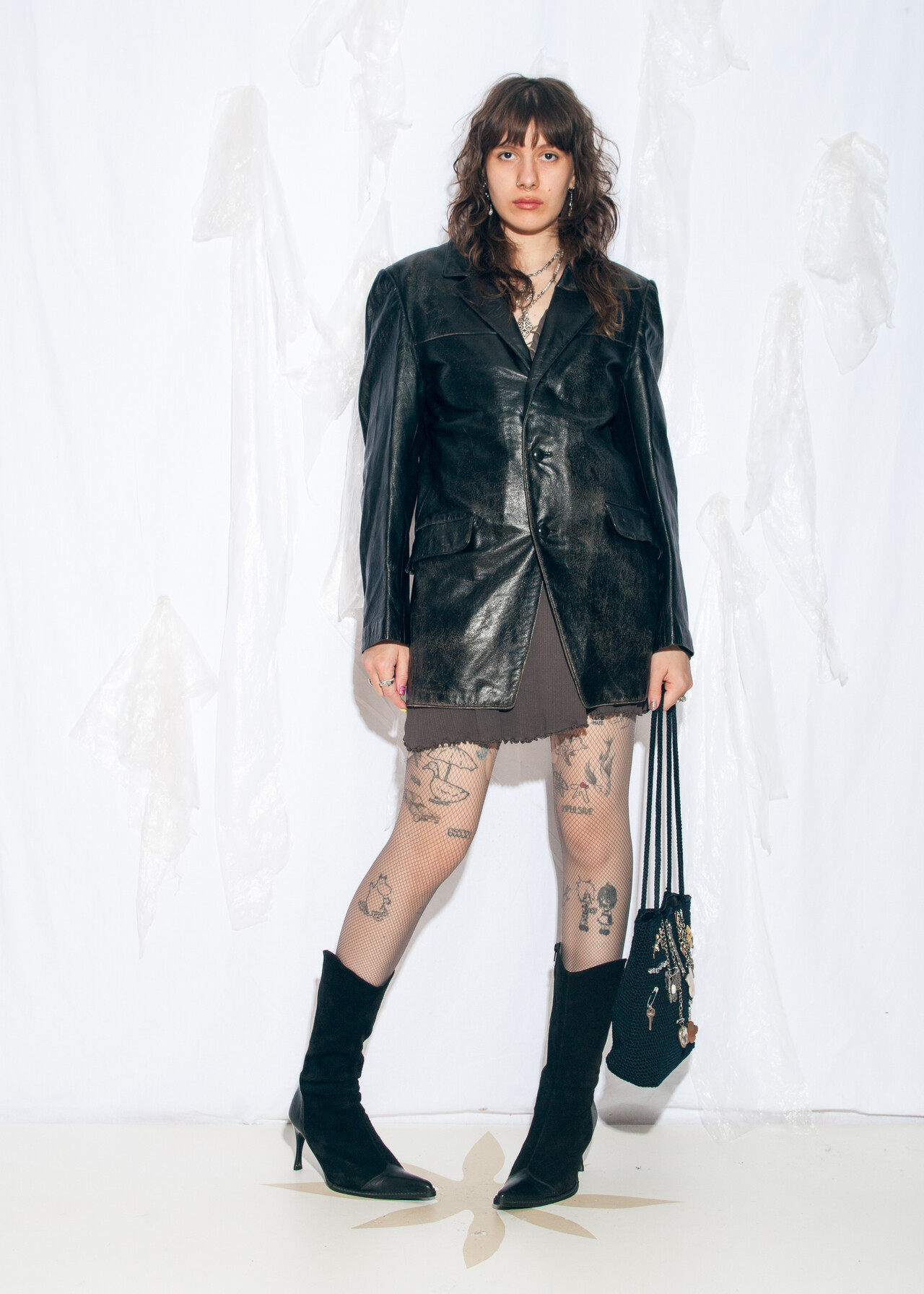 Tags: 80s vintage fashion, boyfriend jacket, distressed clothes, grunge outfit, oversized blazer, real leather coat, y2k style clothing