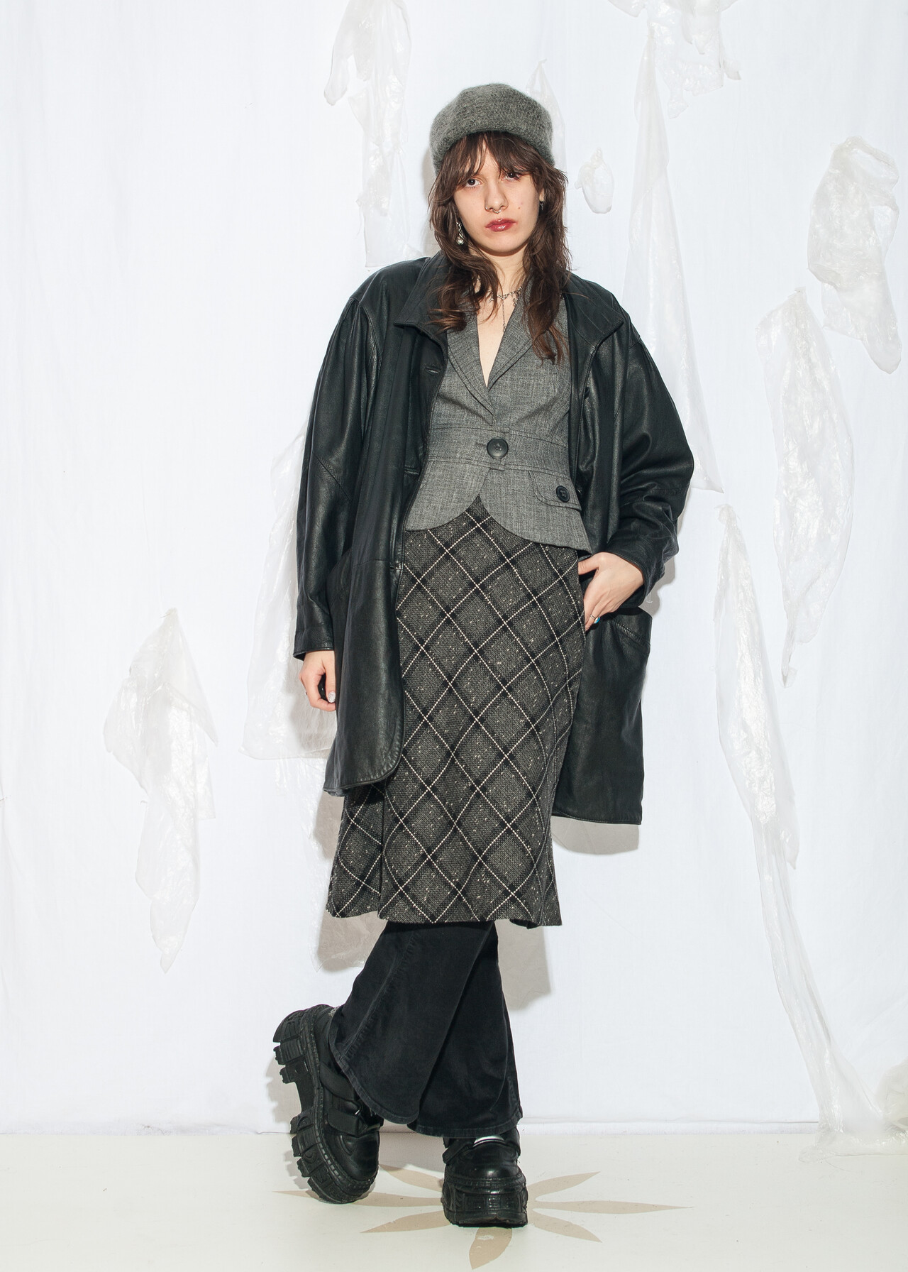 Tags: 80s vintage fashion, chunky black coat, European vintage, grunge outfit, oversized jacket, real leather coat, whimsigoth, wide shoulders, y2k style clothing