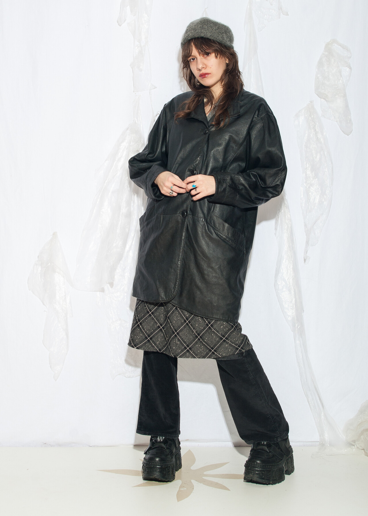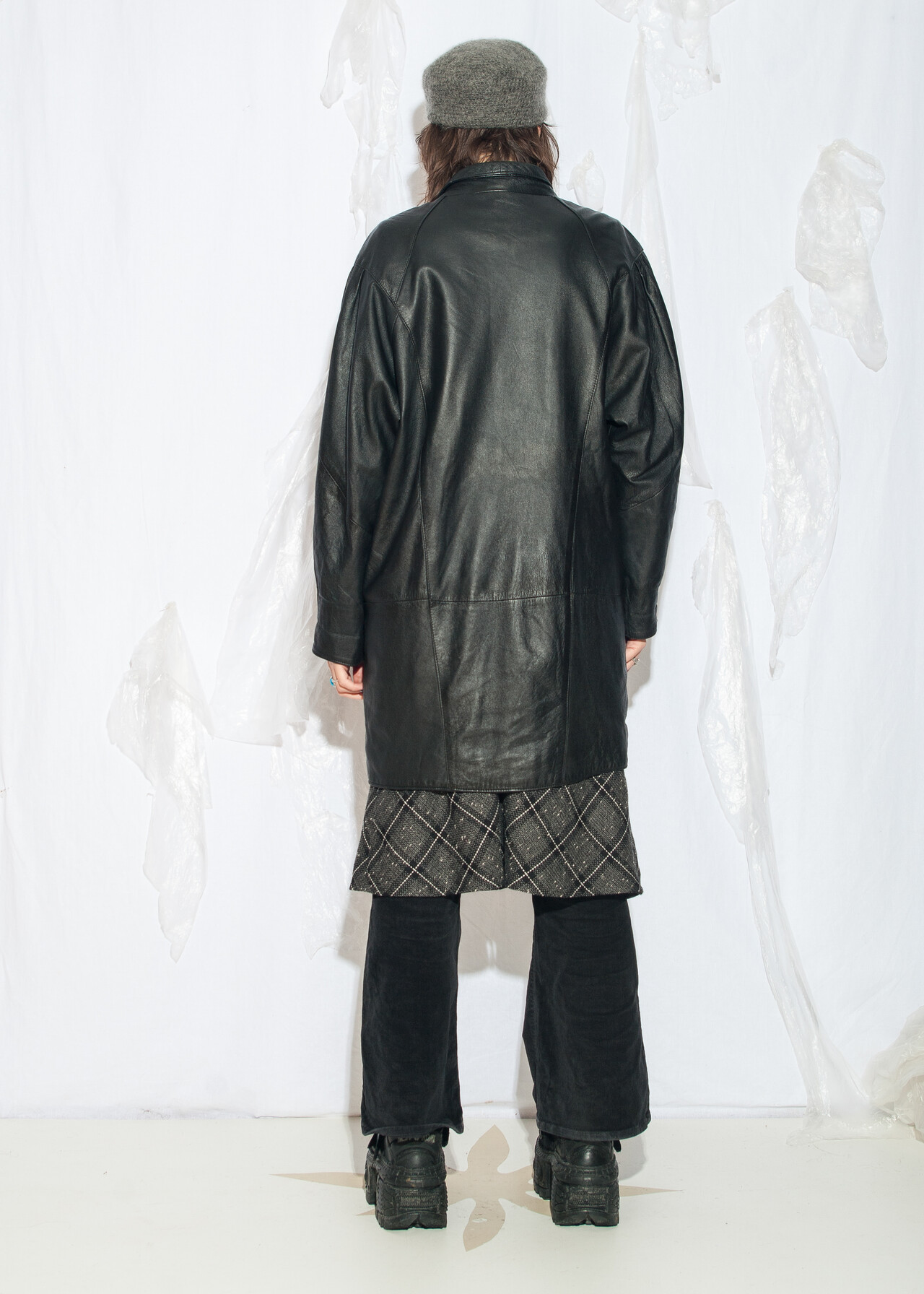 This oversized 80s vintage coat is your ticket to grunge outfit glory, with real leather so authentic it might just start playing synthwave.