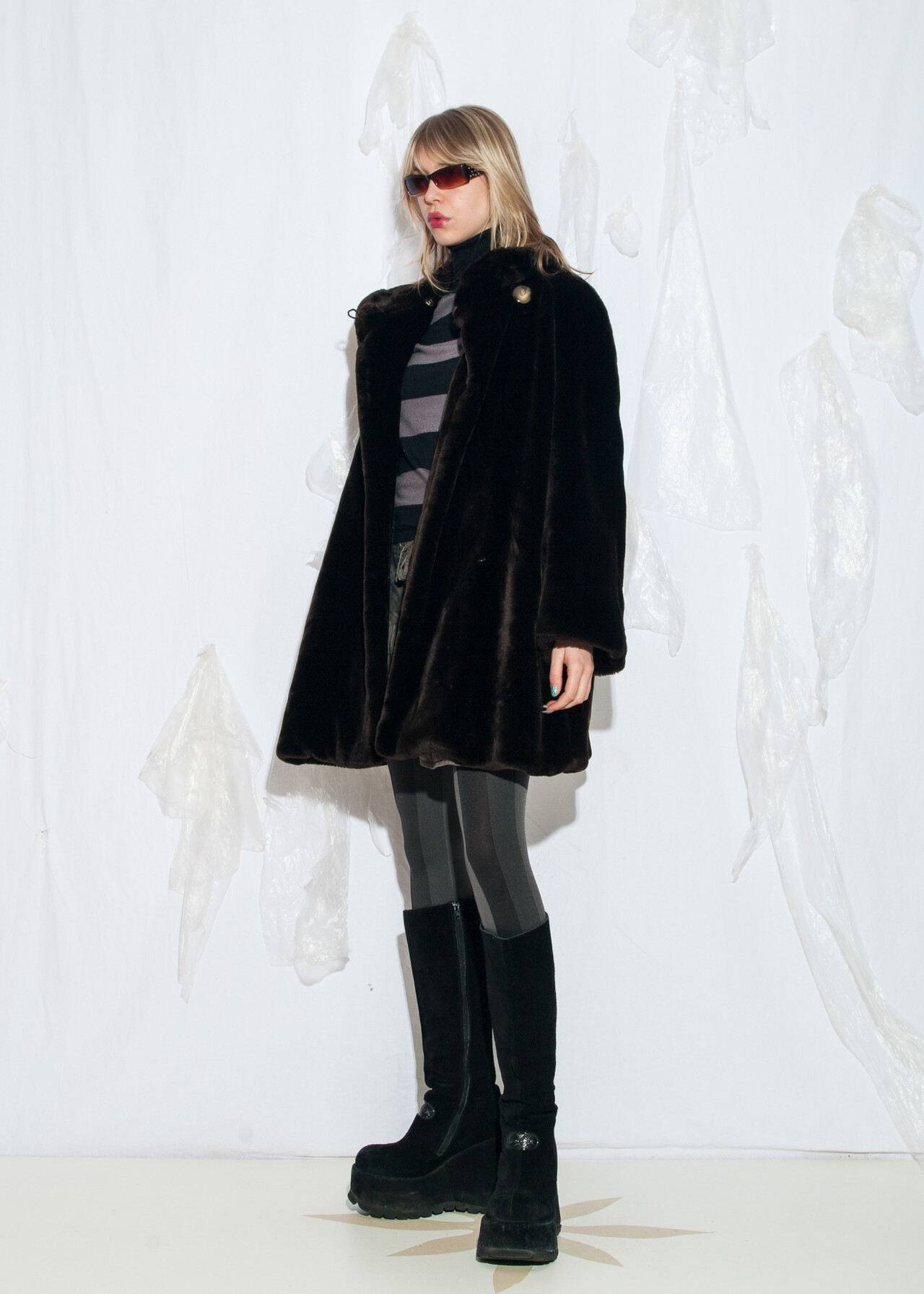Tags: 80s vintage fashion, European vintage, faux fur teddy coat, glam aesthetic, grunge outfit, oversized jacket, Penny Lane, plush coat, whimsigoth, y2k style clothing