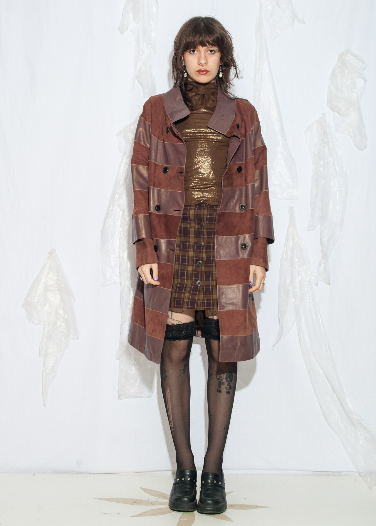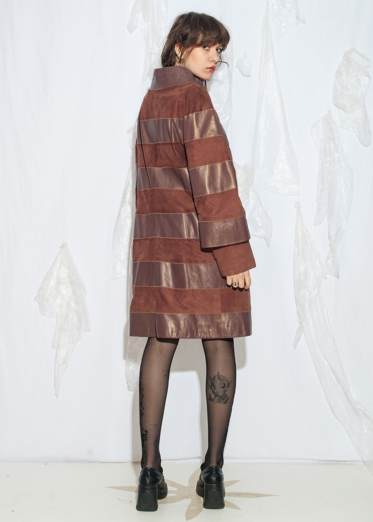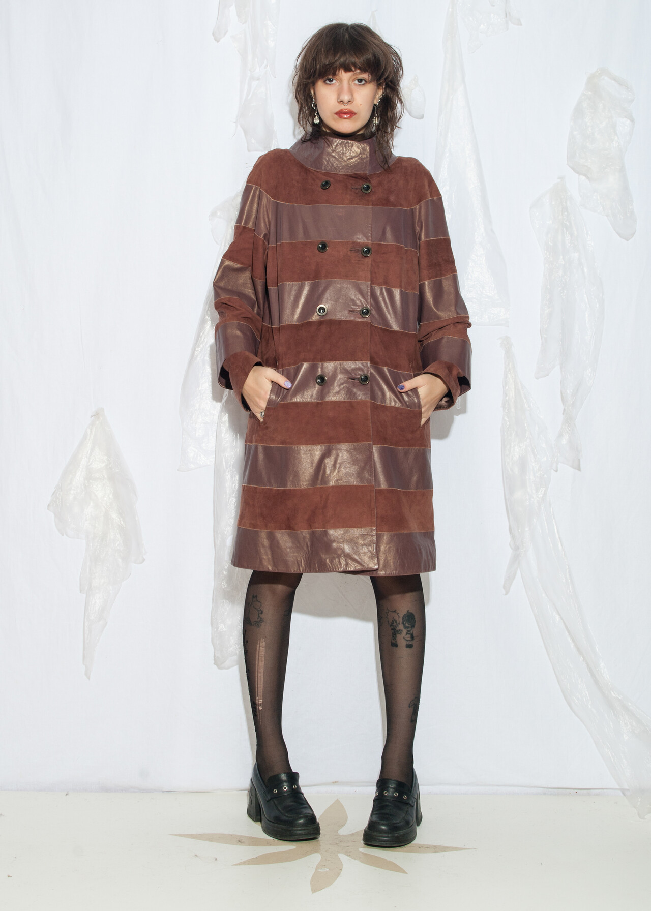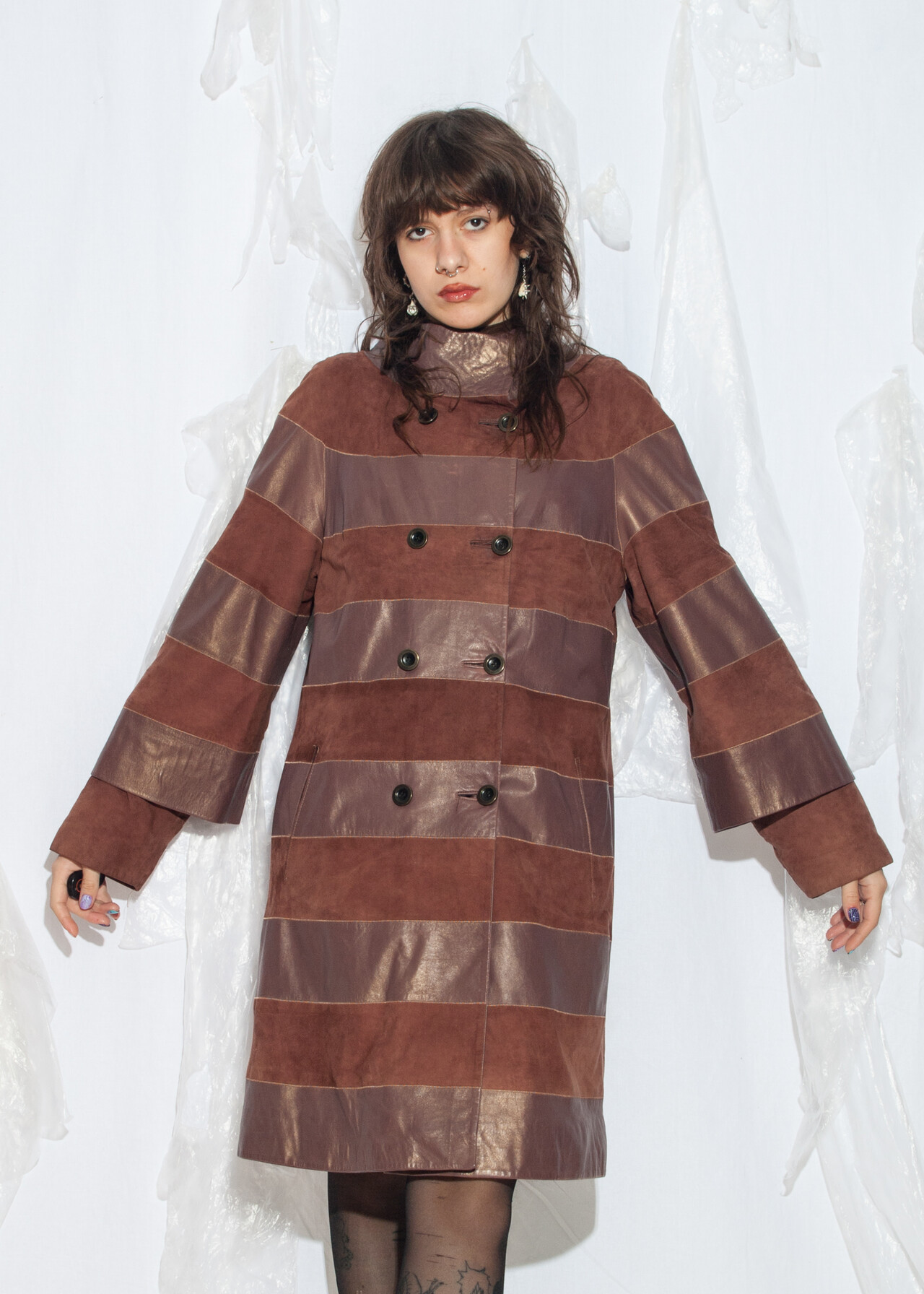 Tags: 80s vintage fashion, double breasted, leather coat, luxory vintage, medieval aesthetic, soft leather, striped parka, whimsical, y2k style clothing