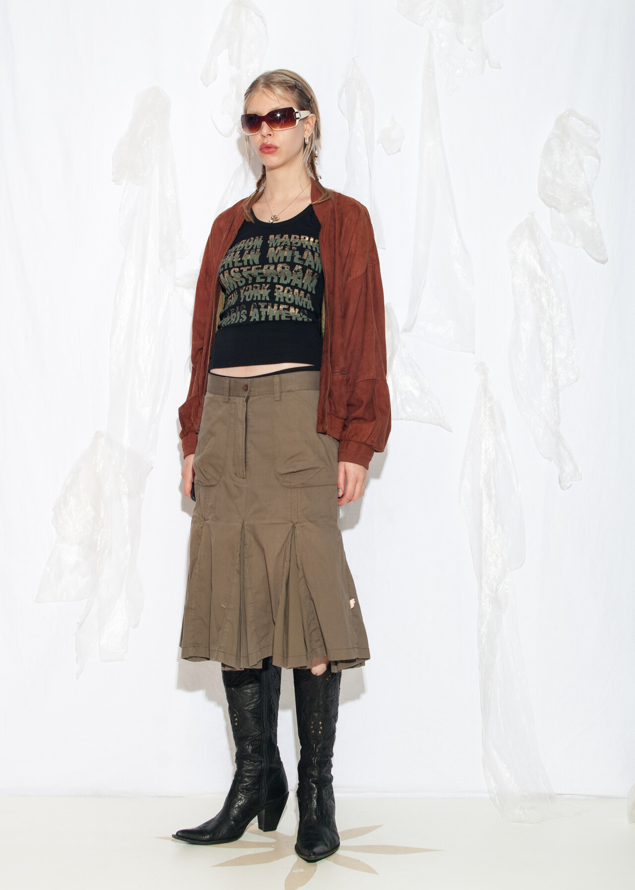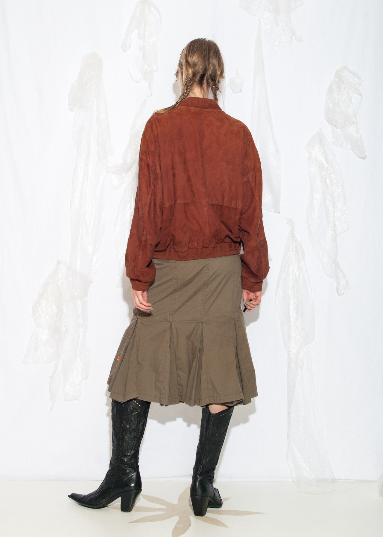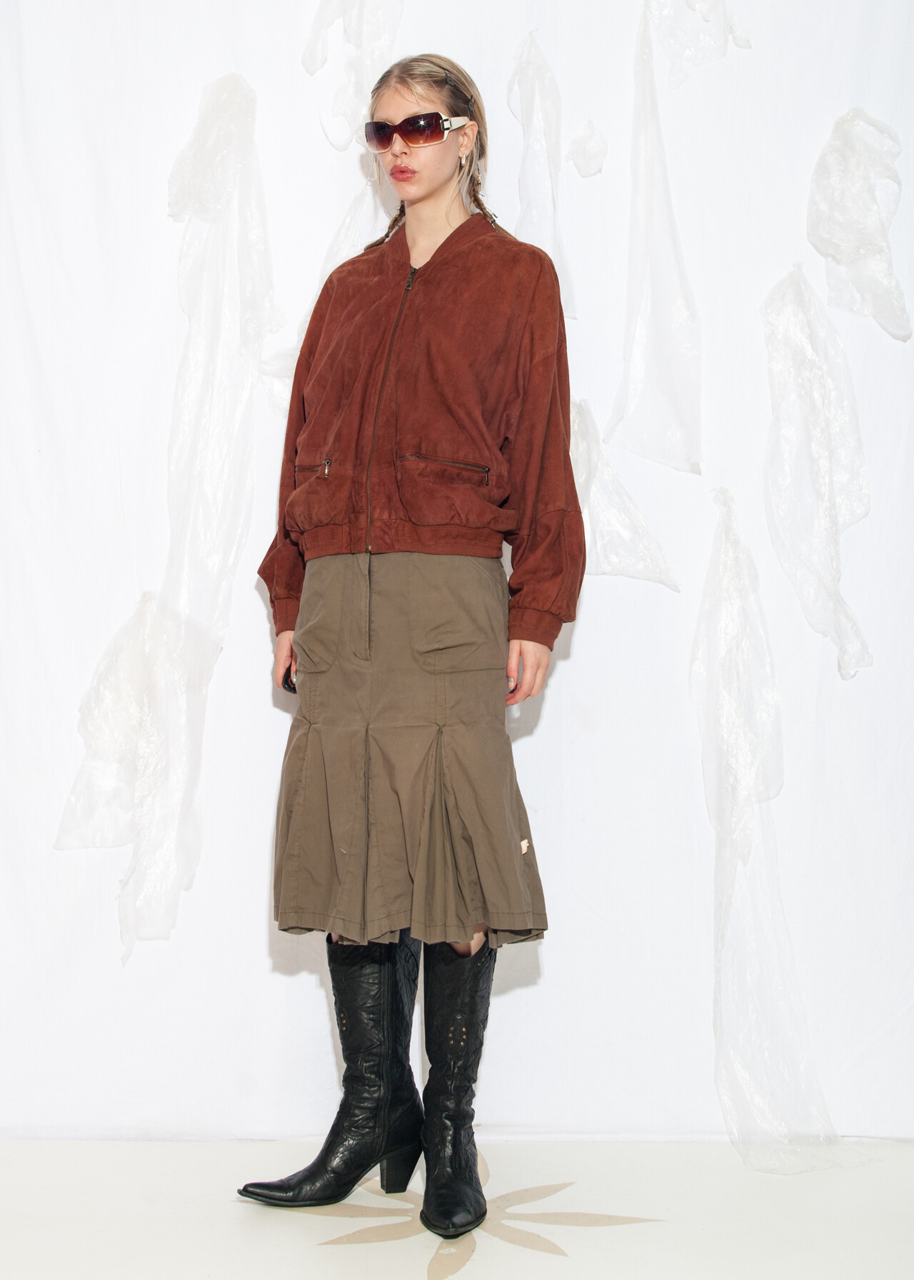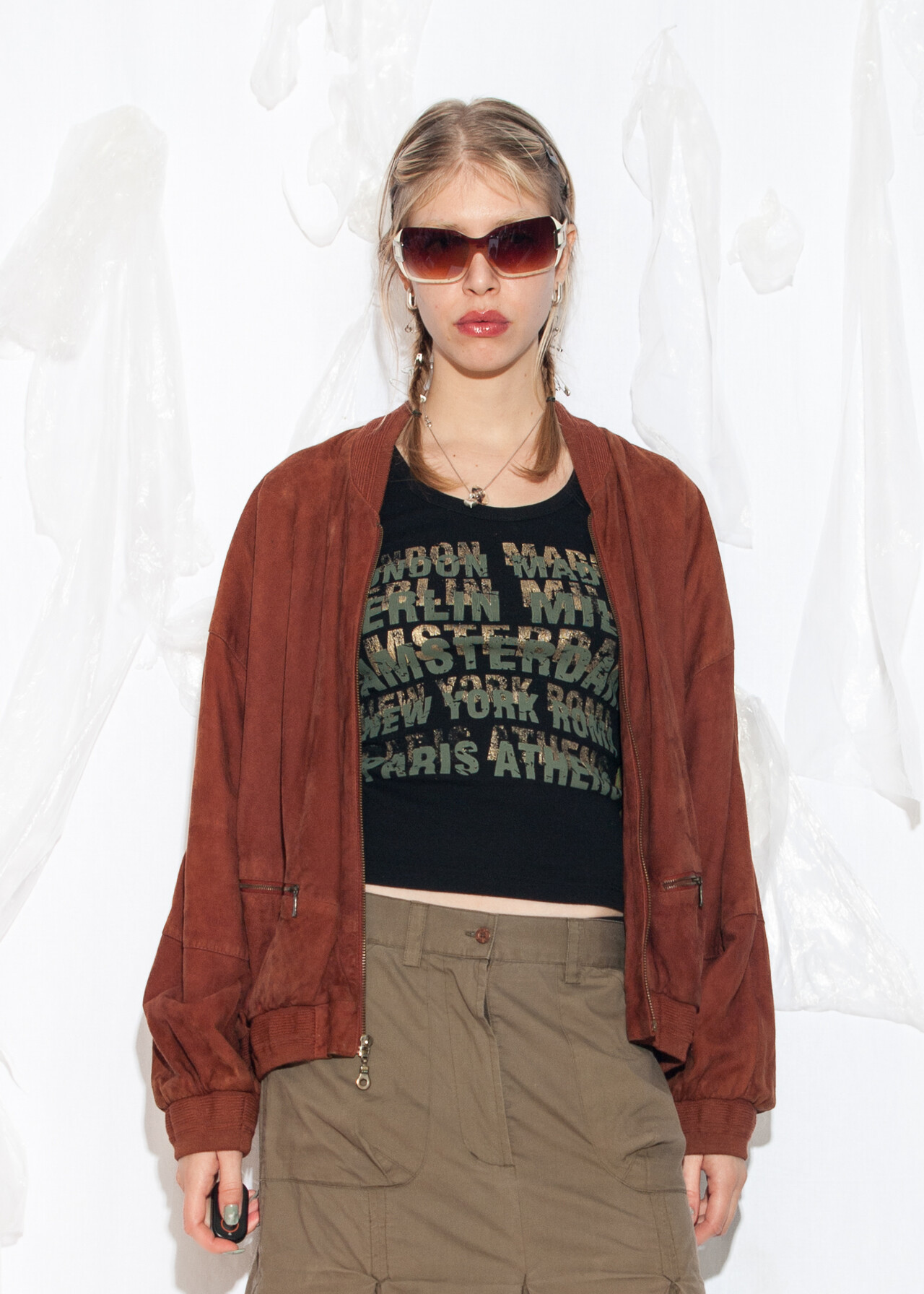 80s vintage suede bomber jacket – this oversized coat is the leather embrace you never knew you needed for your Y2K grunge outfit.