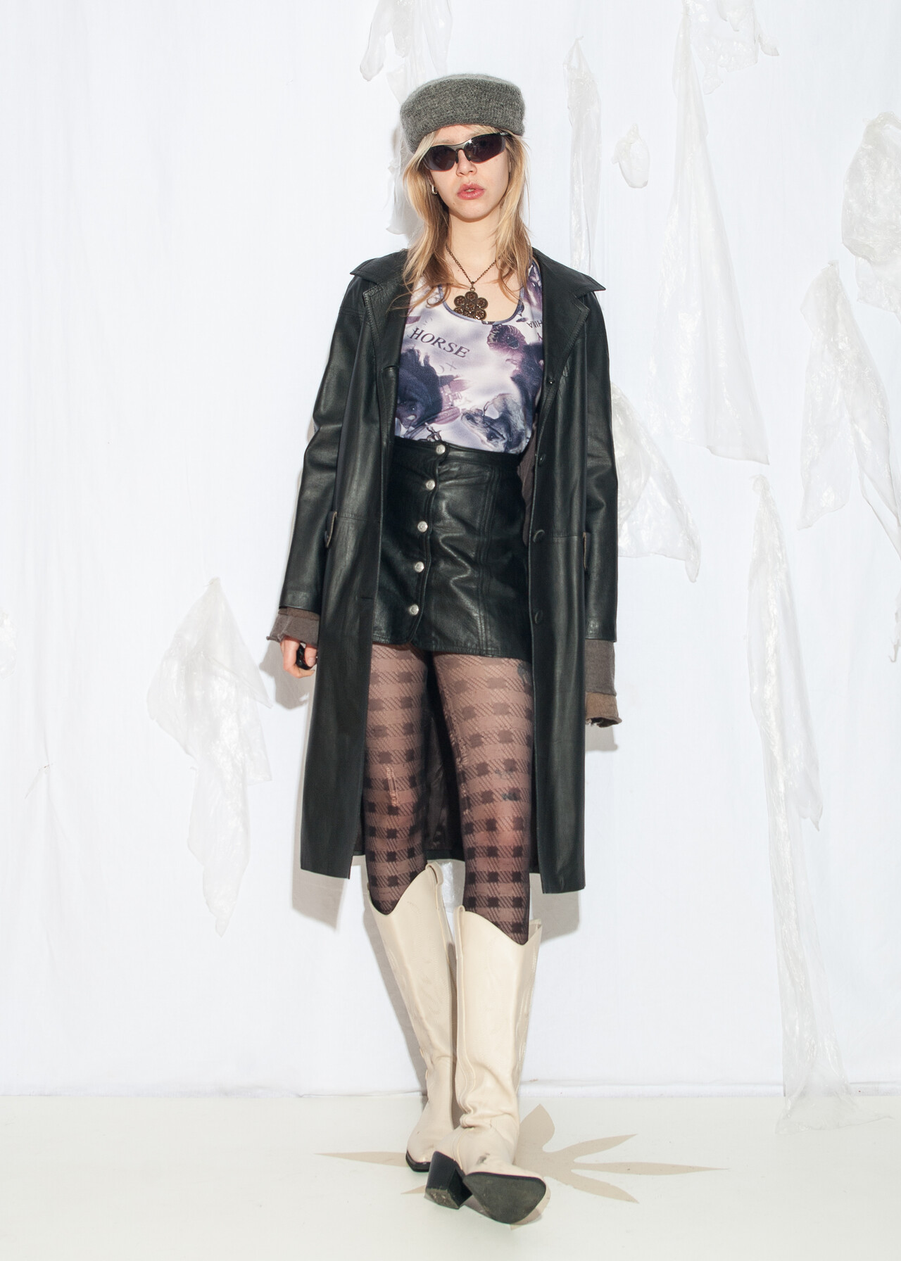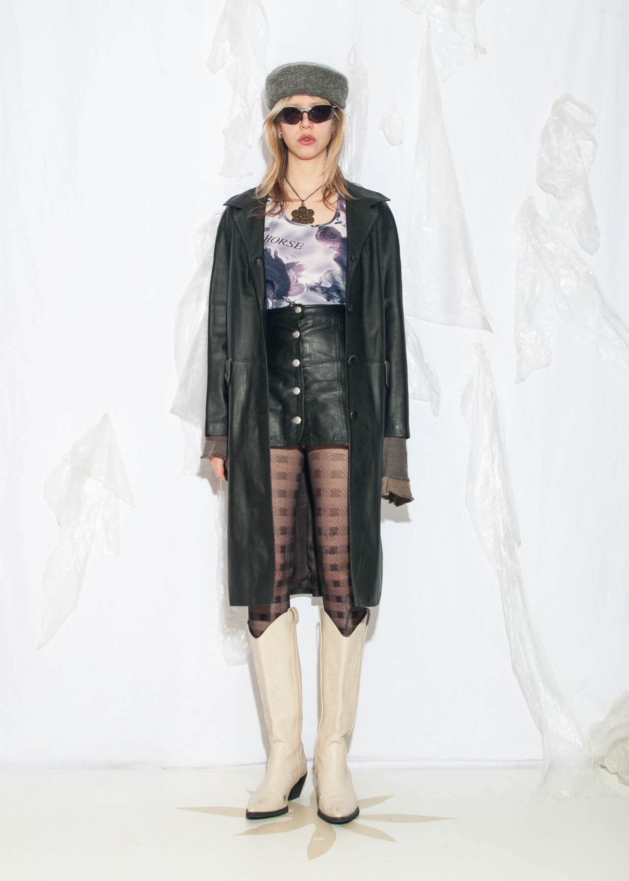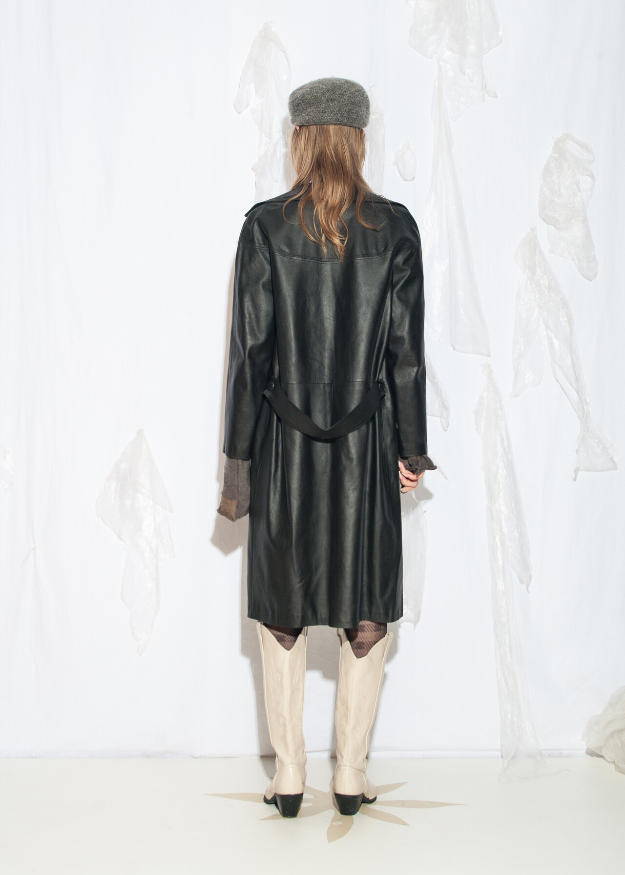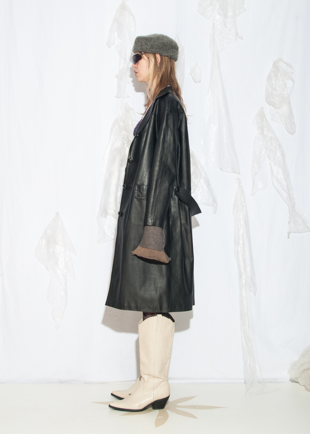 Tags: 00s streetwear look, 90s vintage fashion, grunge outfit, long jacket, minimalist, office siren, real leather coat, soft leather, whimsical aesthetic, y2k style clothing
