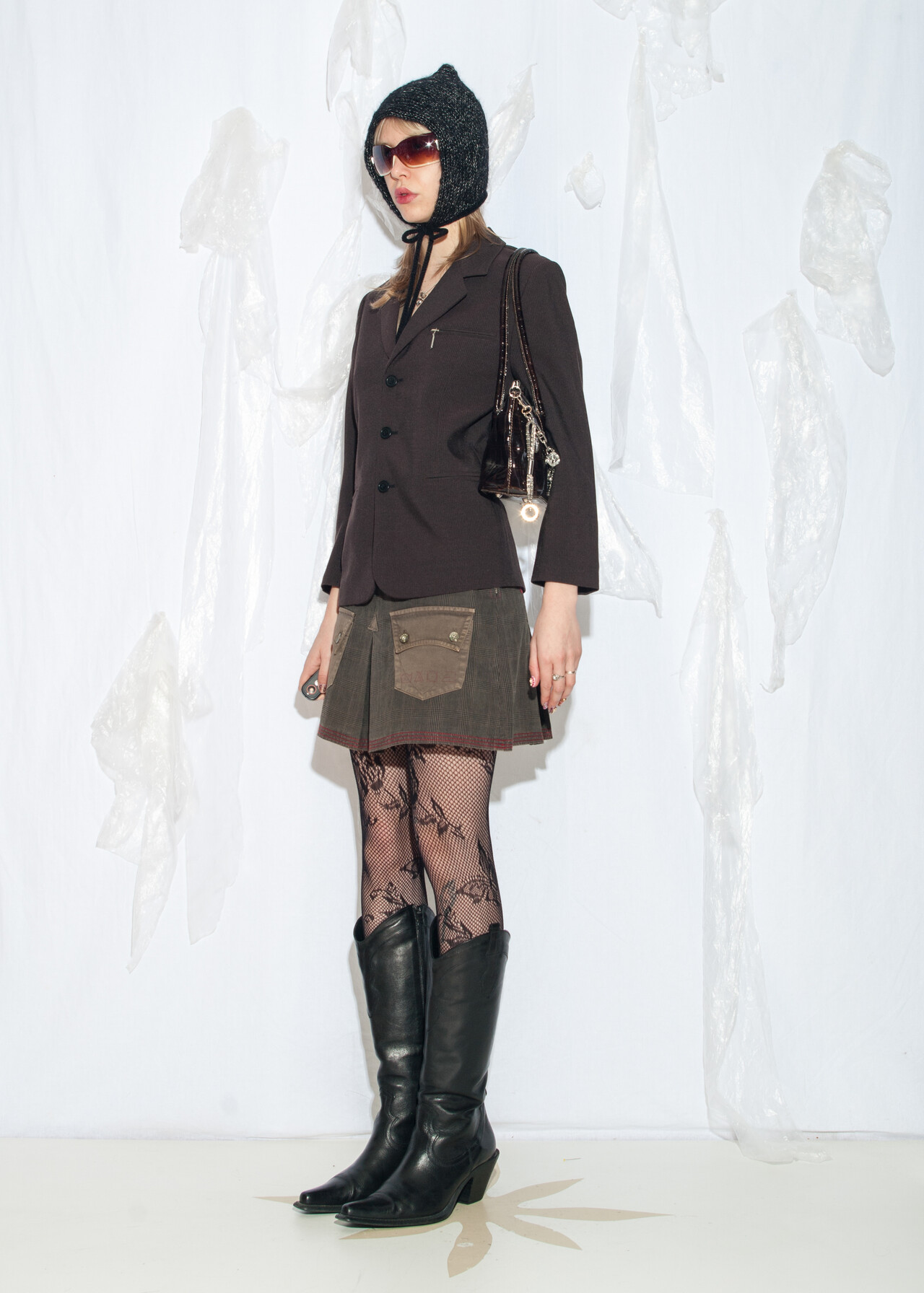 Tags: 90s vintage fashion, brown jacket, fitted coat, minimalist look, office siren, officecore aesthetic, slim fit blazer, y2k style clothing