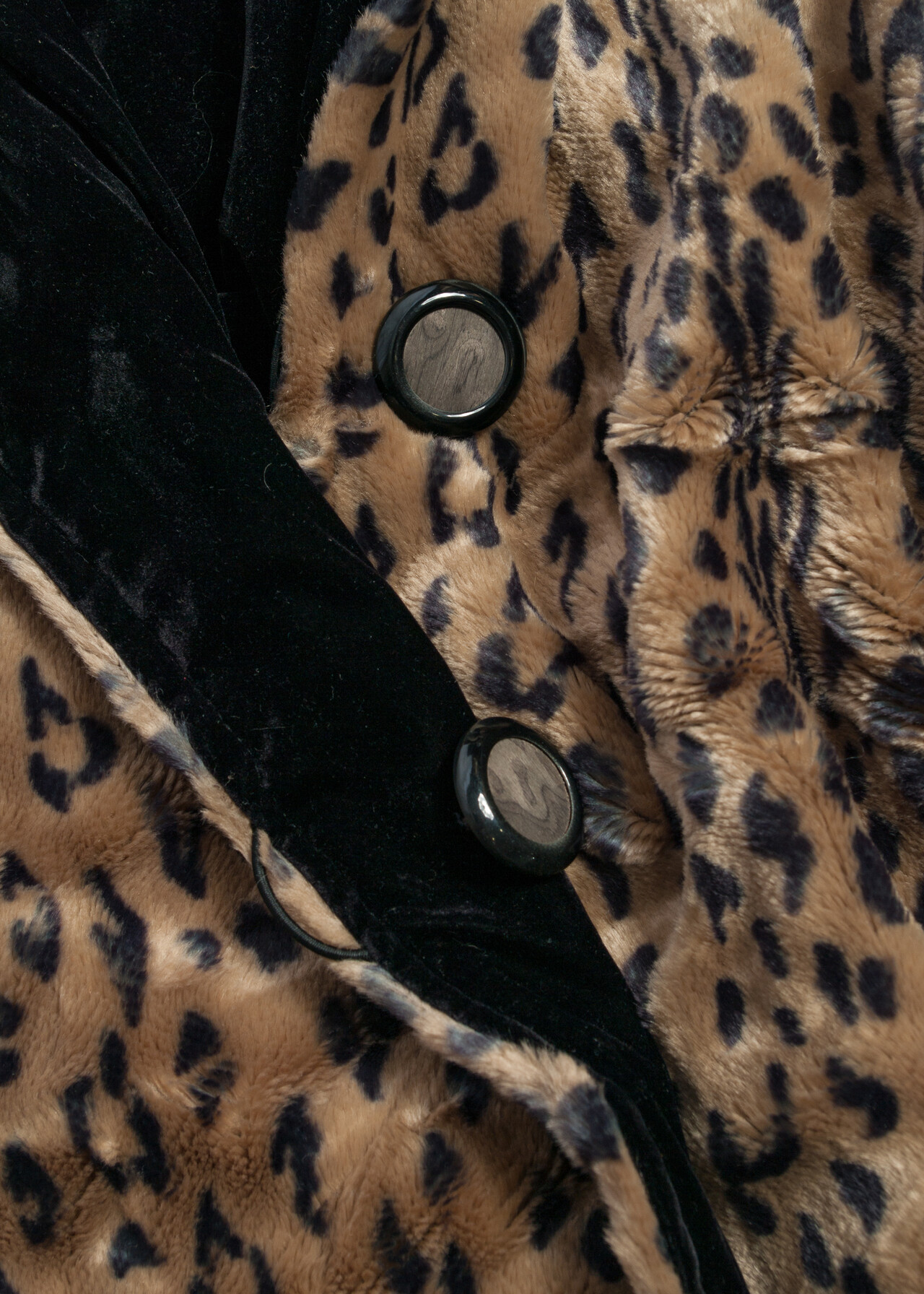 Vintage 90s Reversible Faux Fur Leopard Coat in Beige and Black