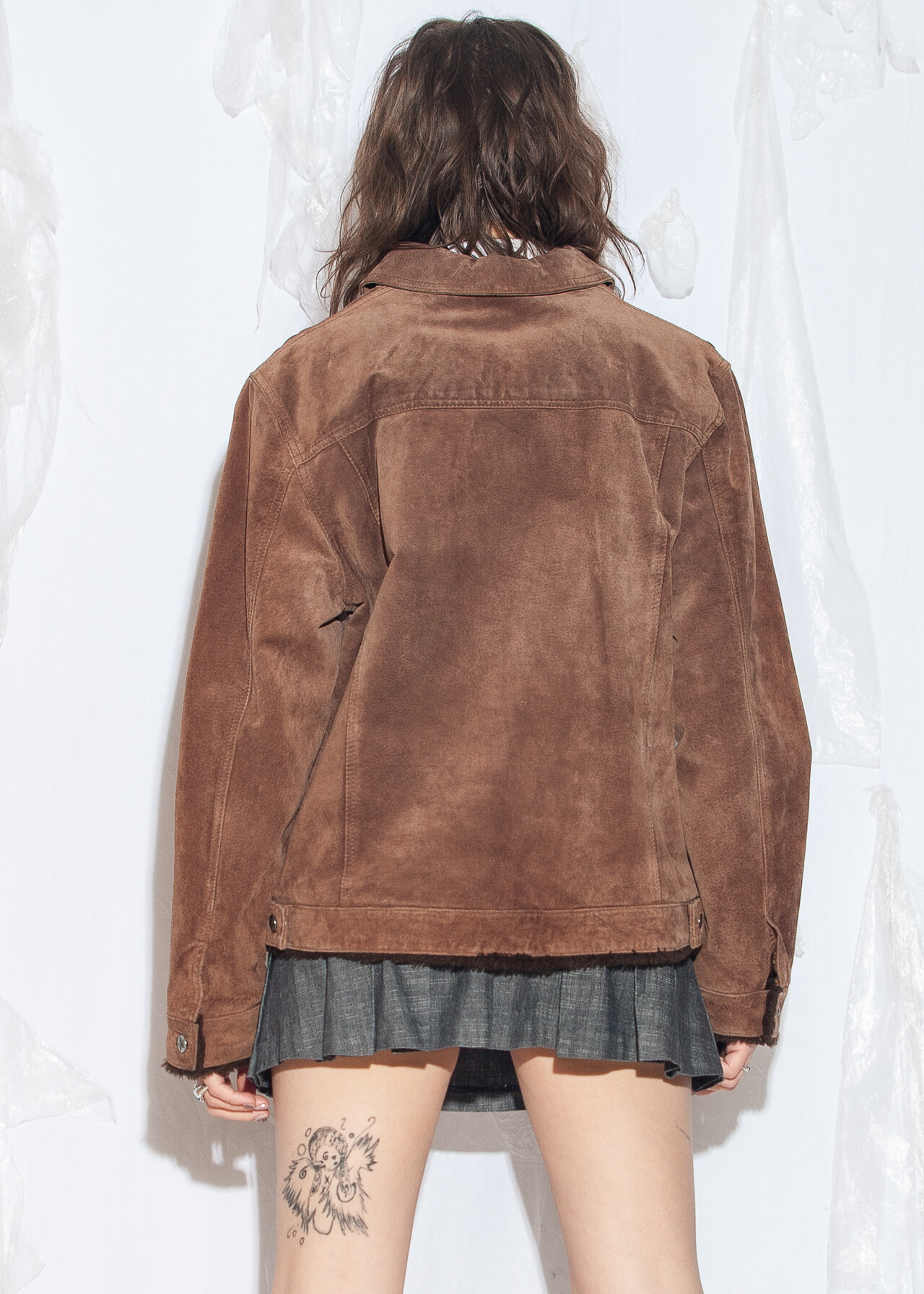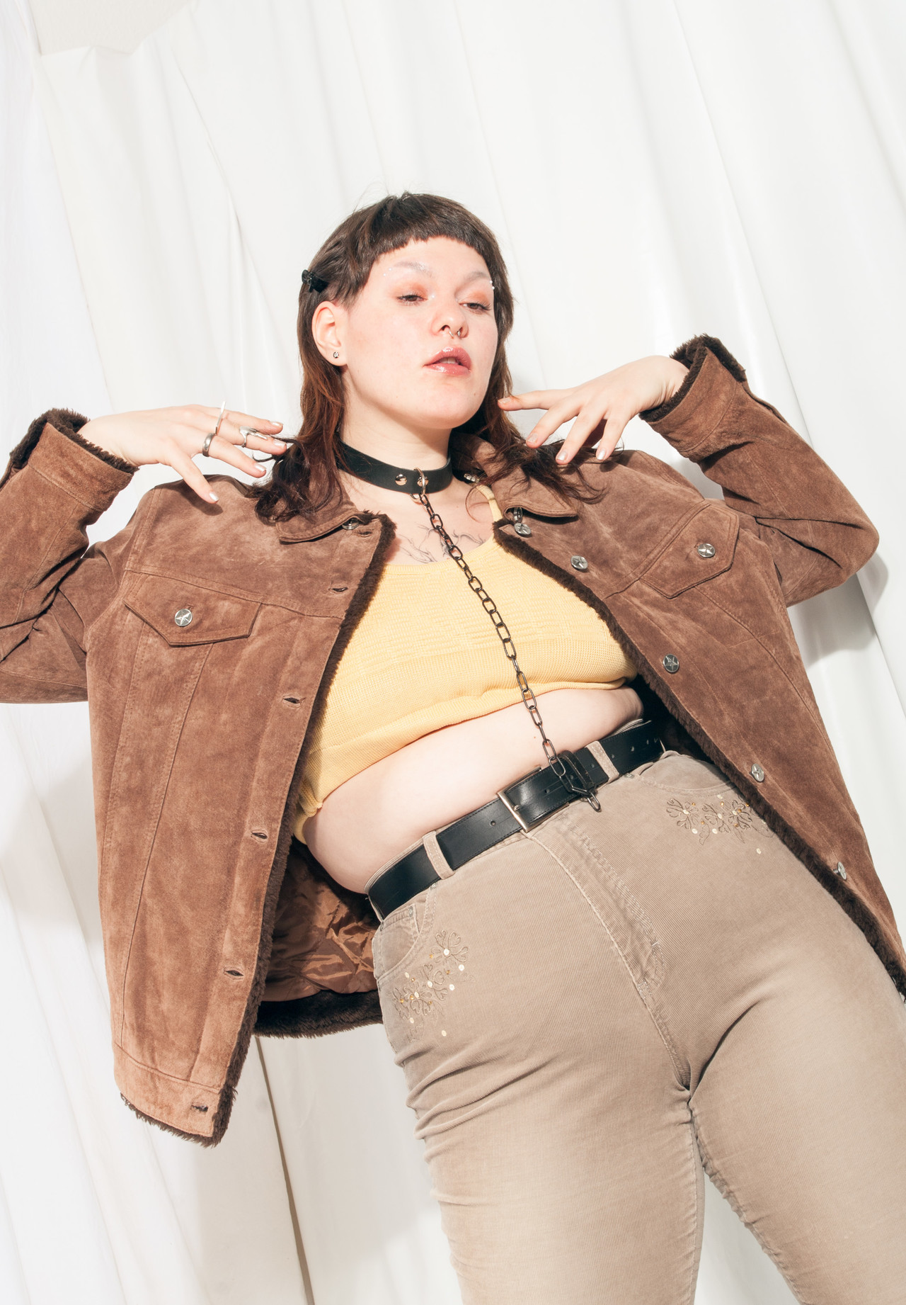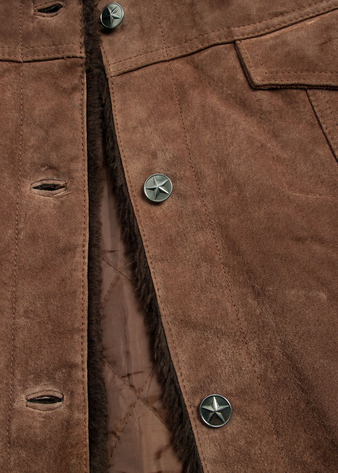 Say hi to this rad vintage leather jacket from the shiny 90s. We cleaned it for you both inside and outside, so it comes in mint condition. Made from genuine suede, this babe features the coolest cut, two pockets and button closure. It’s fully lined with faux fur. Get the vibe of those decades passed by — don’t hesitate, this piece of vintage clothing is a one-off chance.