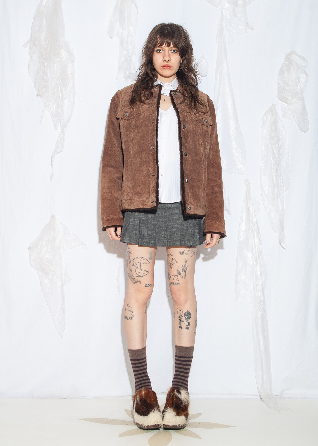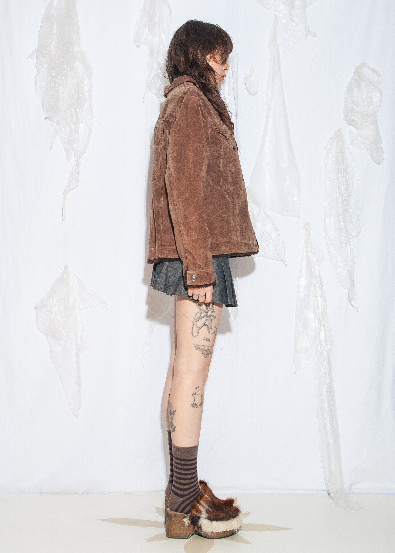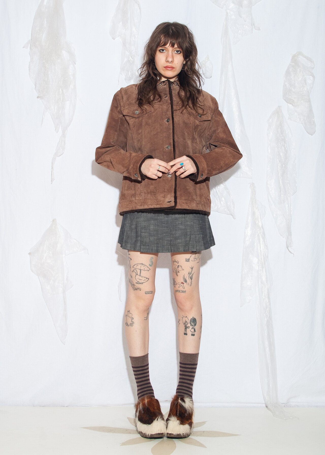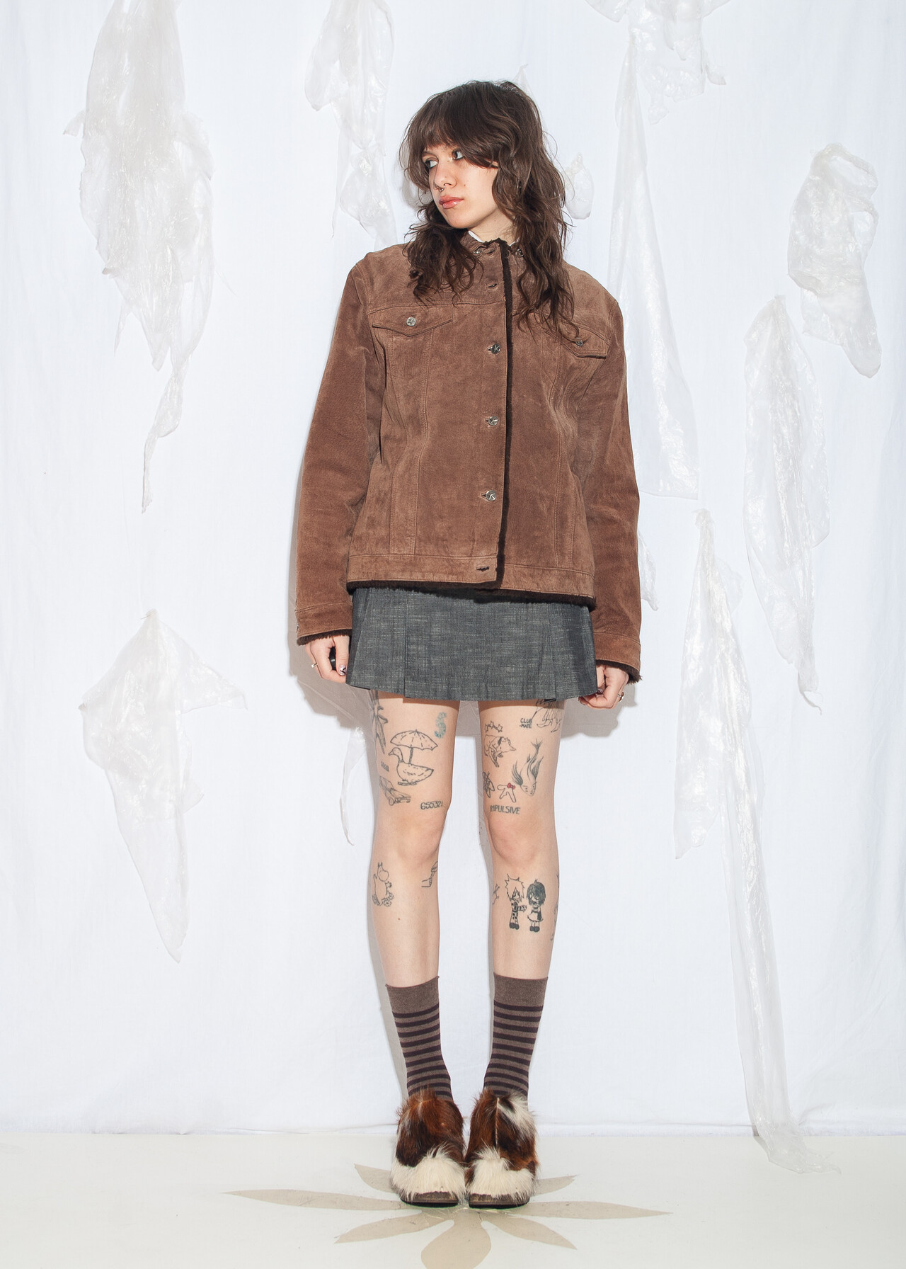 Say hi to this rad vintage leather jacket from the shiny 90s. We cleaned it for you both inside and outside, so it comes in mint condition. Made from genuine suede, this babe features the coolest cut, two pockets and button closure. It’s fully lined with faux fur. Get the vibe of those decades passed by — don’t hesitate, this piece of vintage clothing is a one-off chance.