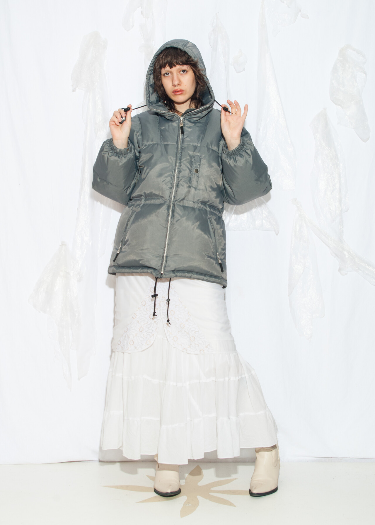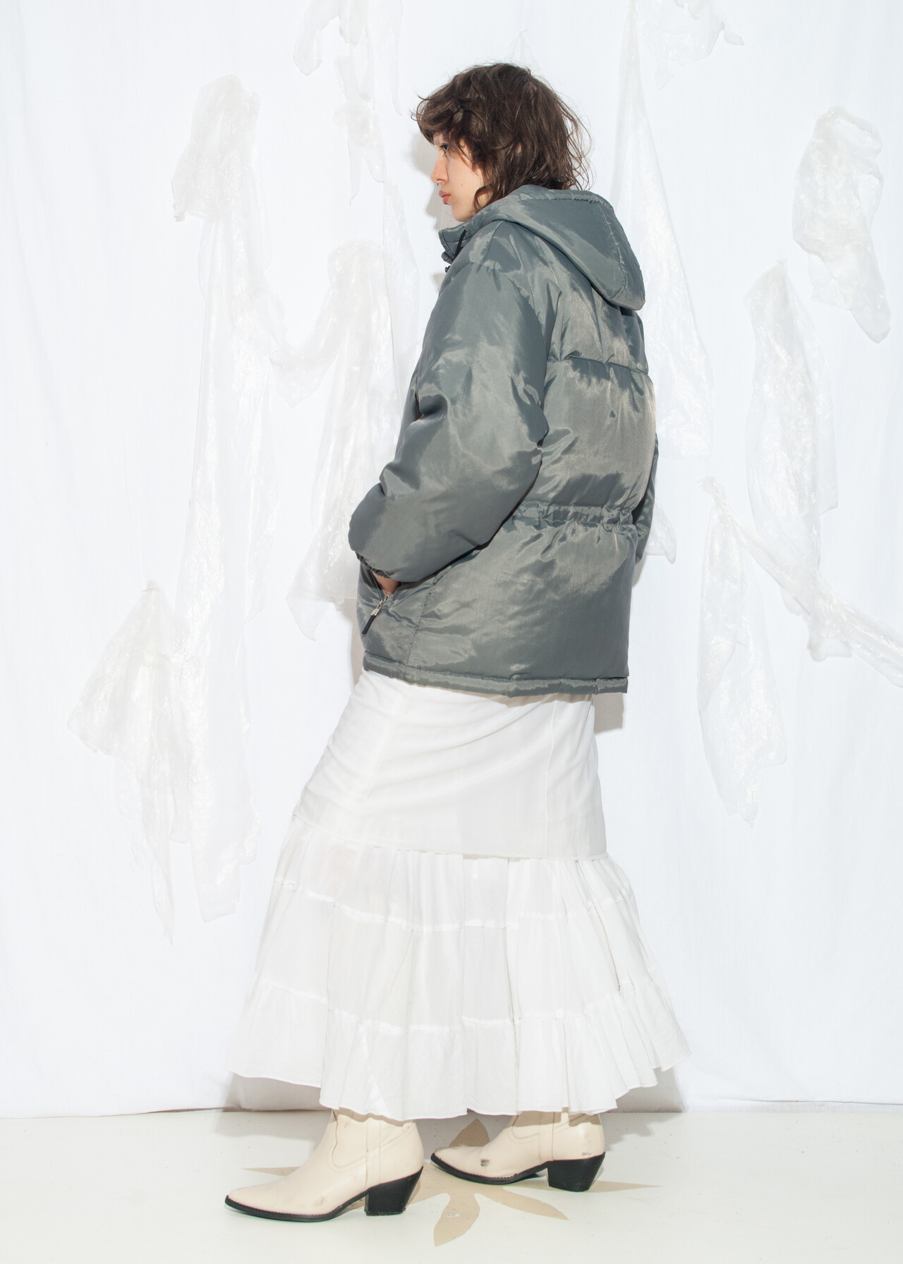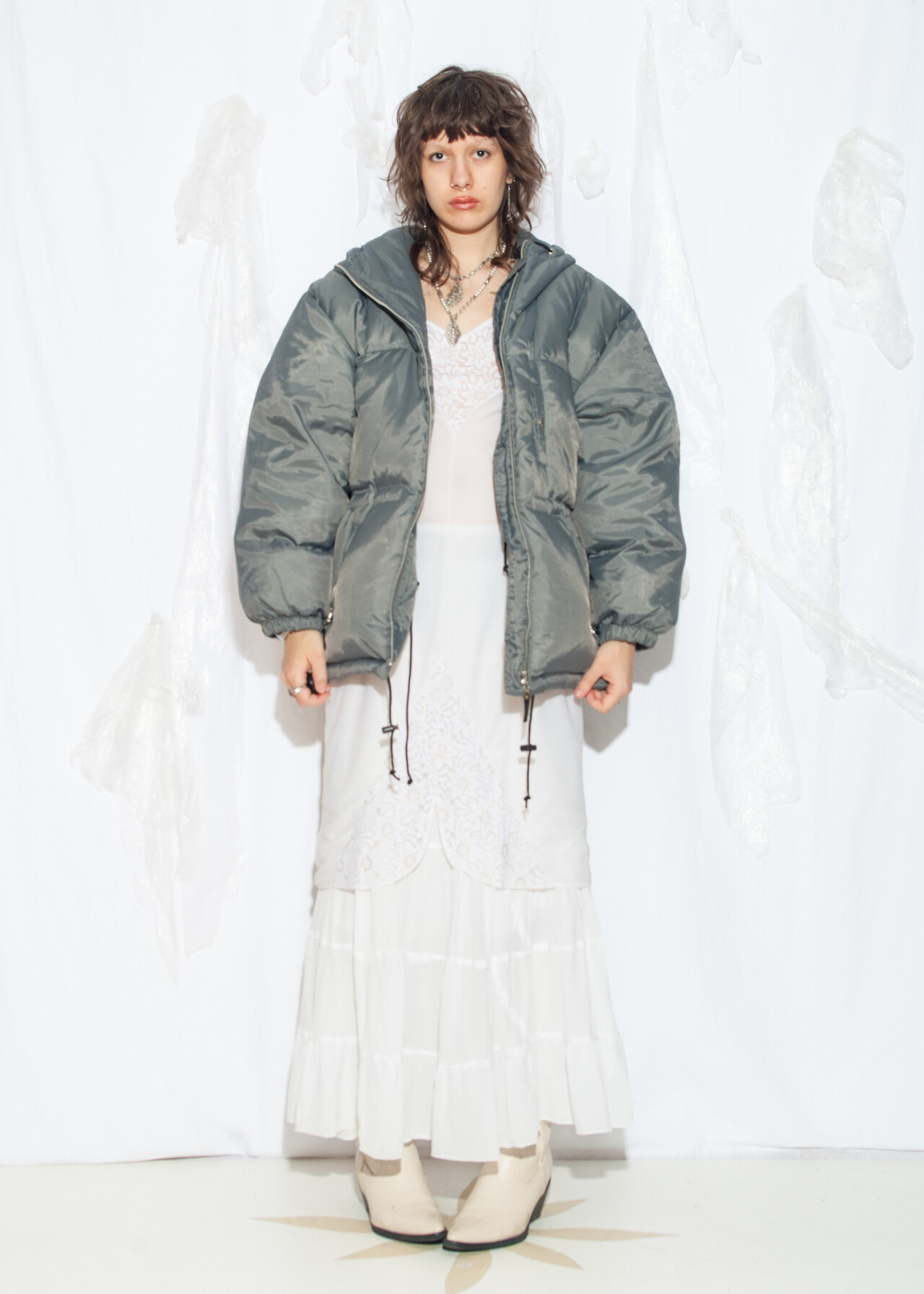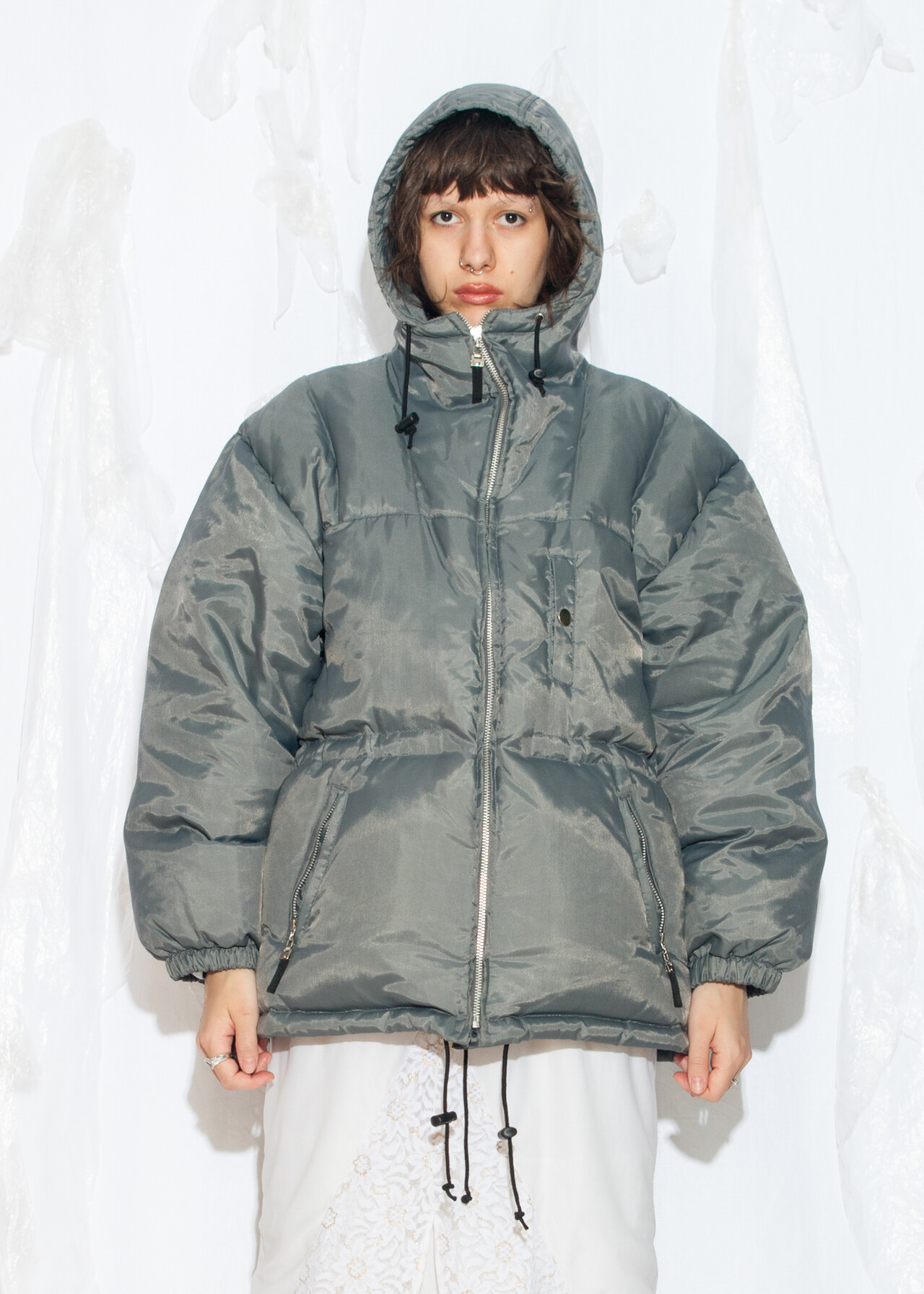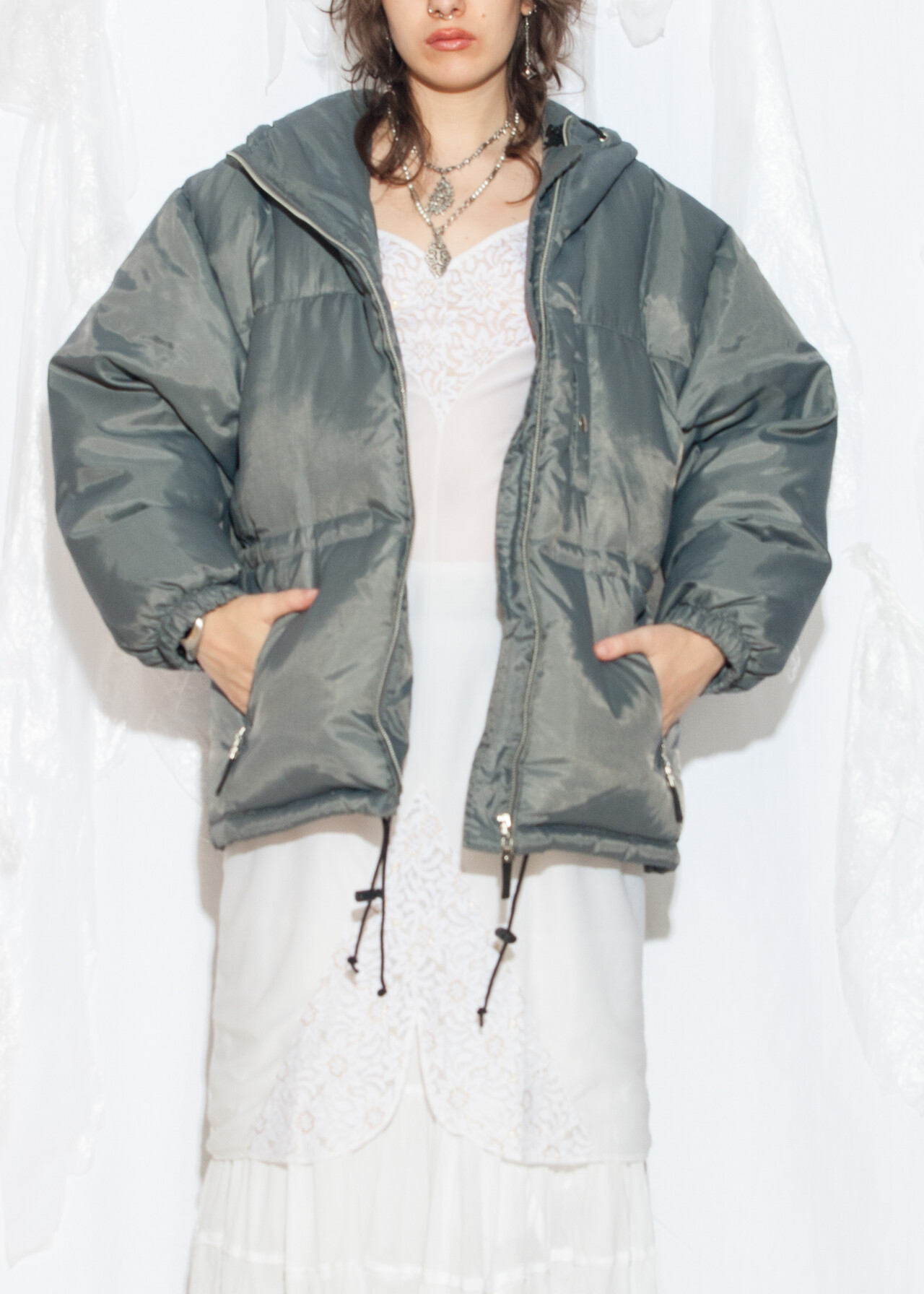 Tags: 2000s vintage fashion, oversized coat, puffer coat, puffer parka, silver jacket, winter outerwear, y2k grunge outfit, y2k style clothing