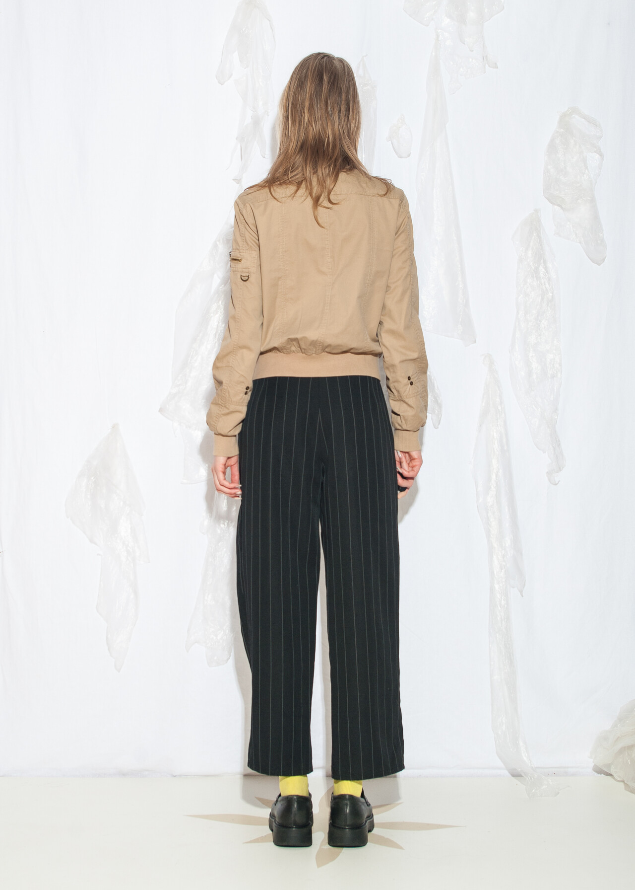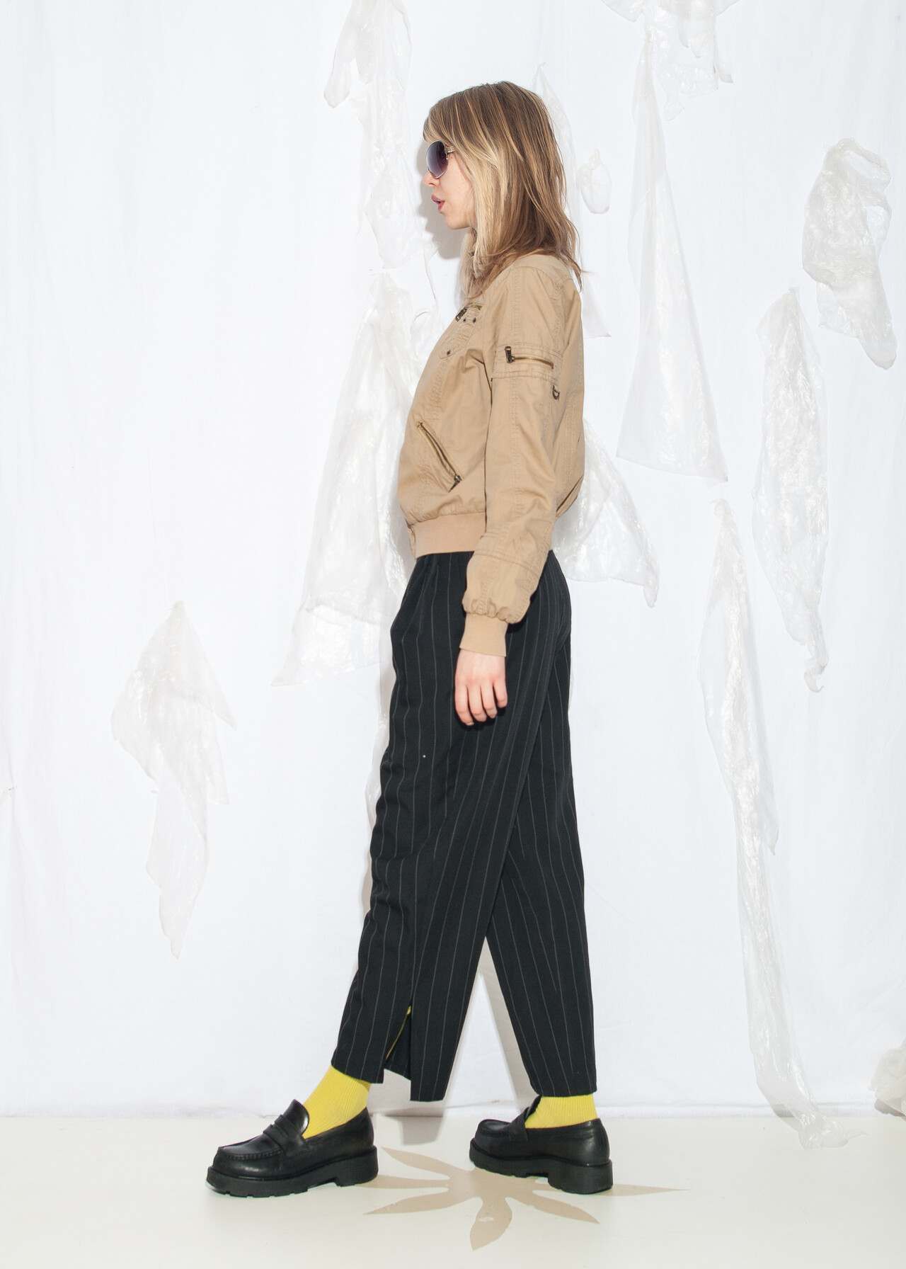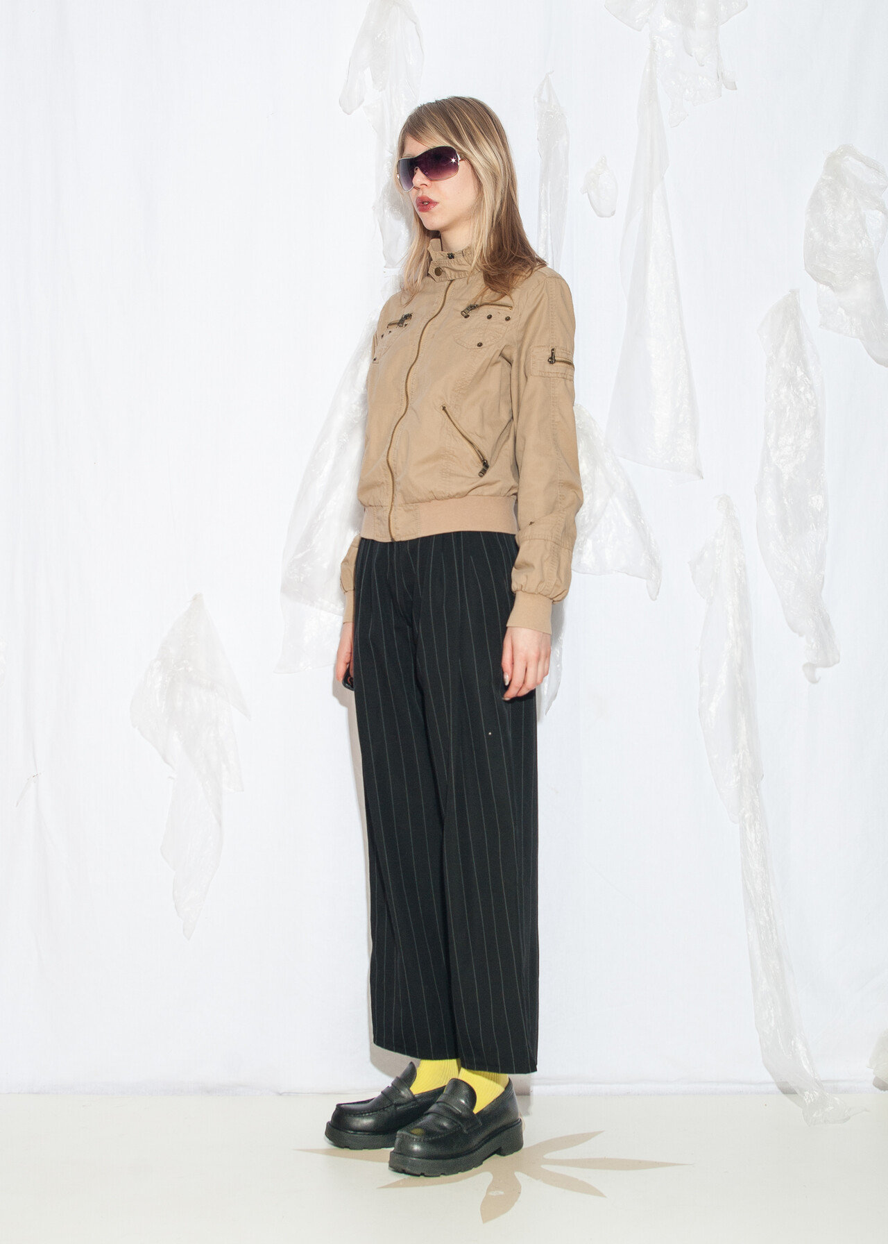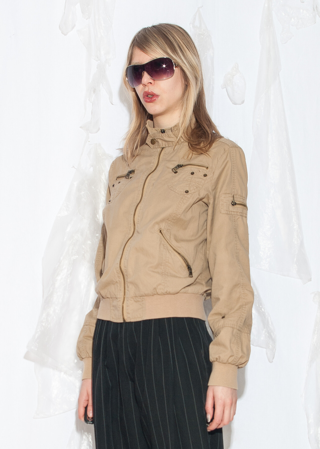 This Y2K vintage bomber jacket is your ticket to grunge outfit fame, all wrapped up in a cozy natural fabric with a standing collar that screams early 2000s cool. Who knew beige could be so rad?
