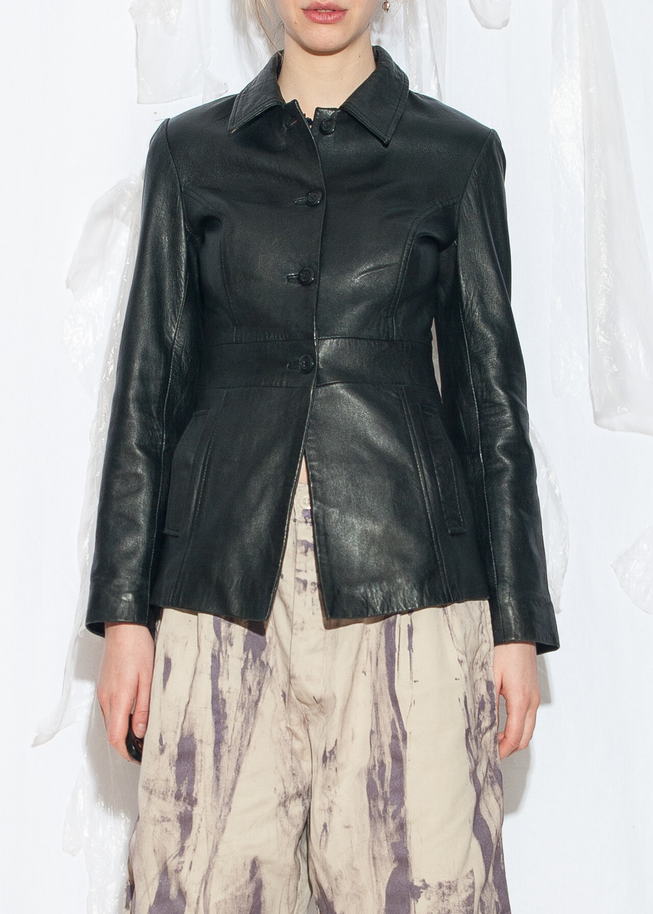 Vintage Y2K Fitted Leather Jacket in Black