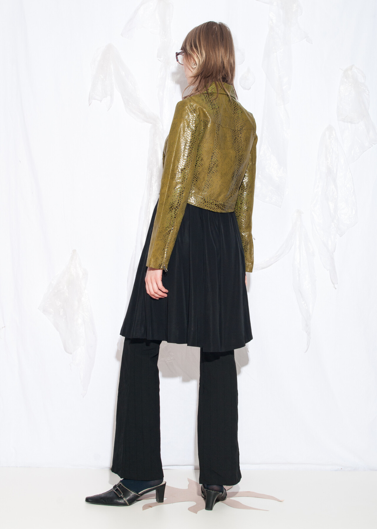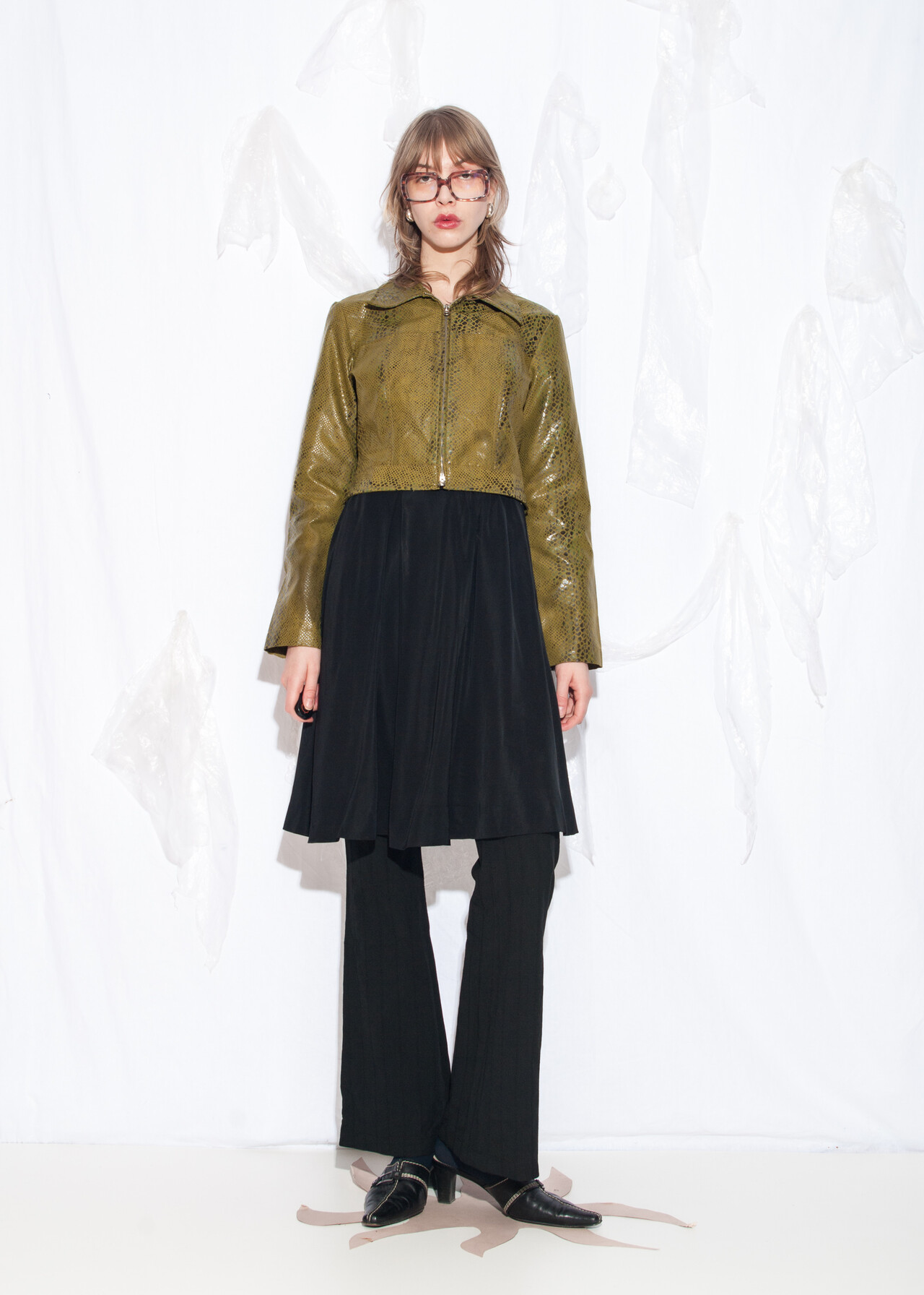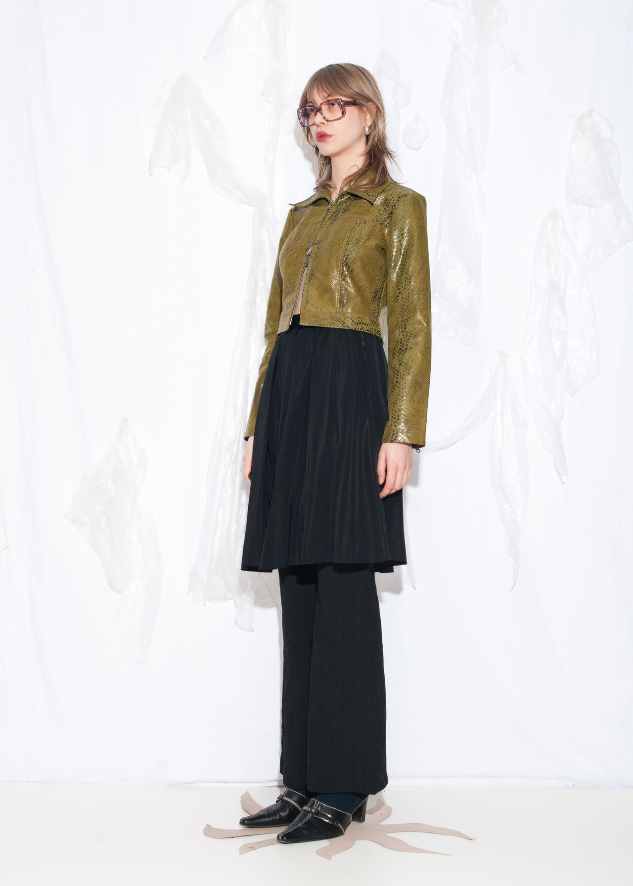 Tags: 2000s vintage style, crop jacket, cyber grunge, snake pattern