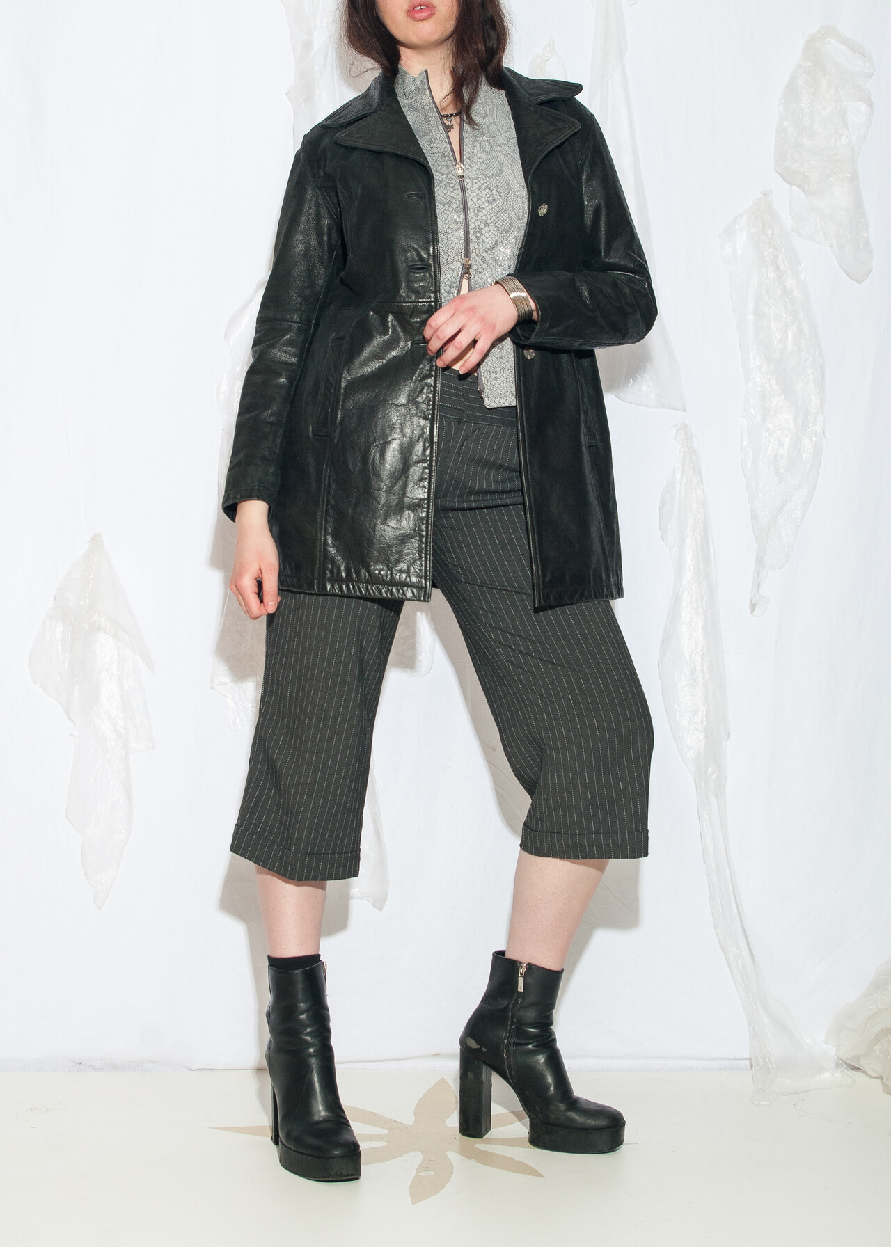 Tags: 2000s style fashion, blazer cut jacket, chunky jacket, European vintage, grunge outfit, real leather coat, upcycled, whimsigoth look, y2k vintage clothing