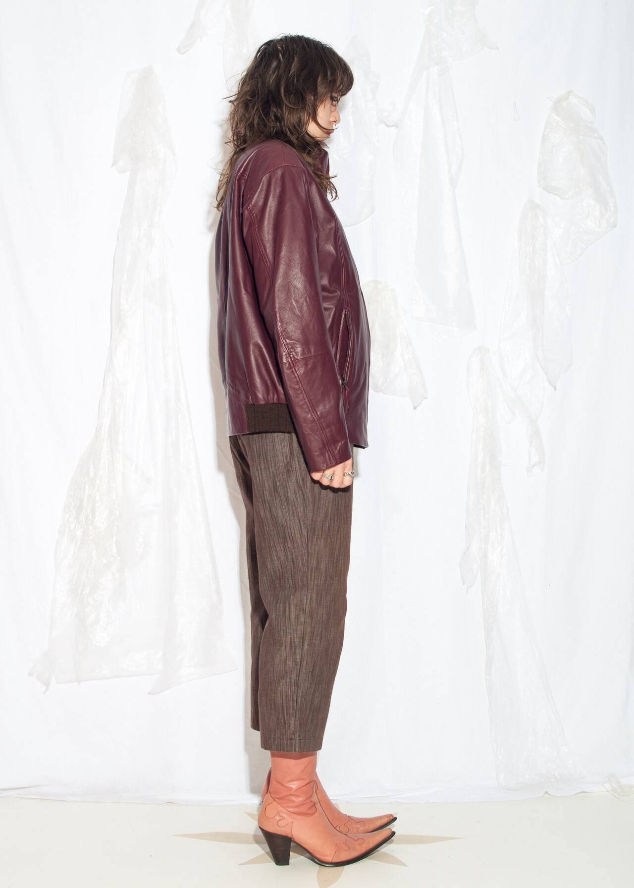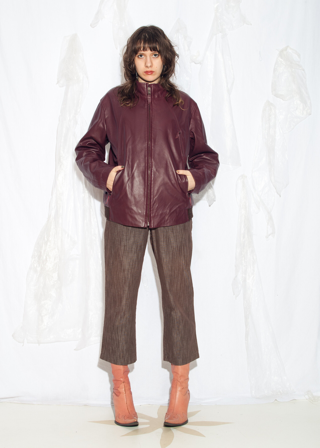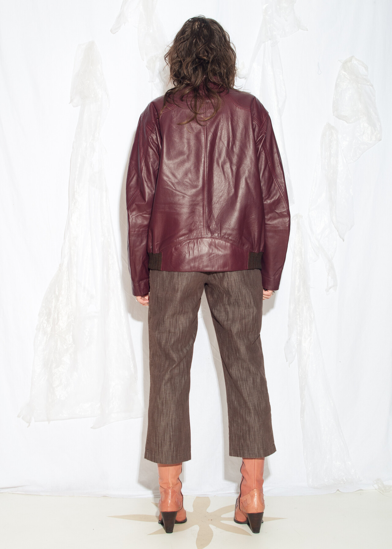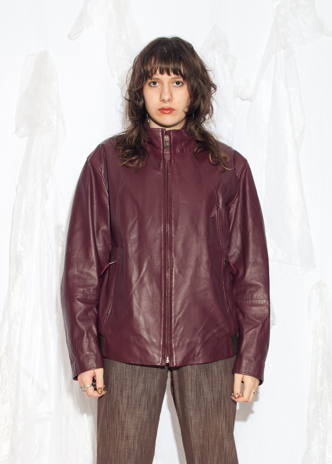 Be the first to review “Vintage Y2K Leather Bomber Jacket in Maroon” Cancel reply
