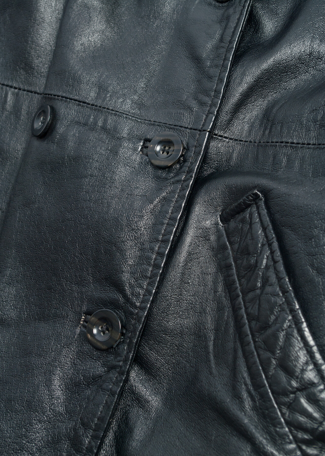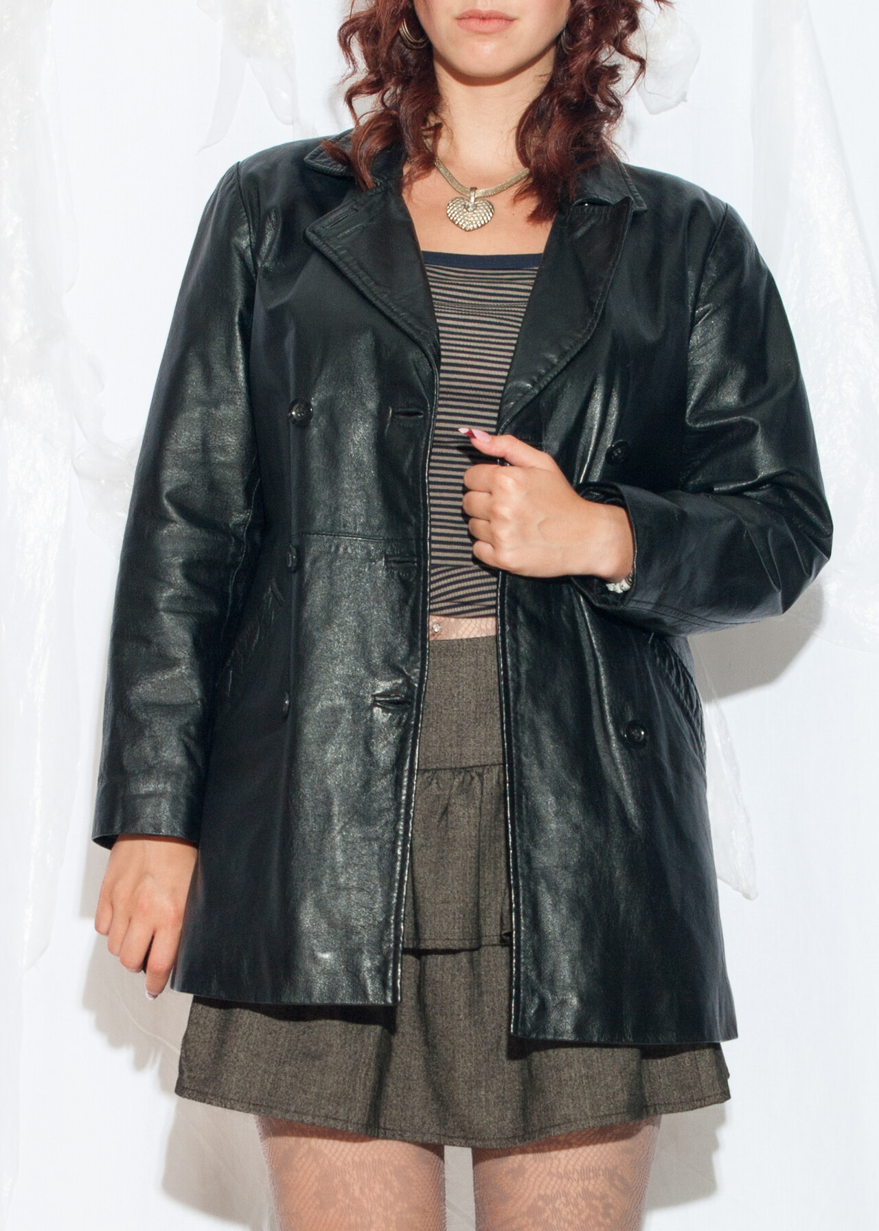 Tags: black jacket, double breasted, grunge style outfit, natural fabric, real leather coat, trench coat, y2k vintage fashion