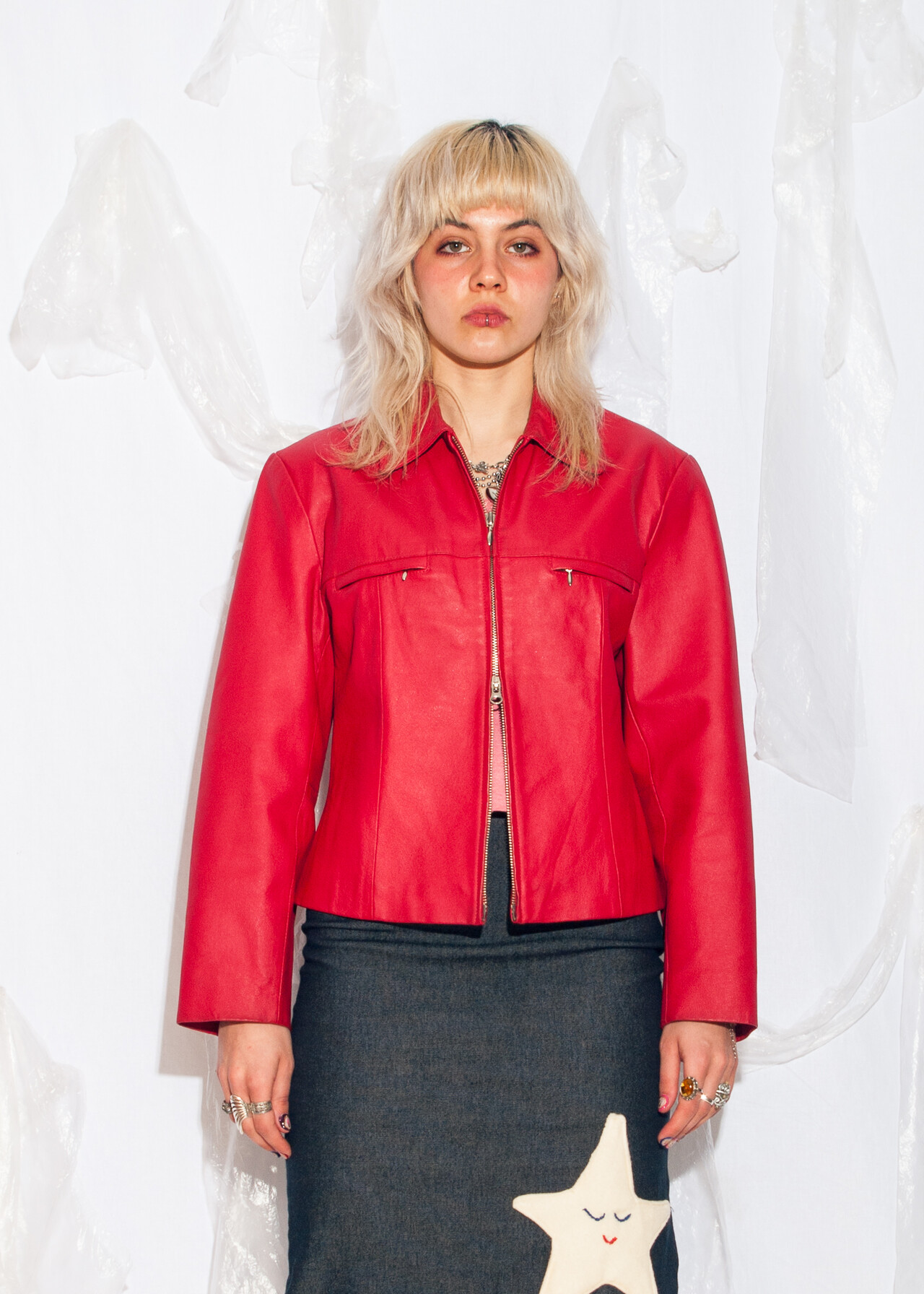 This Y2K vintage red leather jacket is your ticket to the 2000s when flip phones were cool, and nobody knew what an influencer was.