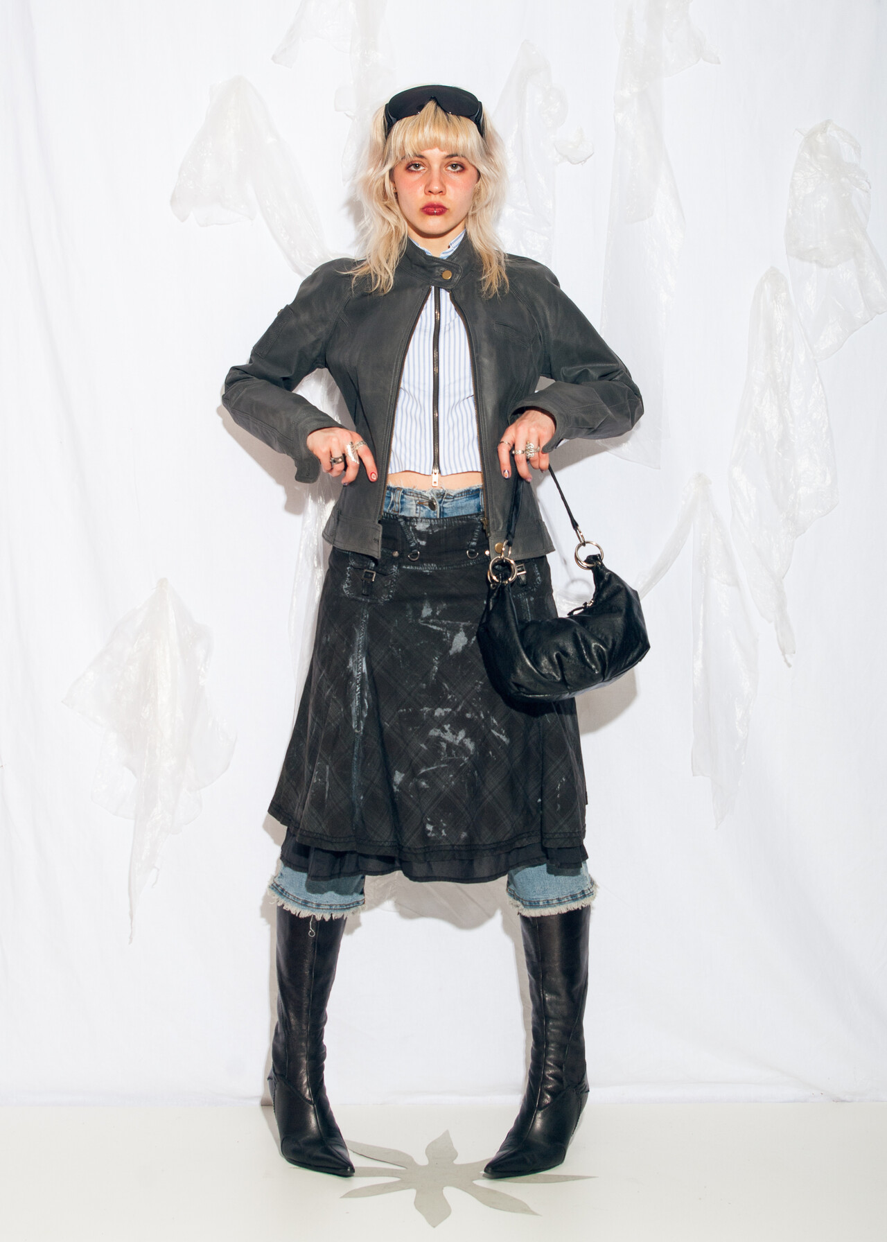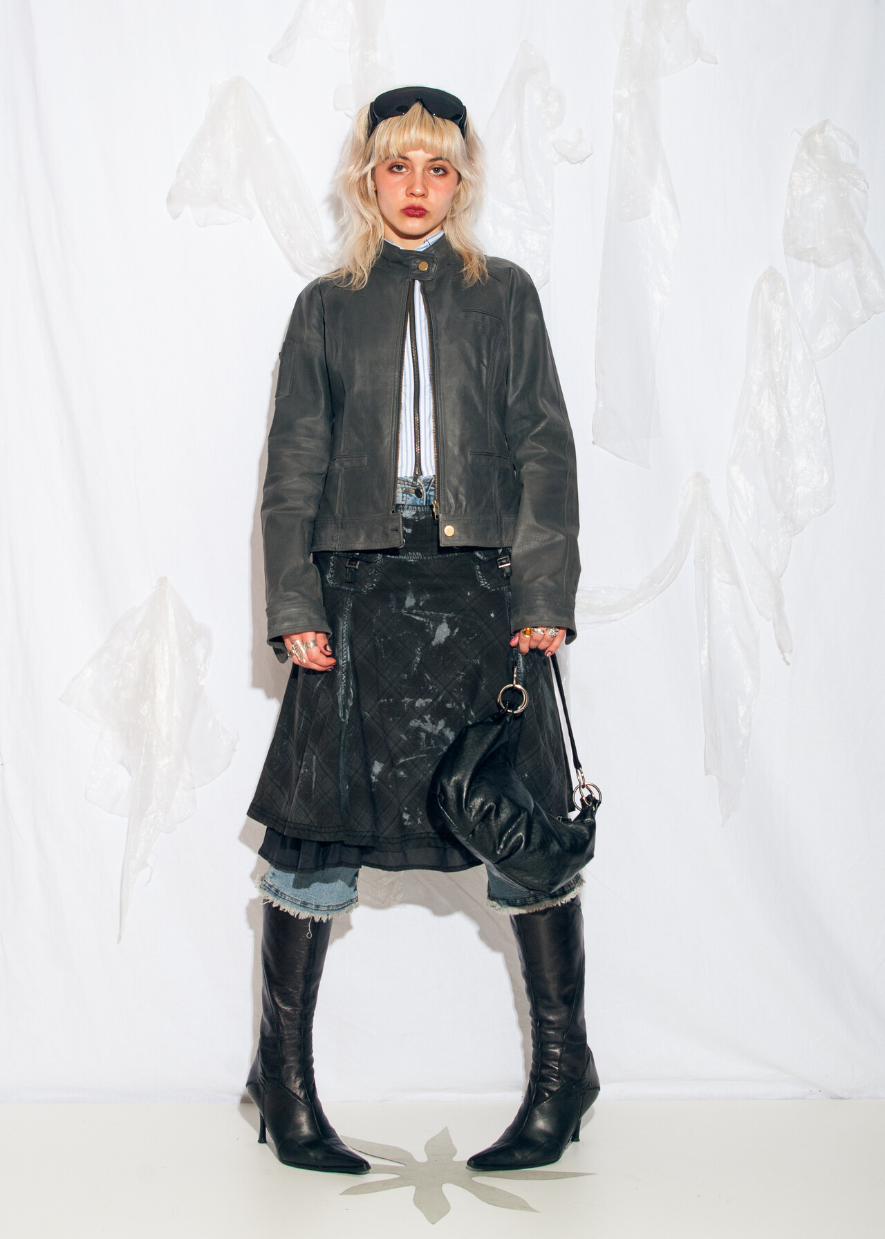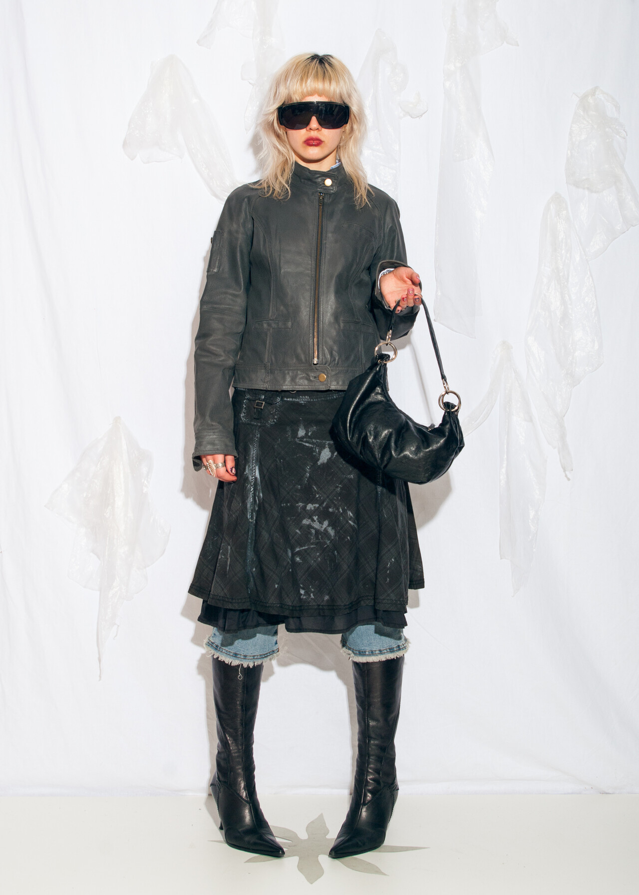 Tags: 2000s vintage style, biker jacket, moto racing jacket, real leather coat
