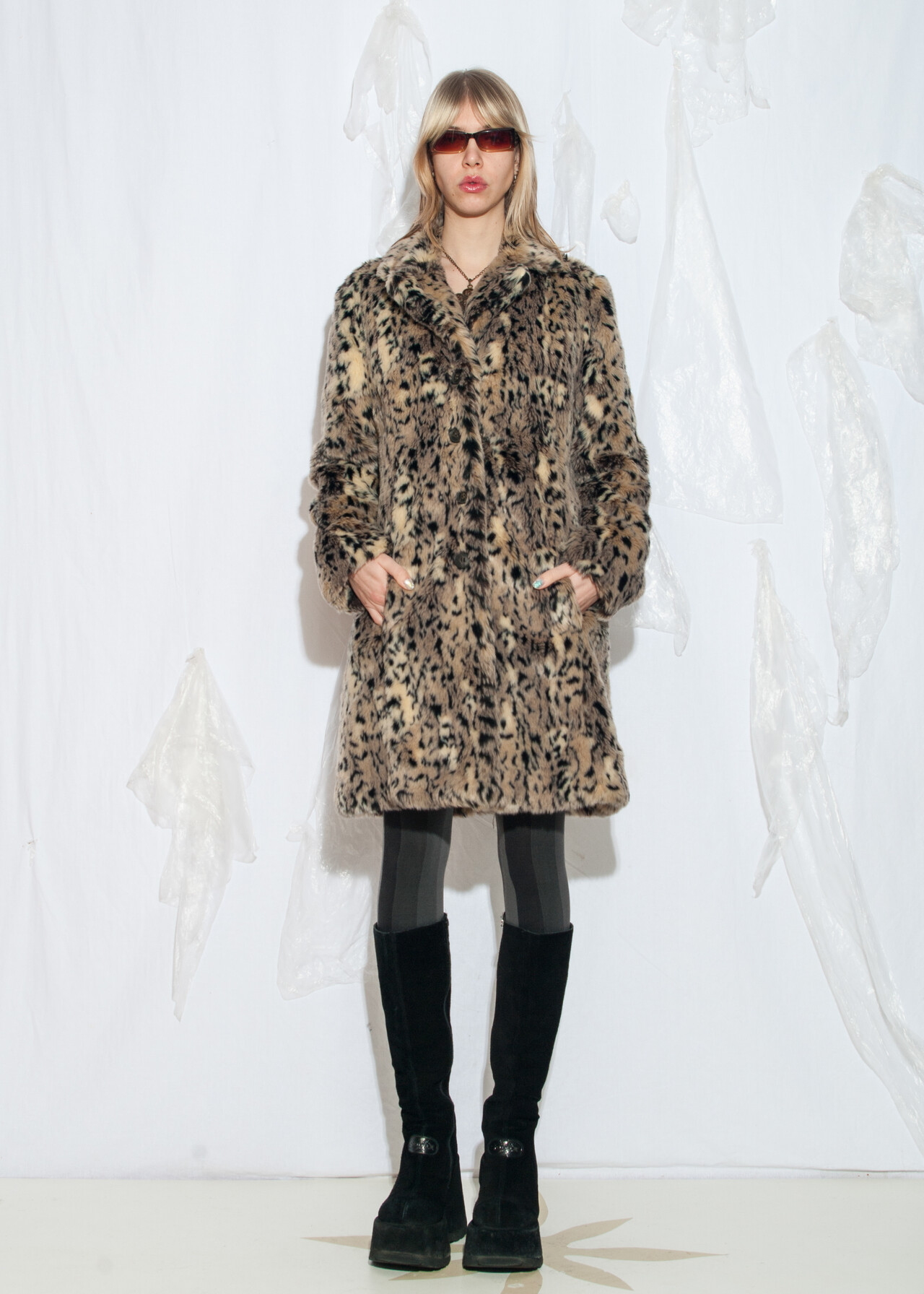 This Y2K vintage faux fur coat is the perfect grunge outfit upgrade, featuring a leopard pattern that’s more iconic than your old dial-up ringtone. Wrap yourself in beige nostalgia and channel your inner early 2000s diva.