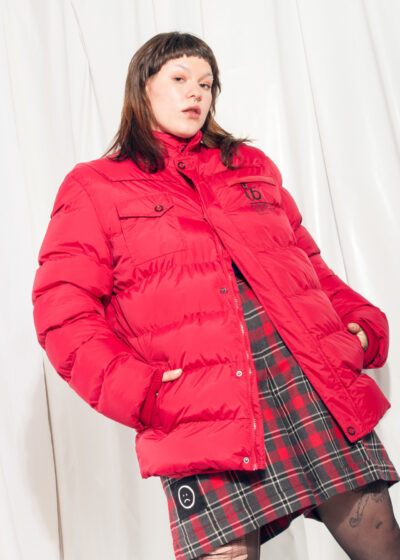 Vintage Puffer Jacket 90s Windbreaker Winter Coat in Red