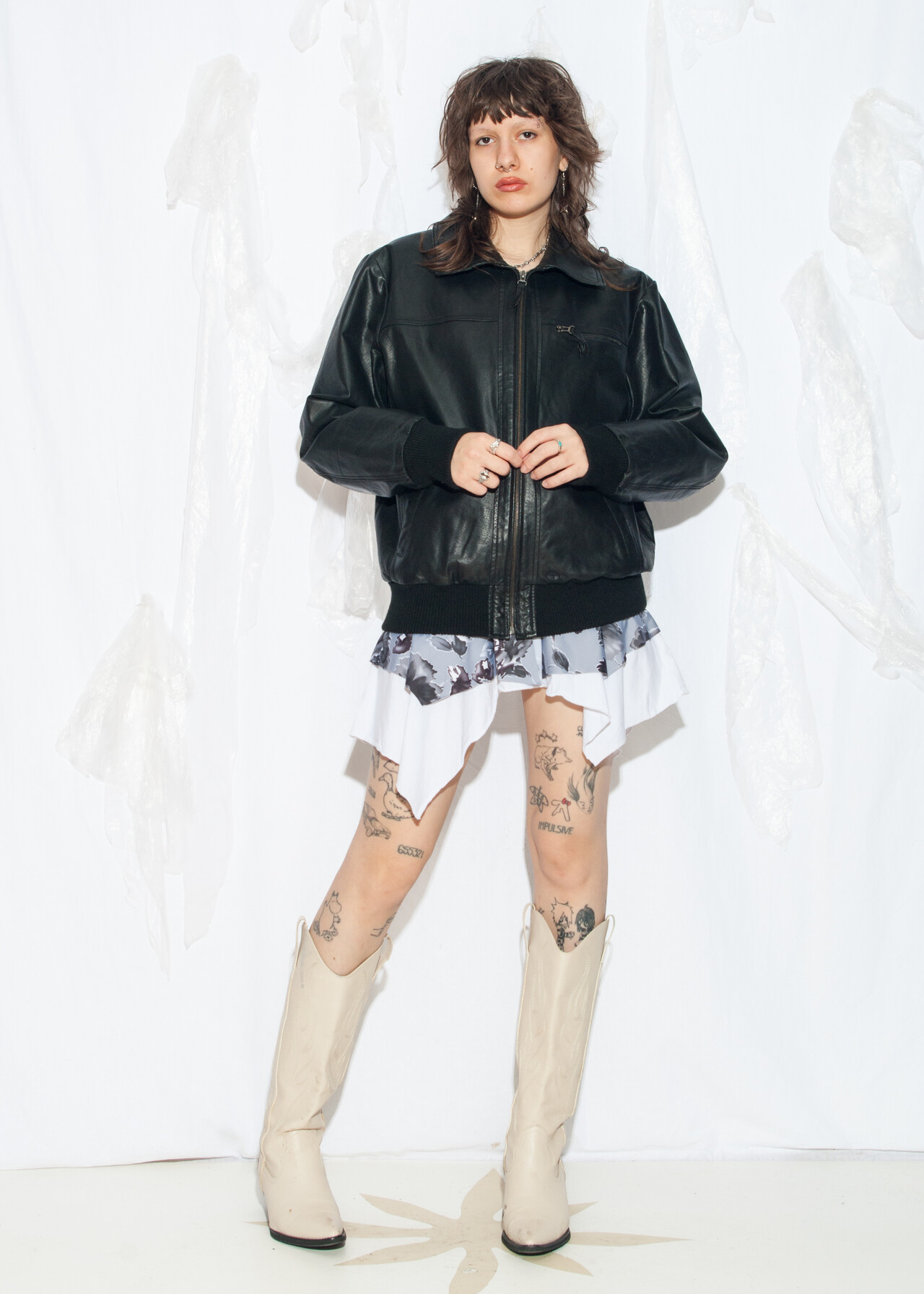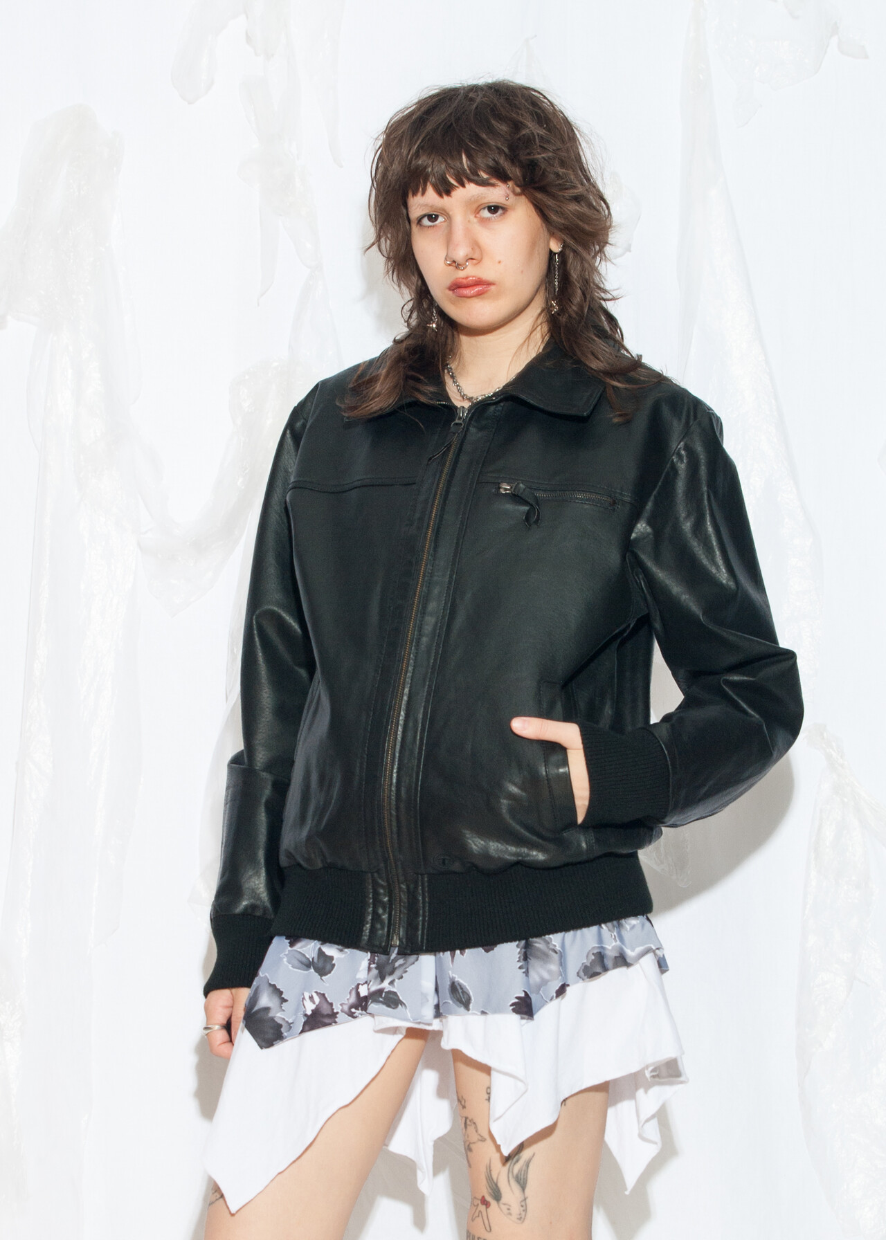 Tags: 2000s style clothing, black jacket, boyfriend fit jacket, oversized bomber, real leather coat, y2k grunge outfit, y2k vintage fashion