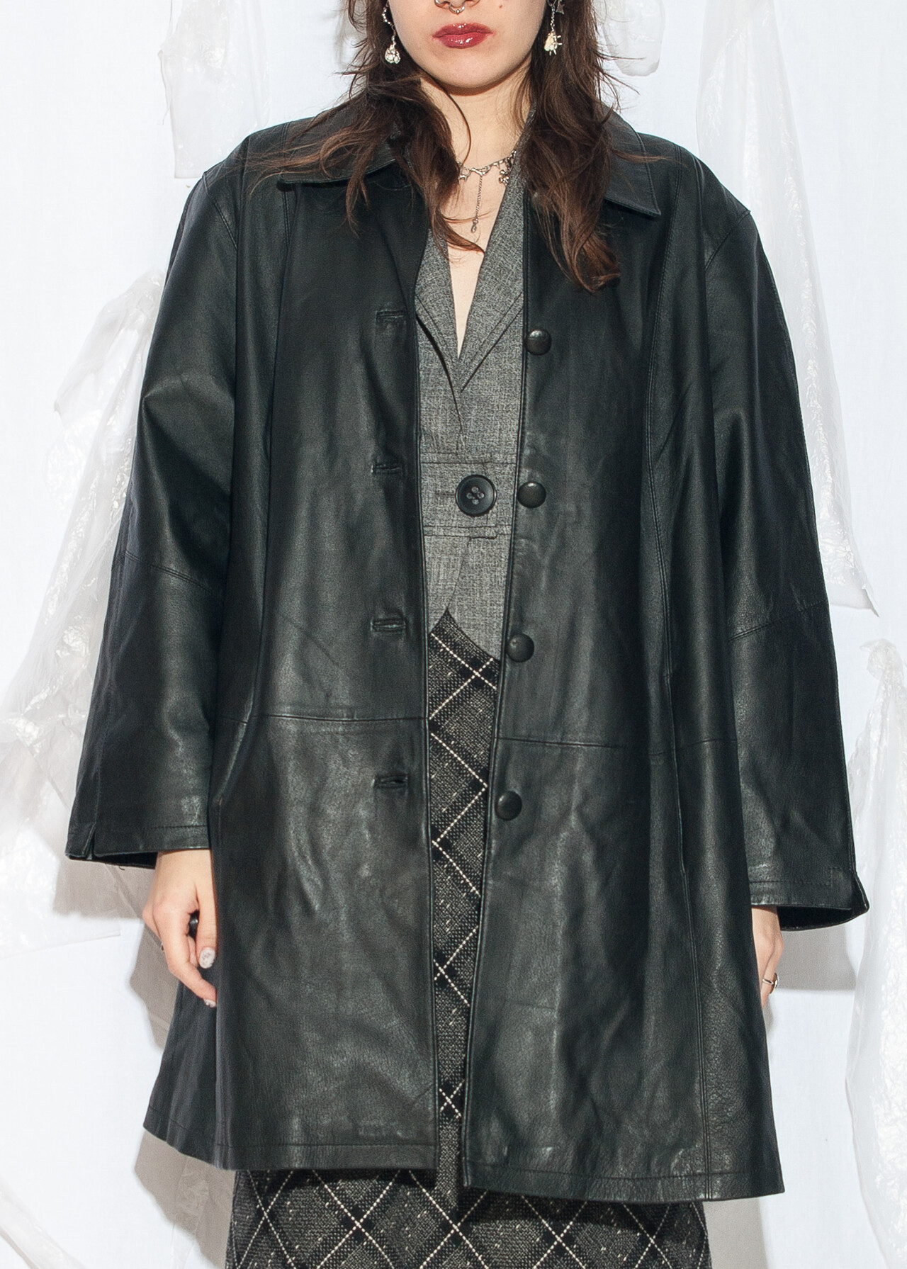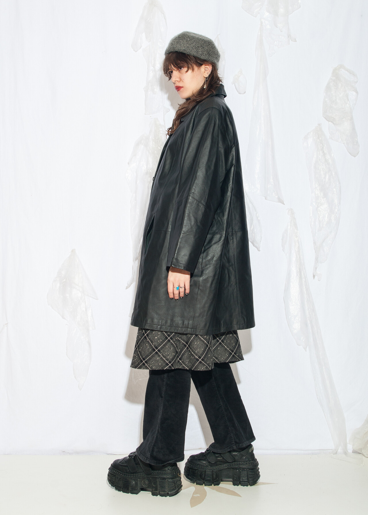 This Y2K vintage real leather coat is an oversized, chunky grunge masterpiece that’s more iconic than your high school emo phase.