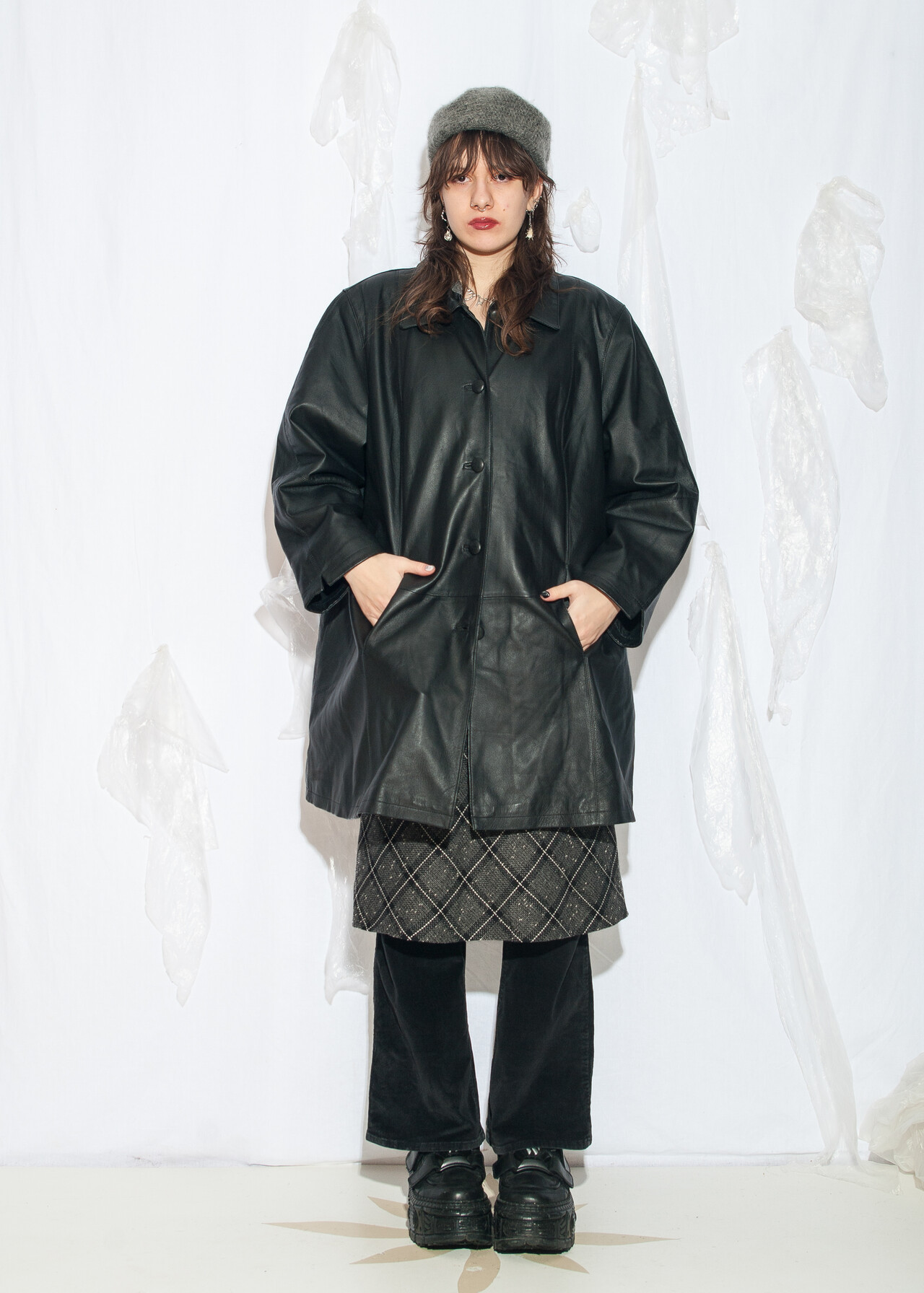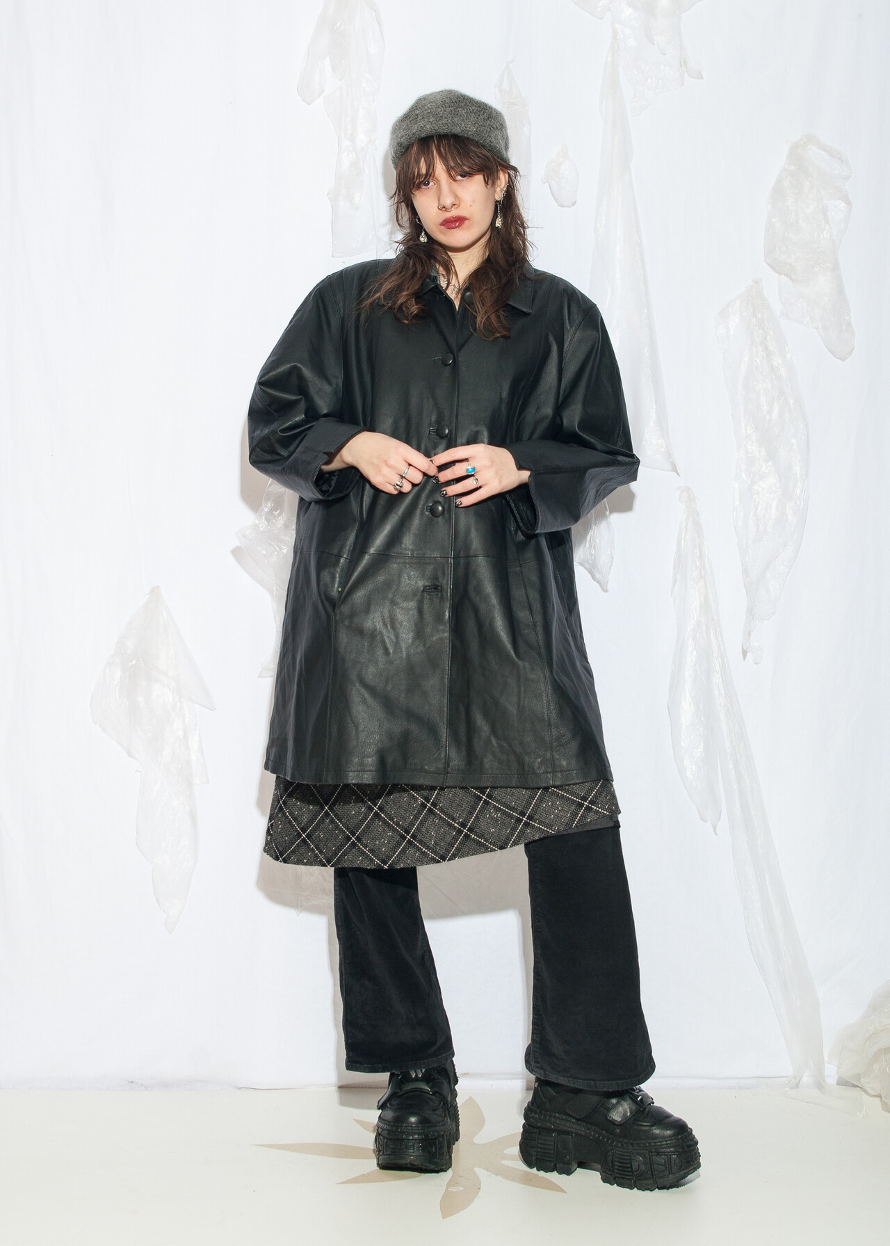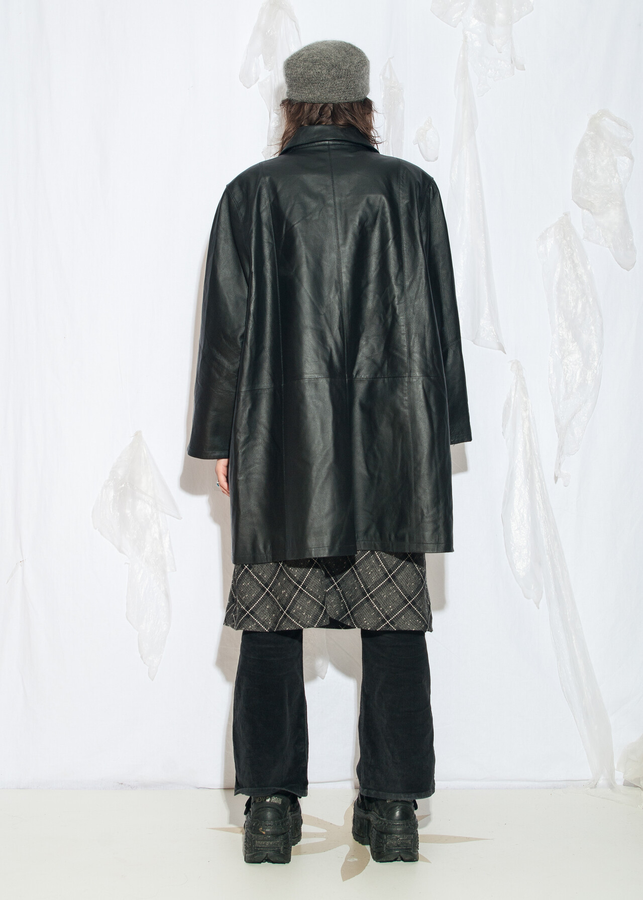 Tags: 00s streetwear, 2000s style fashion, chunky coat, European vintage, grunge outfit, matrix style coat, minimalist look, oversized jacket, real leather coat, whimsigoth, y2k vintage clothing