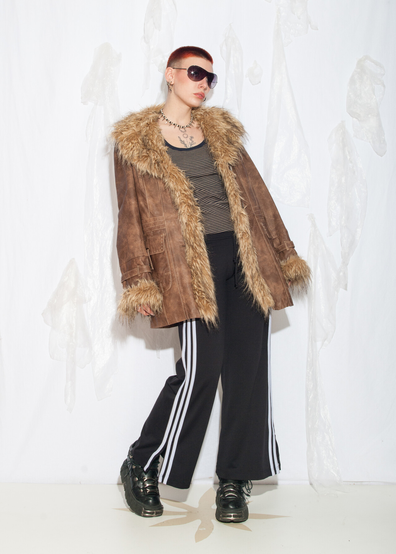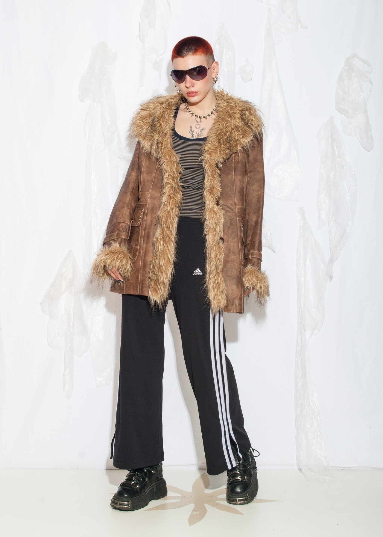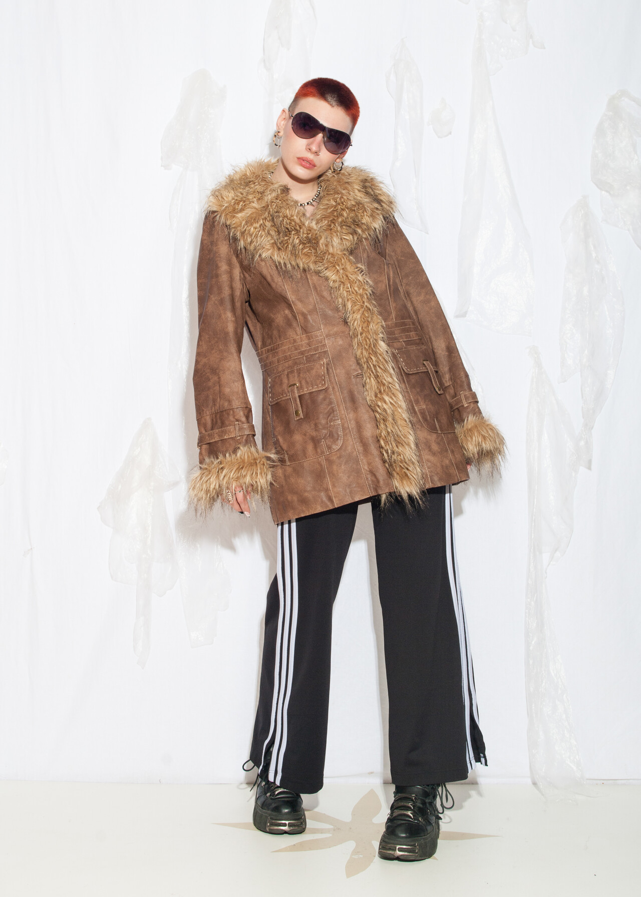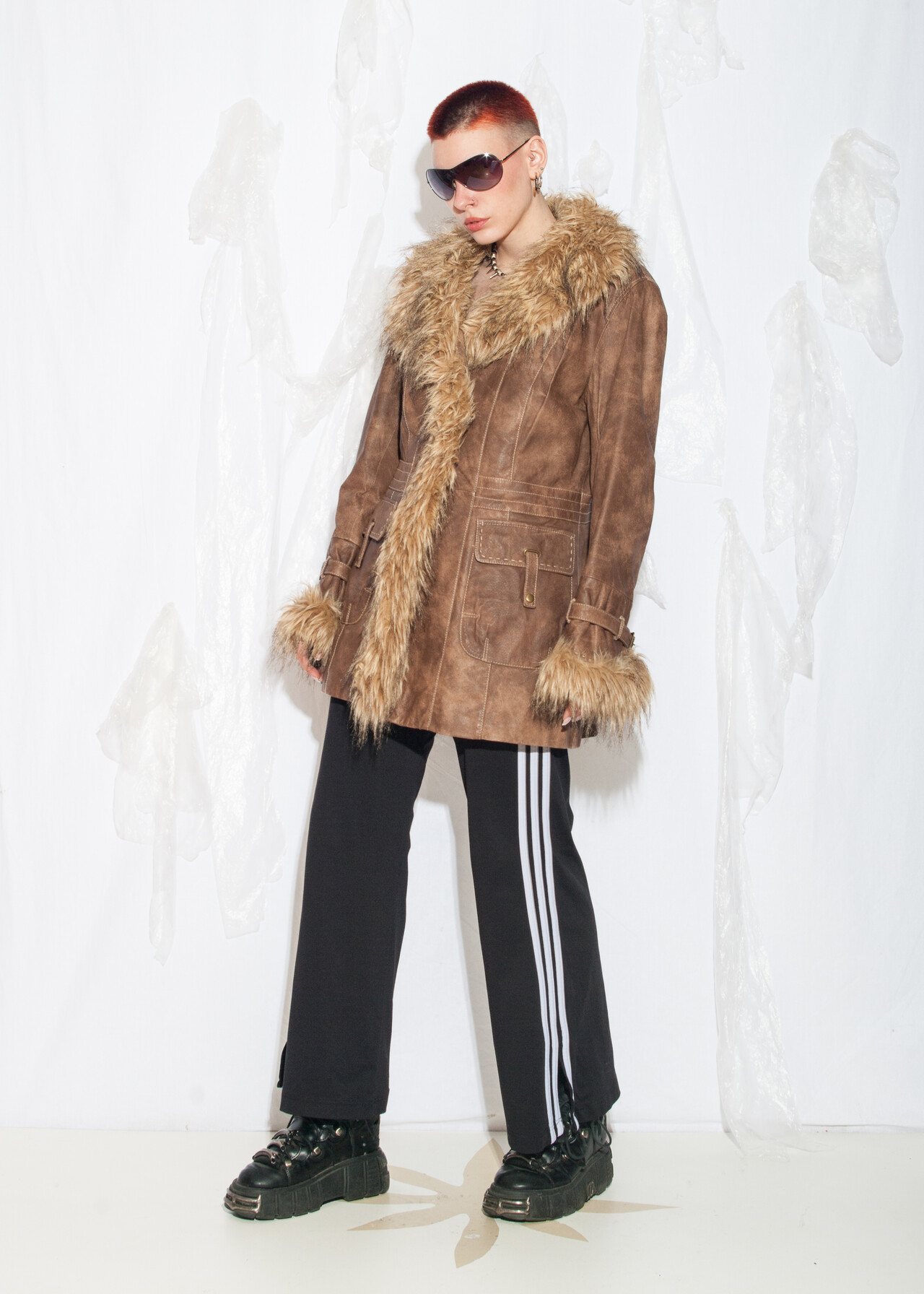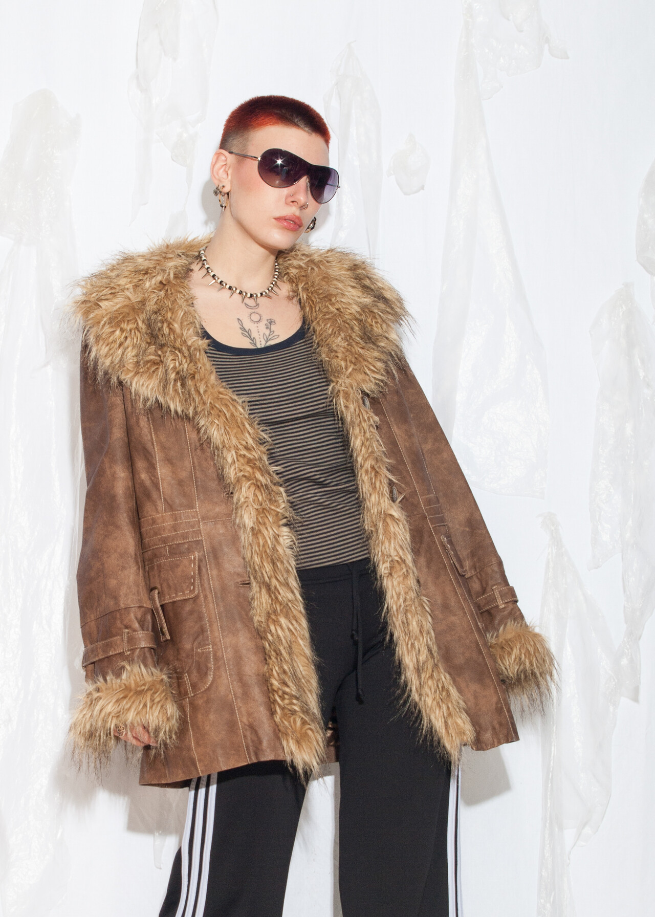 Tags: 00s streetwear, 2000s style clothing, afghan coat, brown leather jacket, faux fur shearling, Penny Lane coat, real leather coat, whimsigoth, y2k grunge outfit, y2k vintage fashion