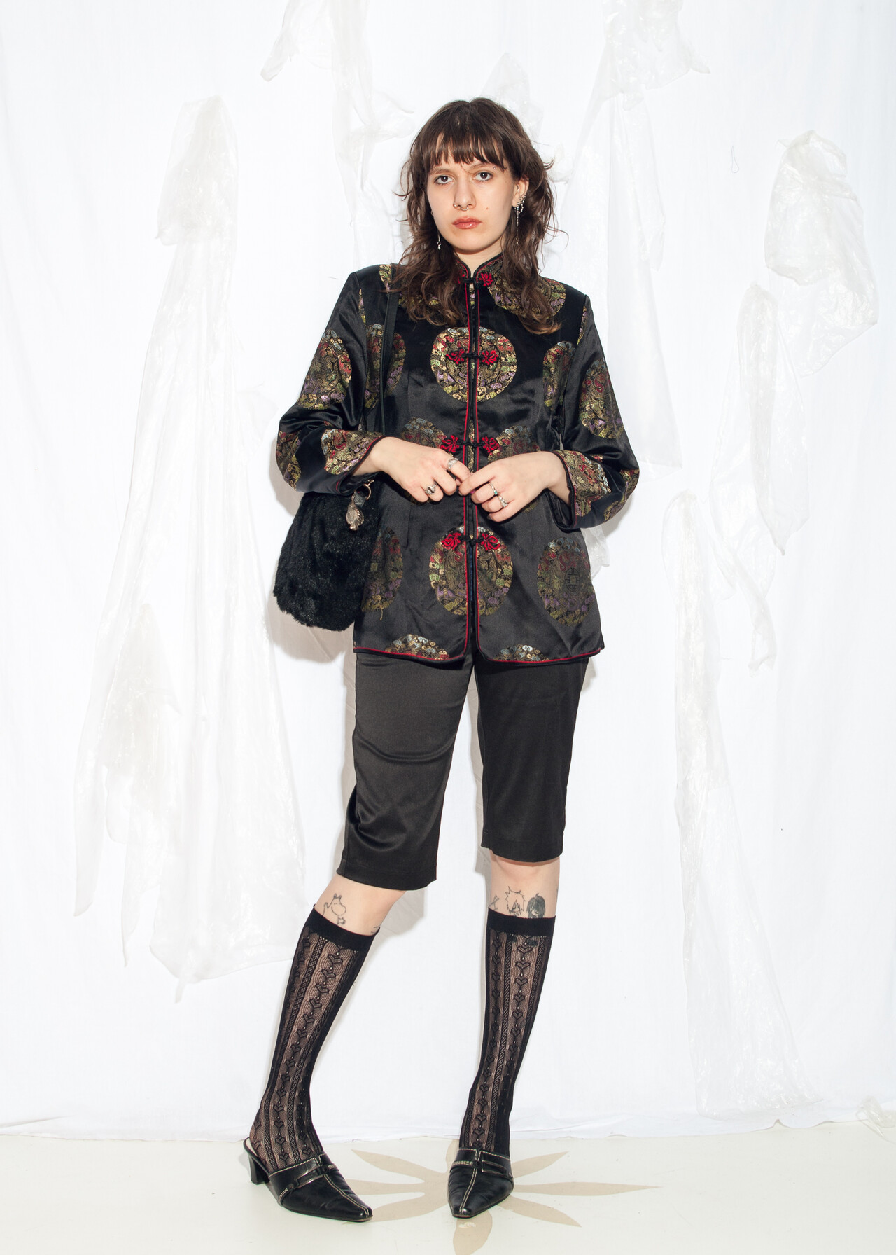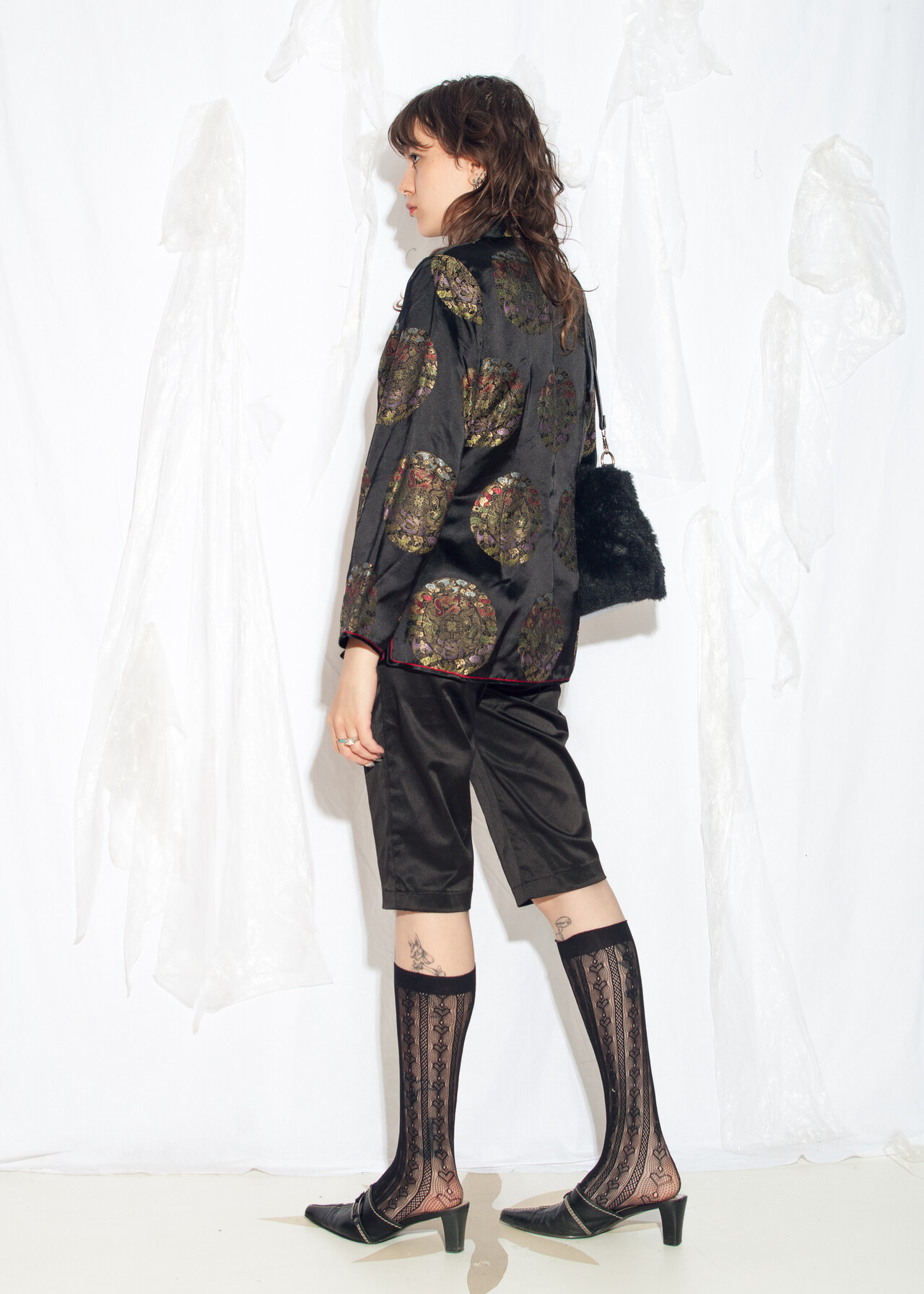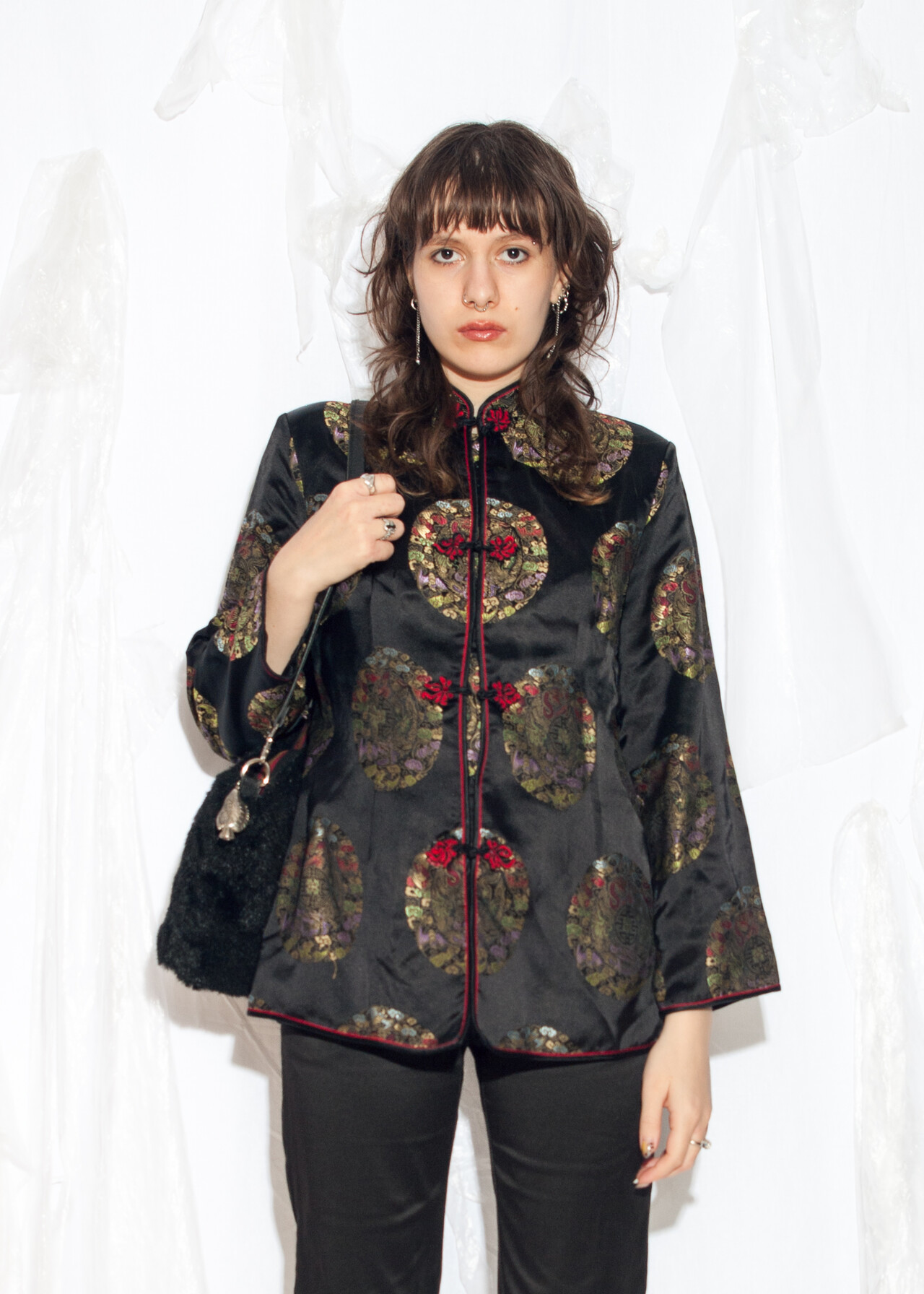 Tags: 2000s style clothing, Chinese coat, elegant evening coat, kimono jacket, oriental outfit, satin blazer, y2k vintage fashion