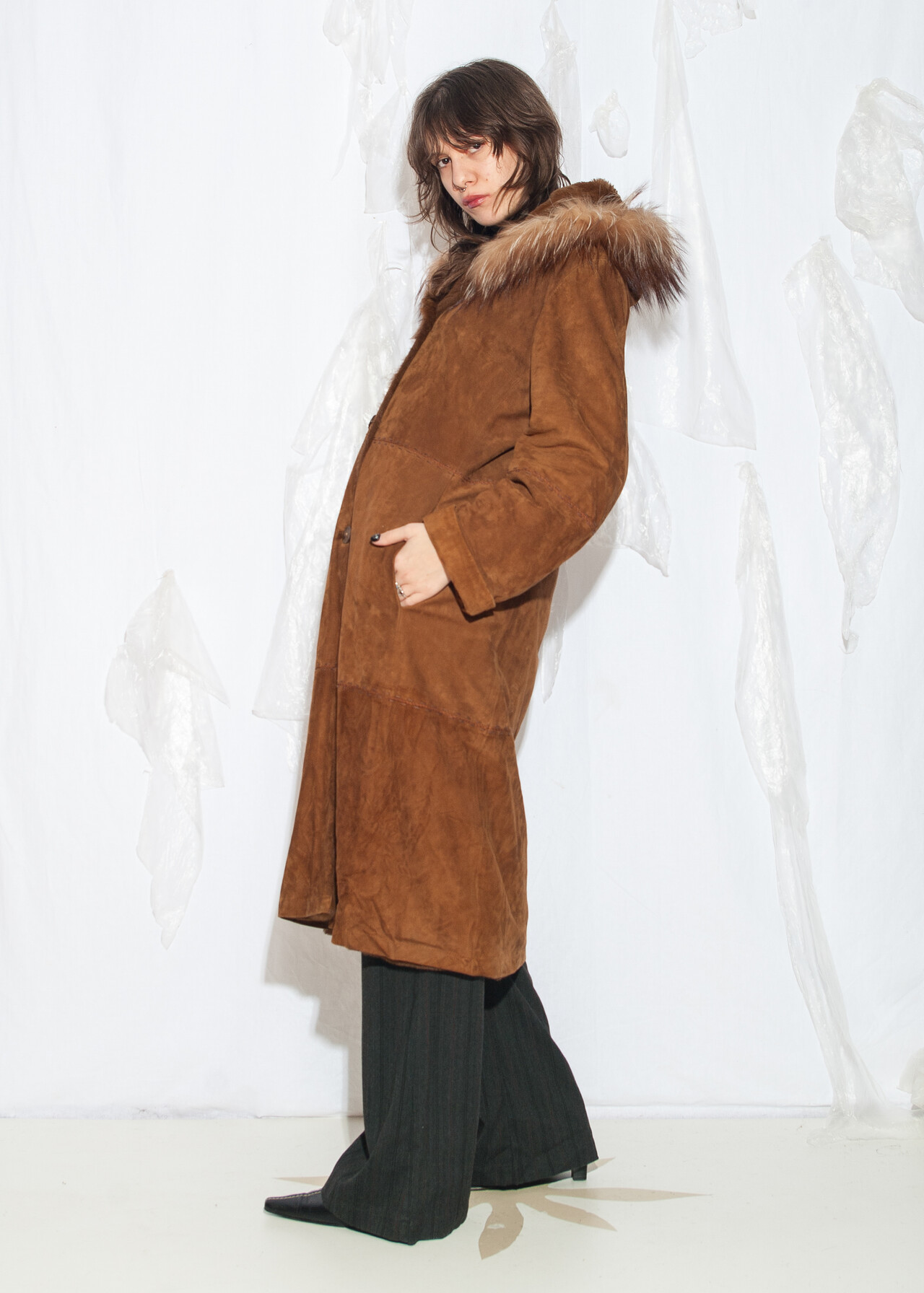 Tags: 2000s style fashion, afghan coat, European vintage, furry hood, leather coat, luxury vintage, Penny Lane style, real fur lining, shearling coat, suede jacket, y2k grunge outfit, y2k vintage clothing
