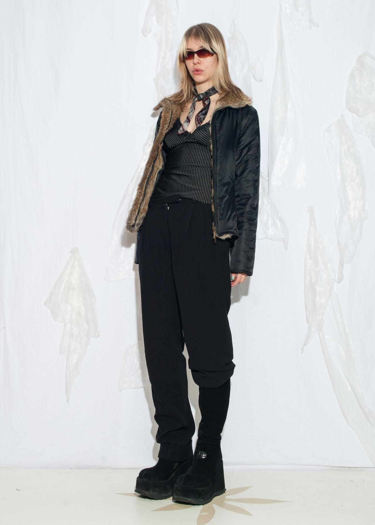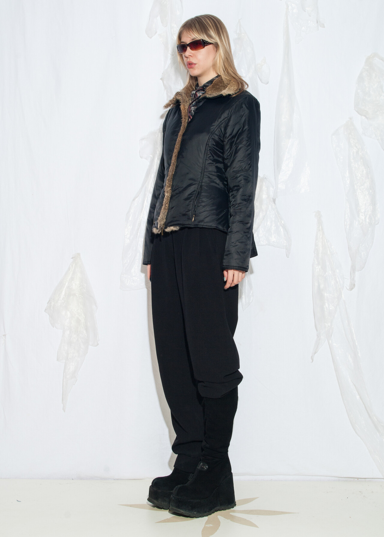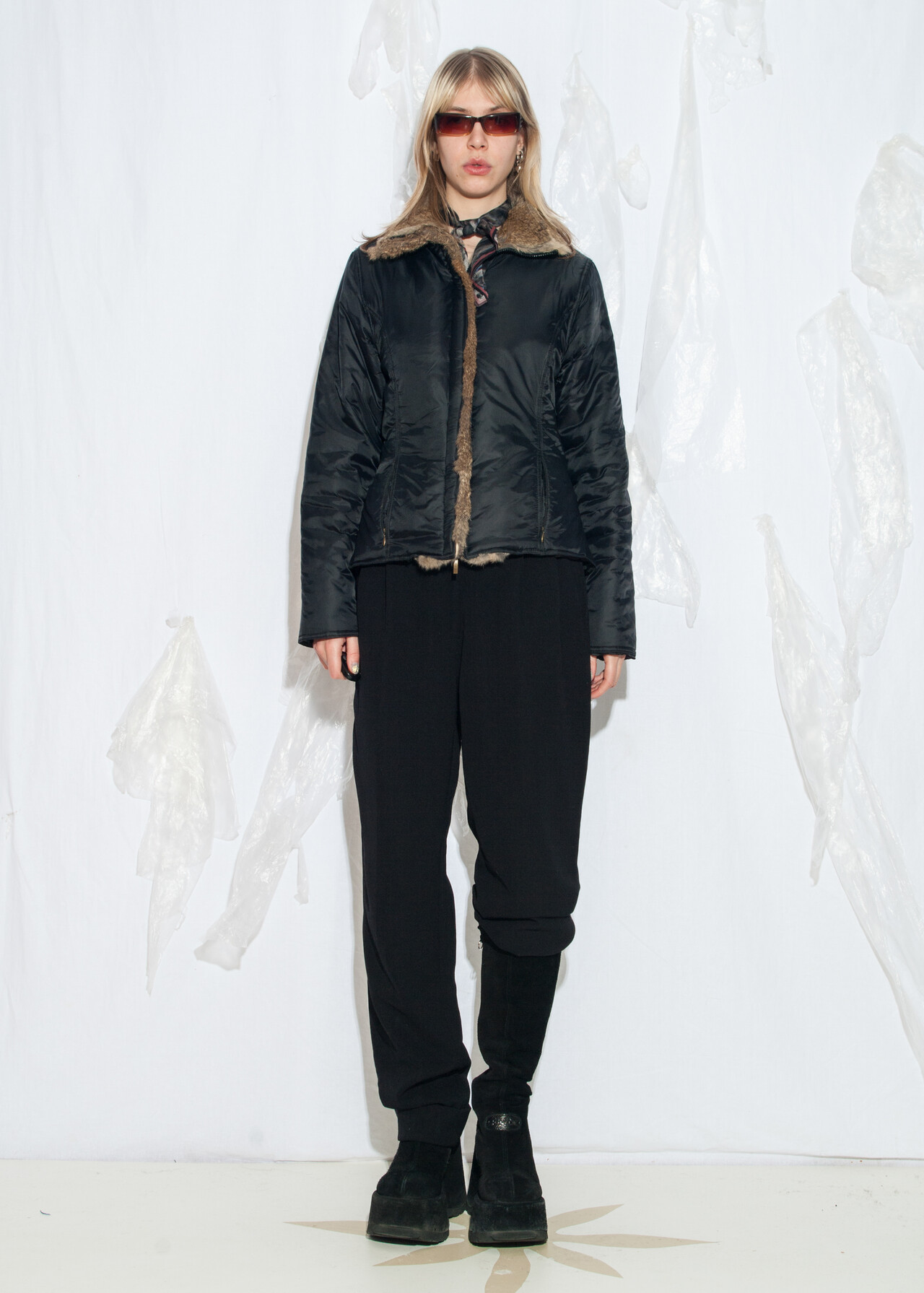 This Y2K vintage jacket is a slim fit windbreaker with a real fur collar, perfect for when you want to channel those early 2000s vibes while keeping the chill at bay.