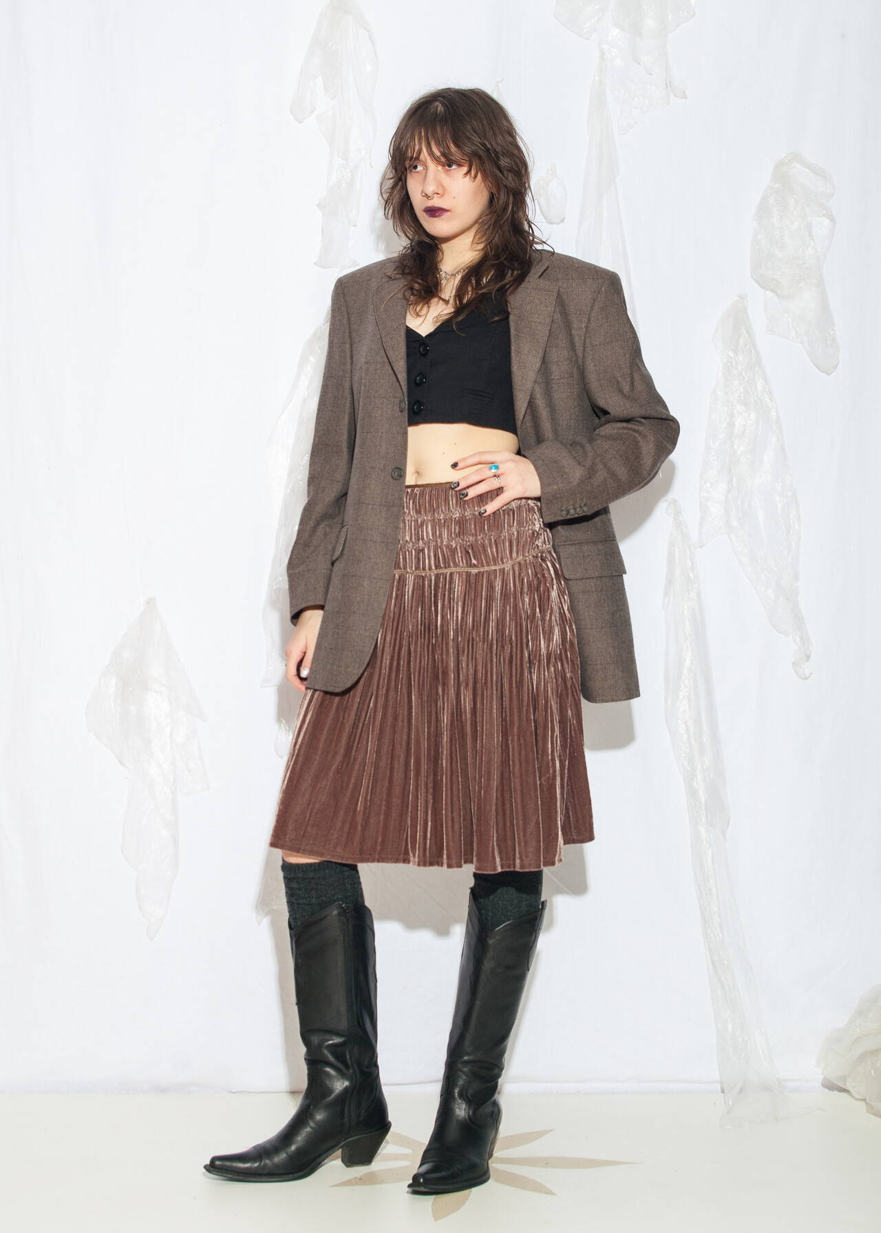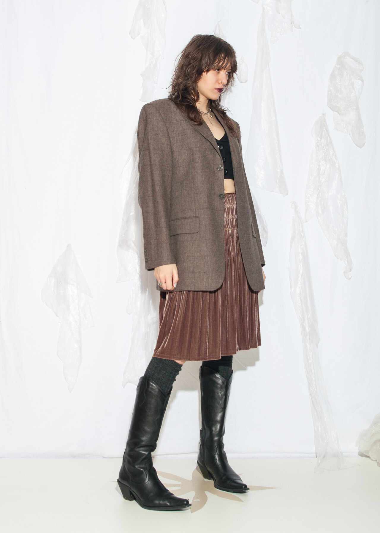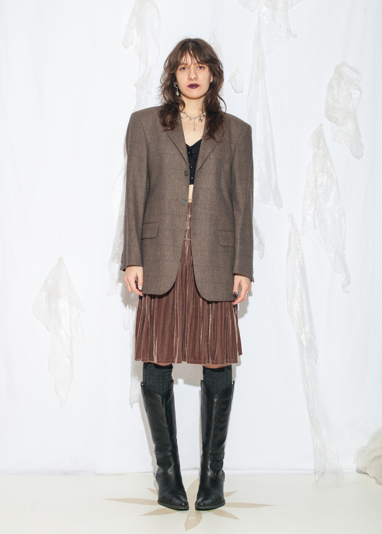 This Y2K vintage wool blazer by styl is your ticket to transforming into an office siren, ready to crush meetings and break hearts in early 2000s style. Slip into this brown beauty and watch as your workspace turns into a runway of retro chic.