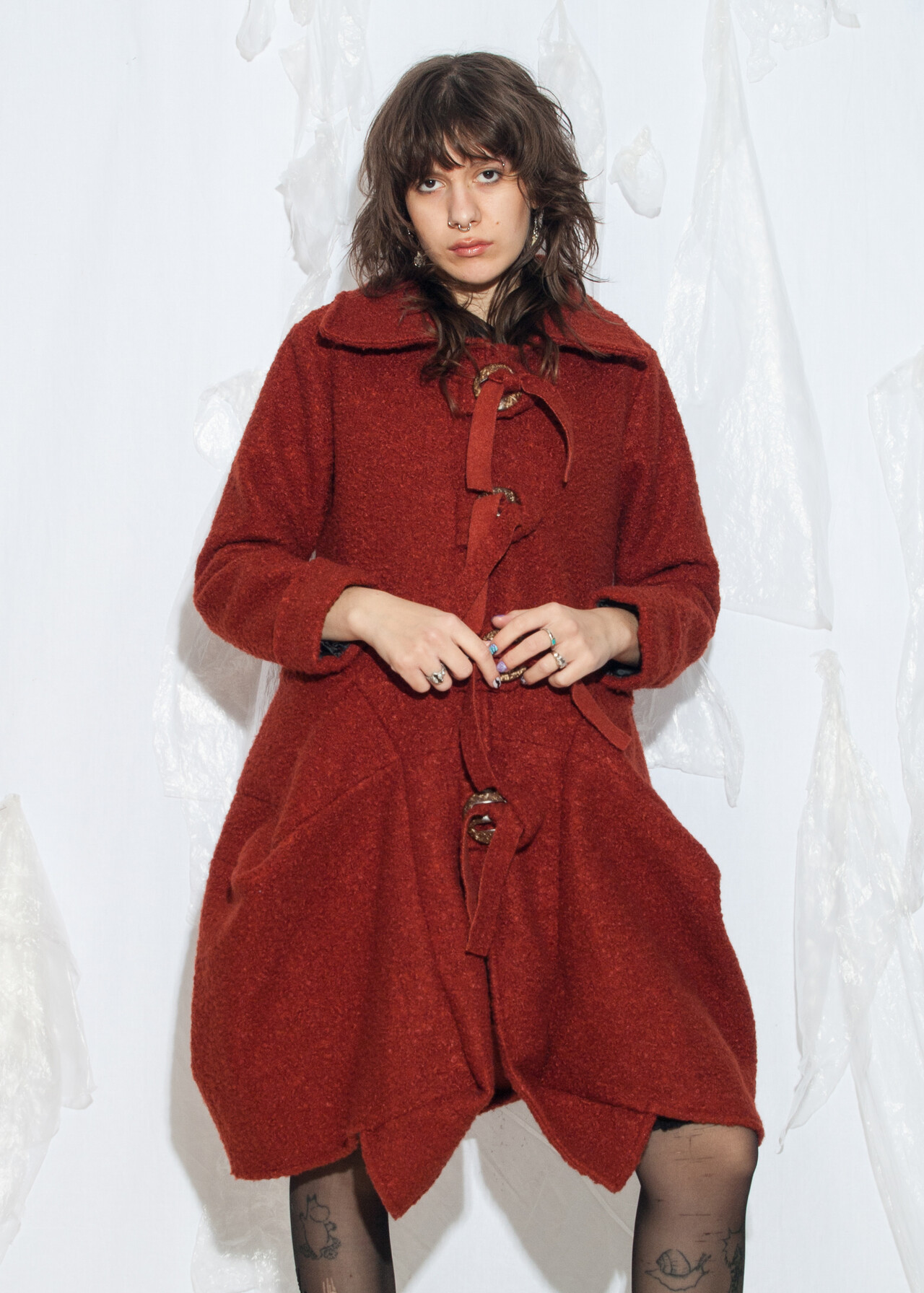 Tags: 2000s style fashion, European vintage, grunge outfit, made in Italy, maximalism, natural fabric, weird cut, whimsi twee, whimsigoth look, wool coat, y2k vintage clothing