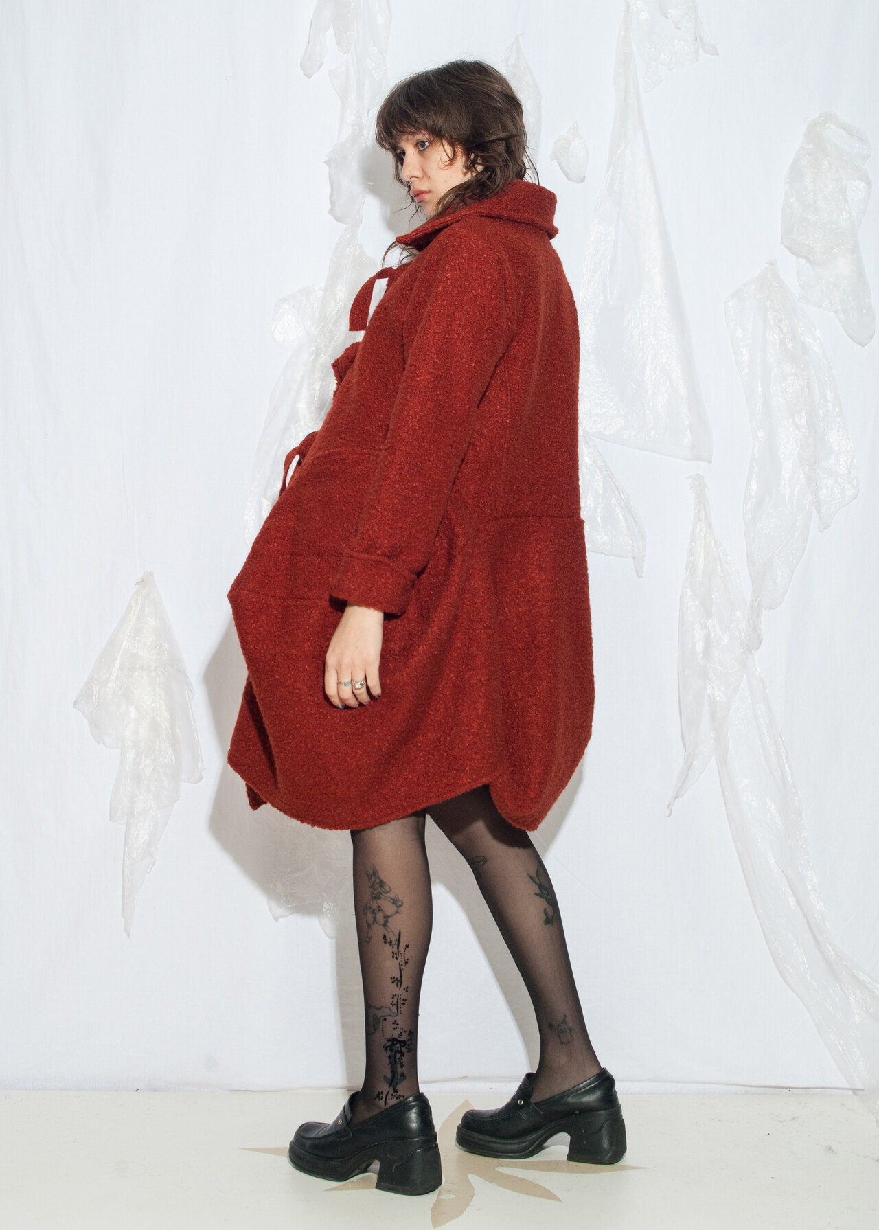 Vintage Y2K Weird Cut Wool Coat in Rust Brown