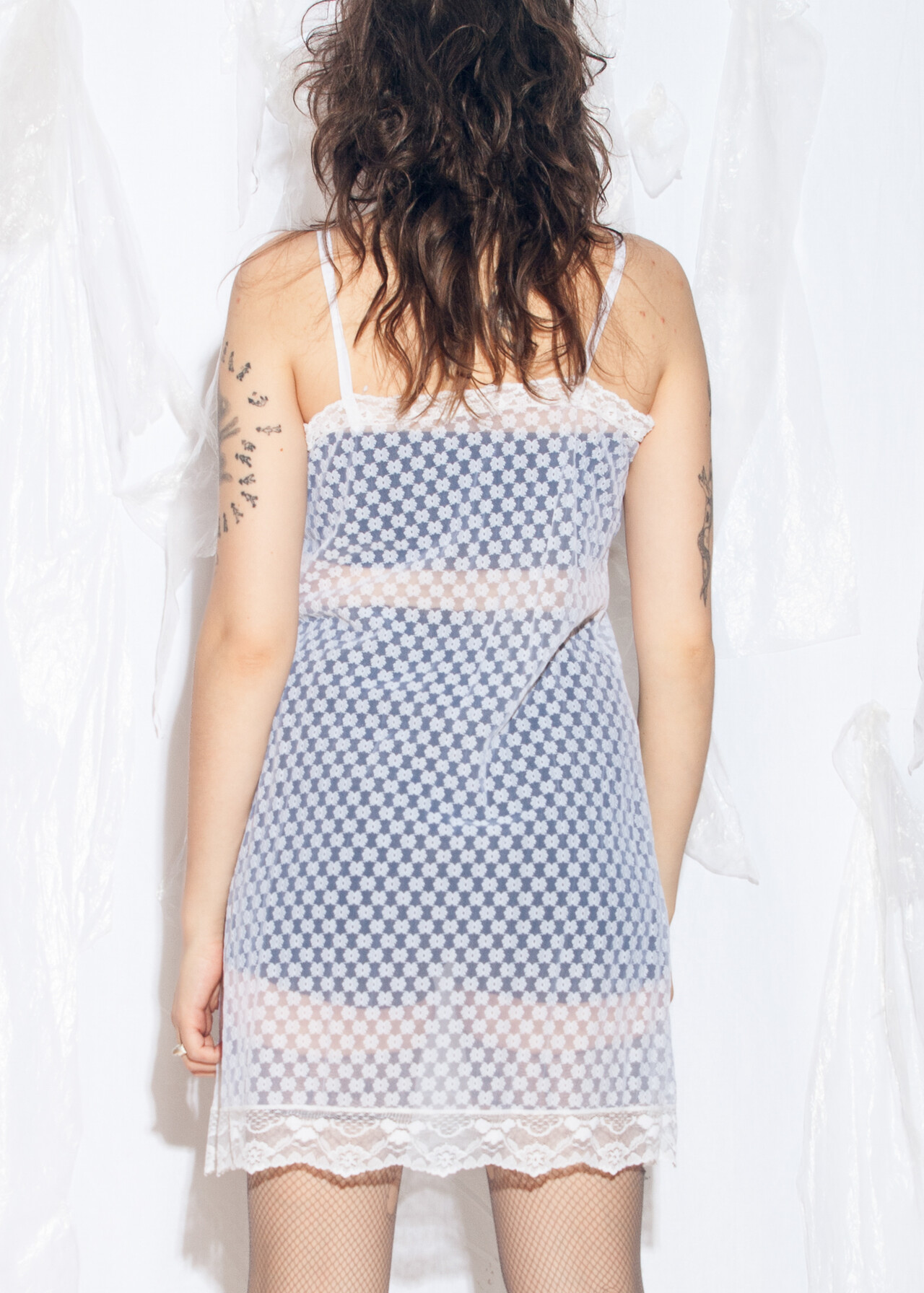 Vintage 70s Sheer Mesh Slip Dress in White Lace