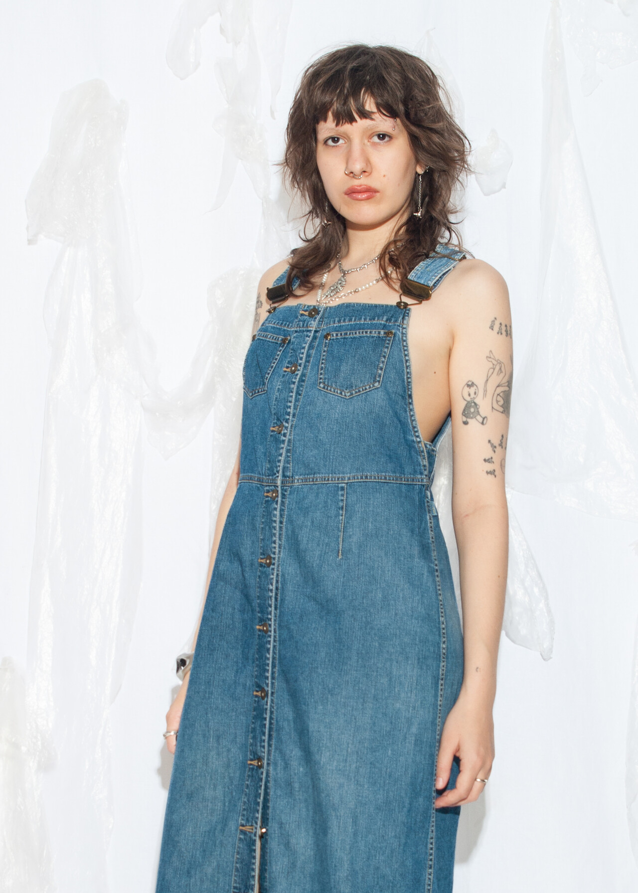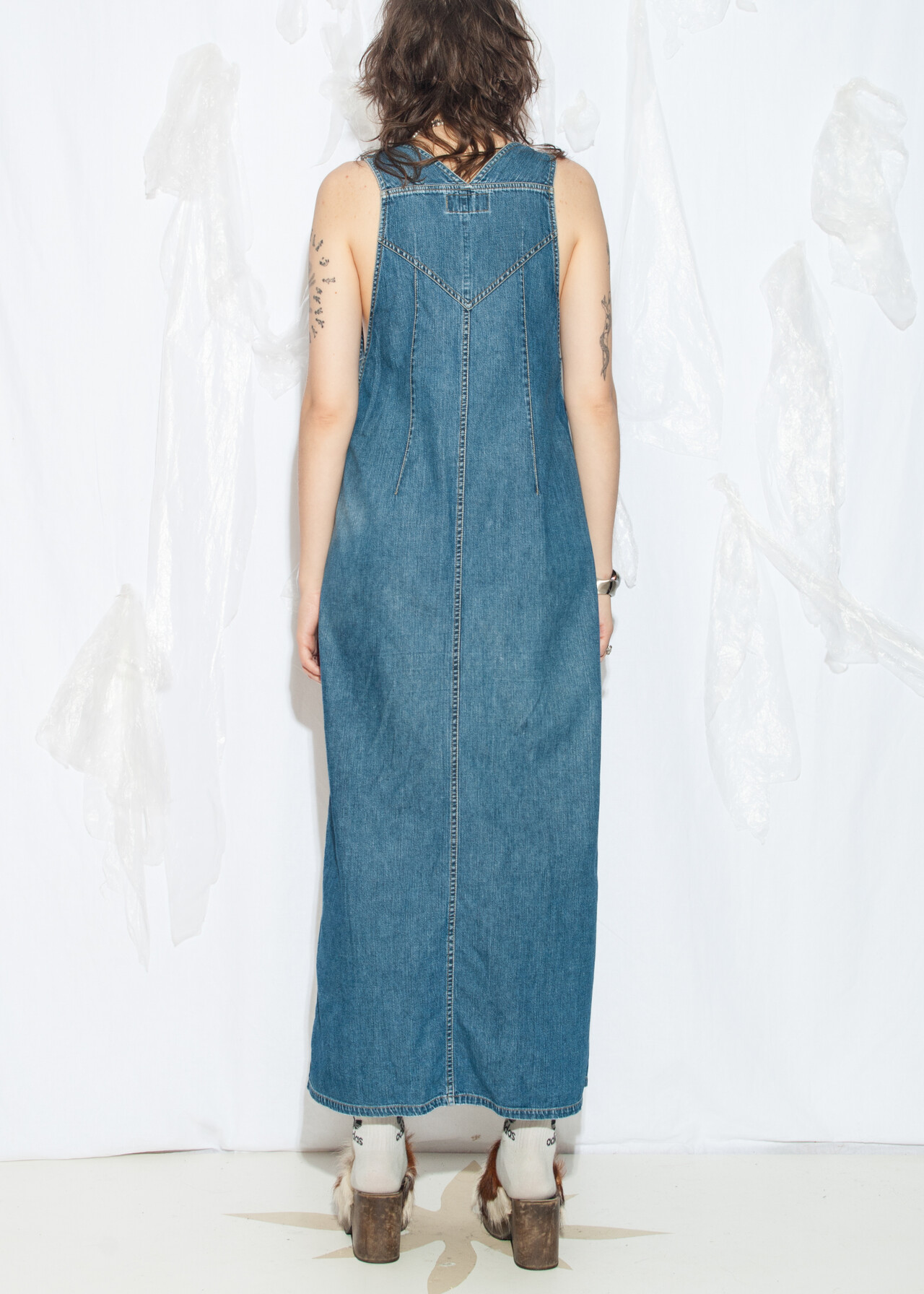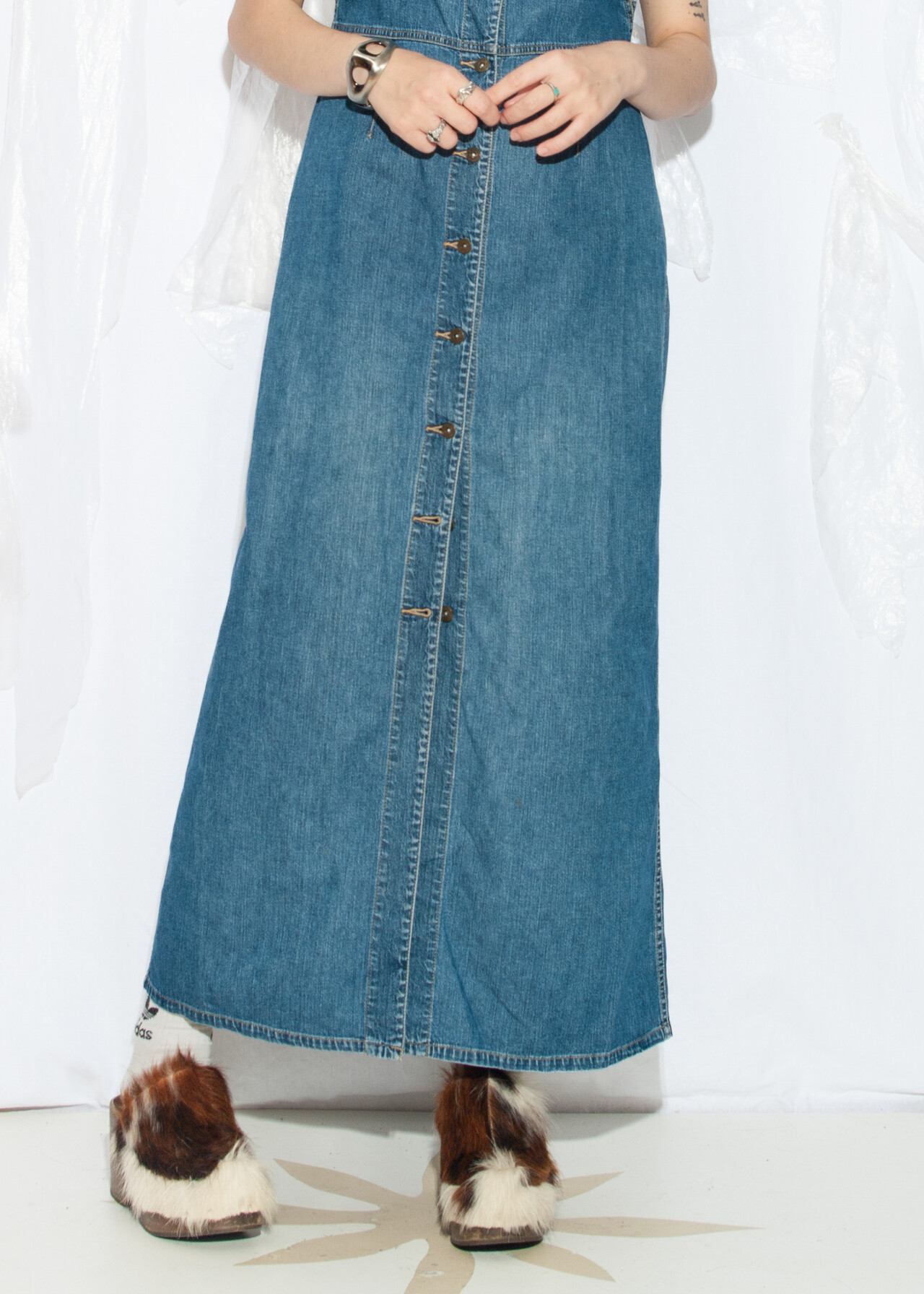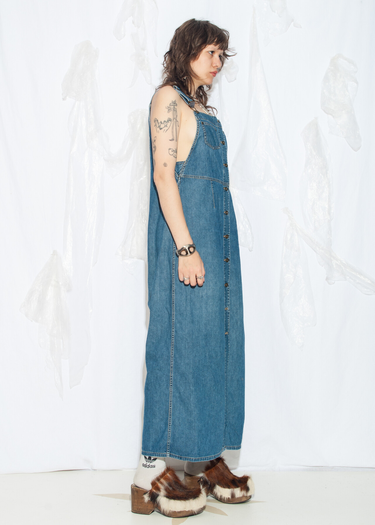 Tags: 90s vintage fashion, button front dress, denim maxi dress, designer vintage, dungaree dress, grunge style outfit, Liz Claiborne, pinafore dress