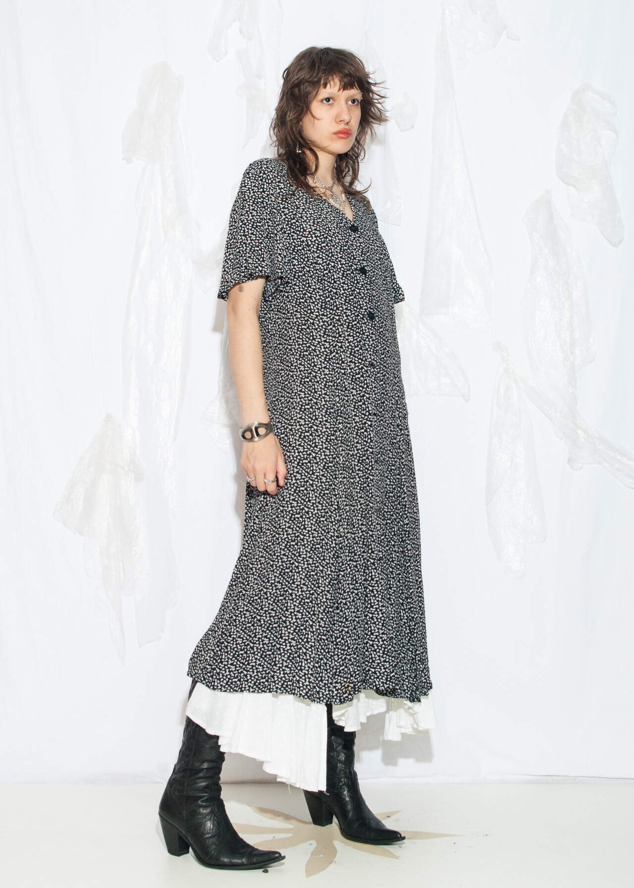 Tags: 90s vintage fashion, button front dress, grunge style outfit, long maxi dress, romantic dress, whimsigoth clothing