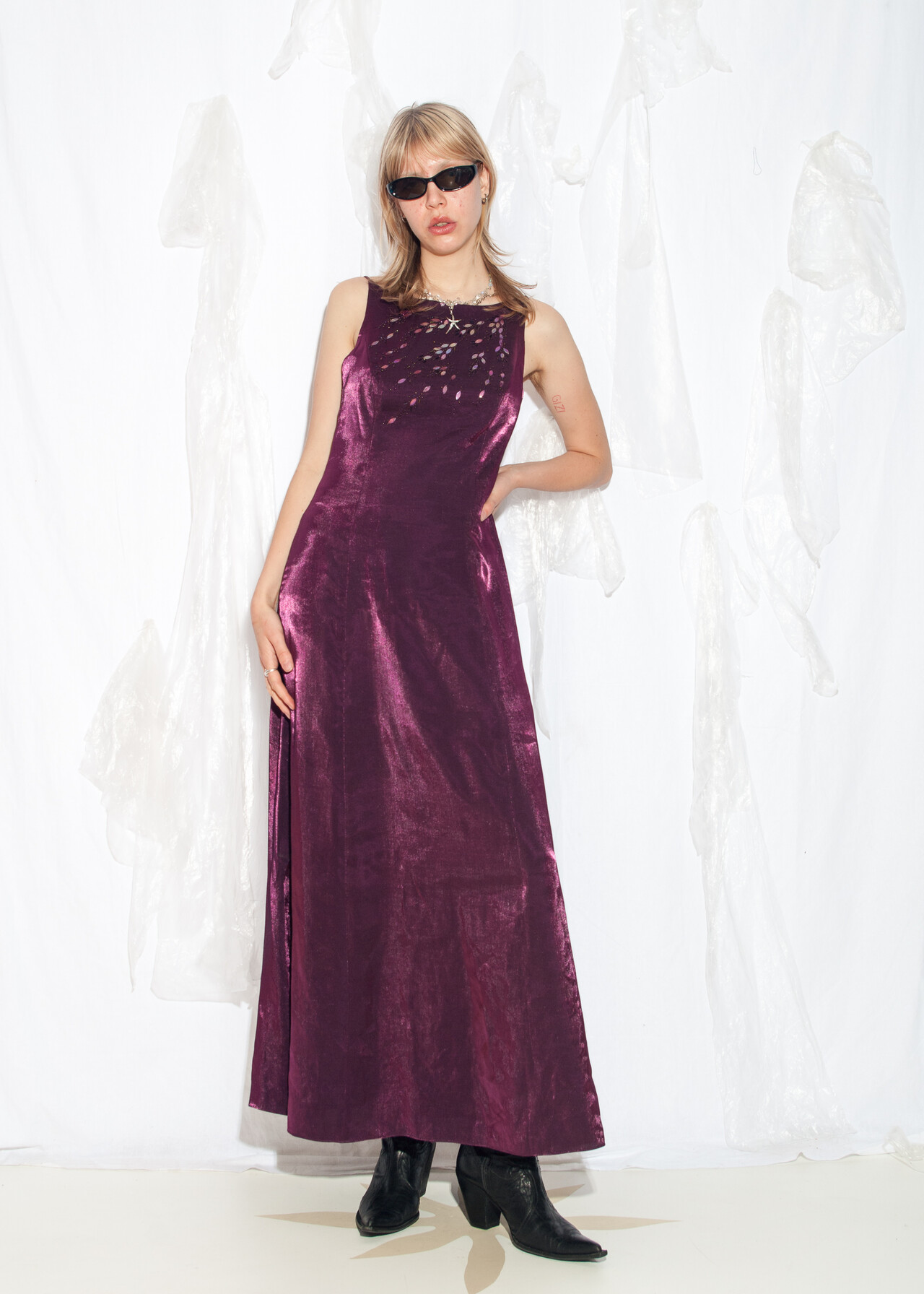 Be the first to review “Vintage Y2K Beaded Maxi Dress in Purple” Cancel reply