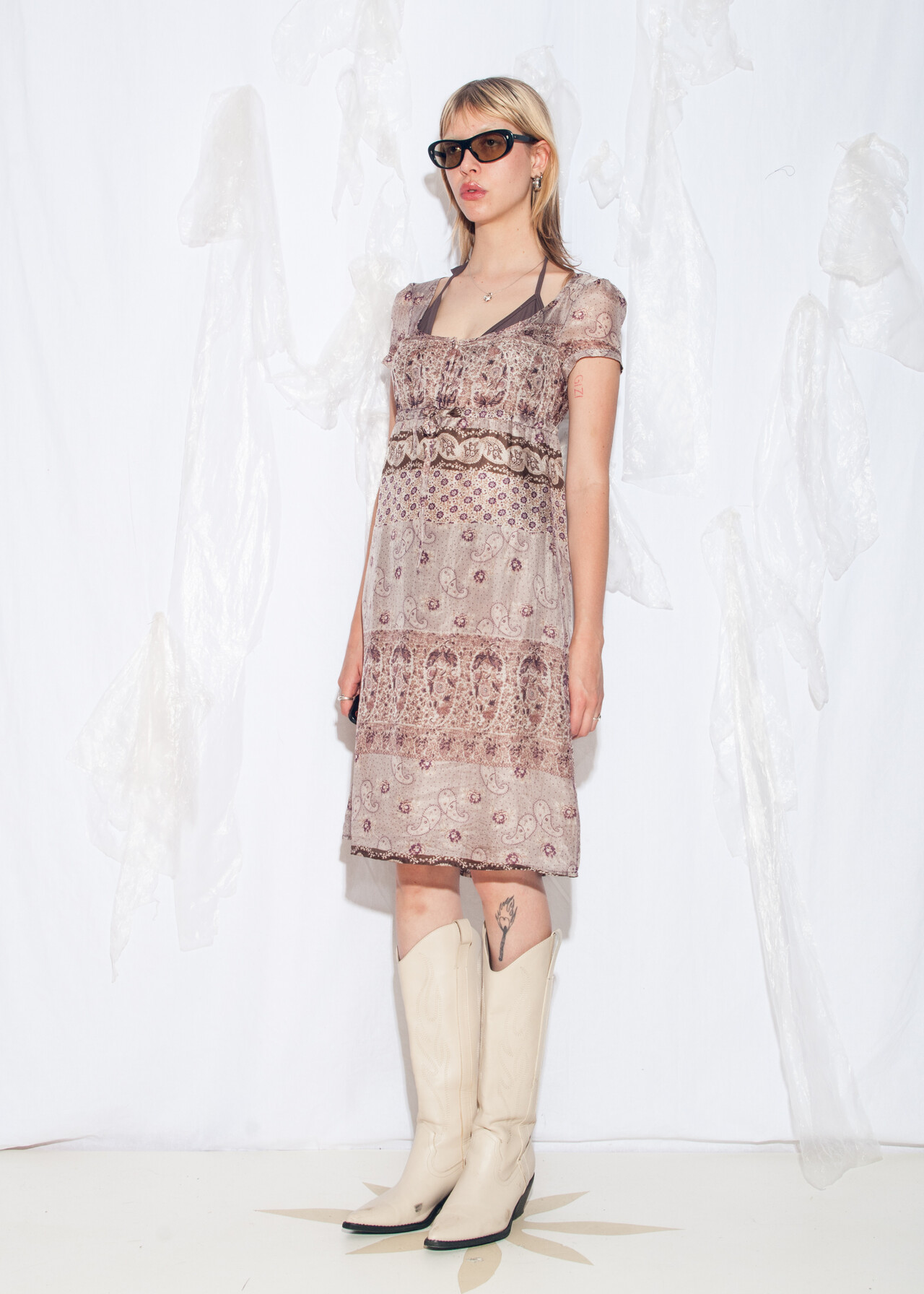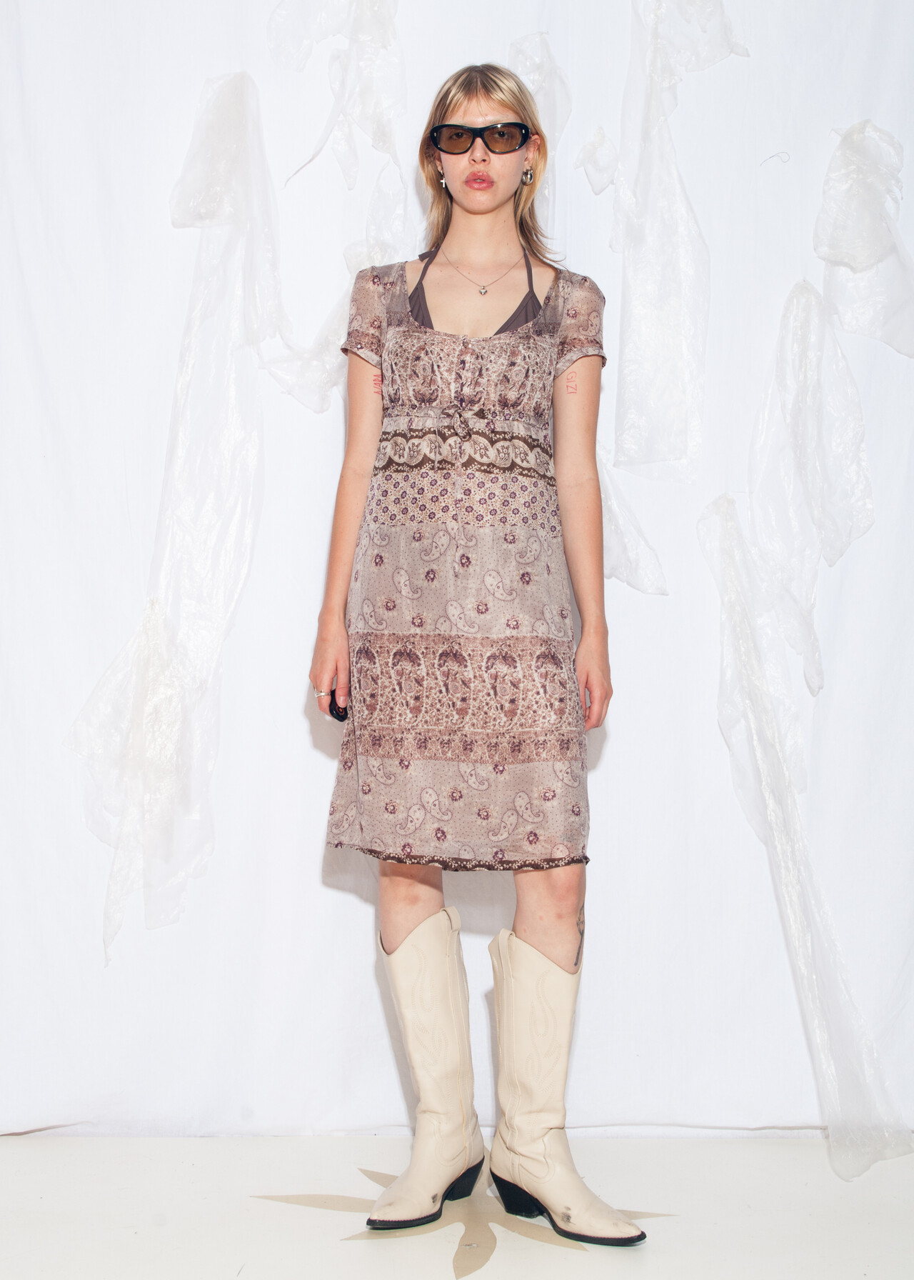 Tags: 2000s style clothing, Alice Cullen outfit, paisley printed, pure silk dress, romantic boho, summer midi dress, y2k vintage fashion