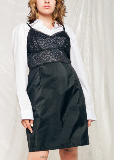 This Y2K vintage dress is your ticket to a preppy goth look, blending dark whimsi twee with frilly tunic vibes.