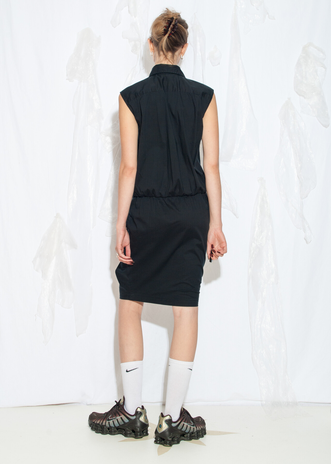 Tags: 2000s style clothing, cotton dress, designer vintage, dropped waist, European vintage, made in Italy, Max Mara, midi shirt dress, minimalist, office siren, officecore, y2k vintage fashion