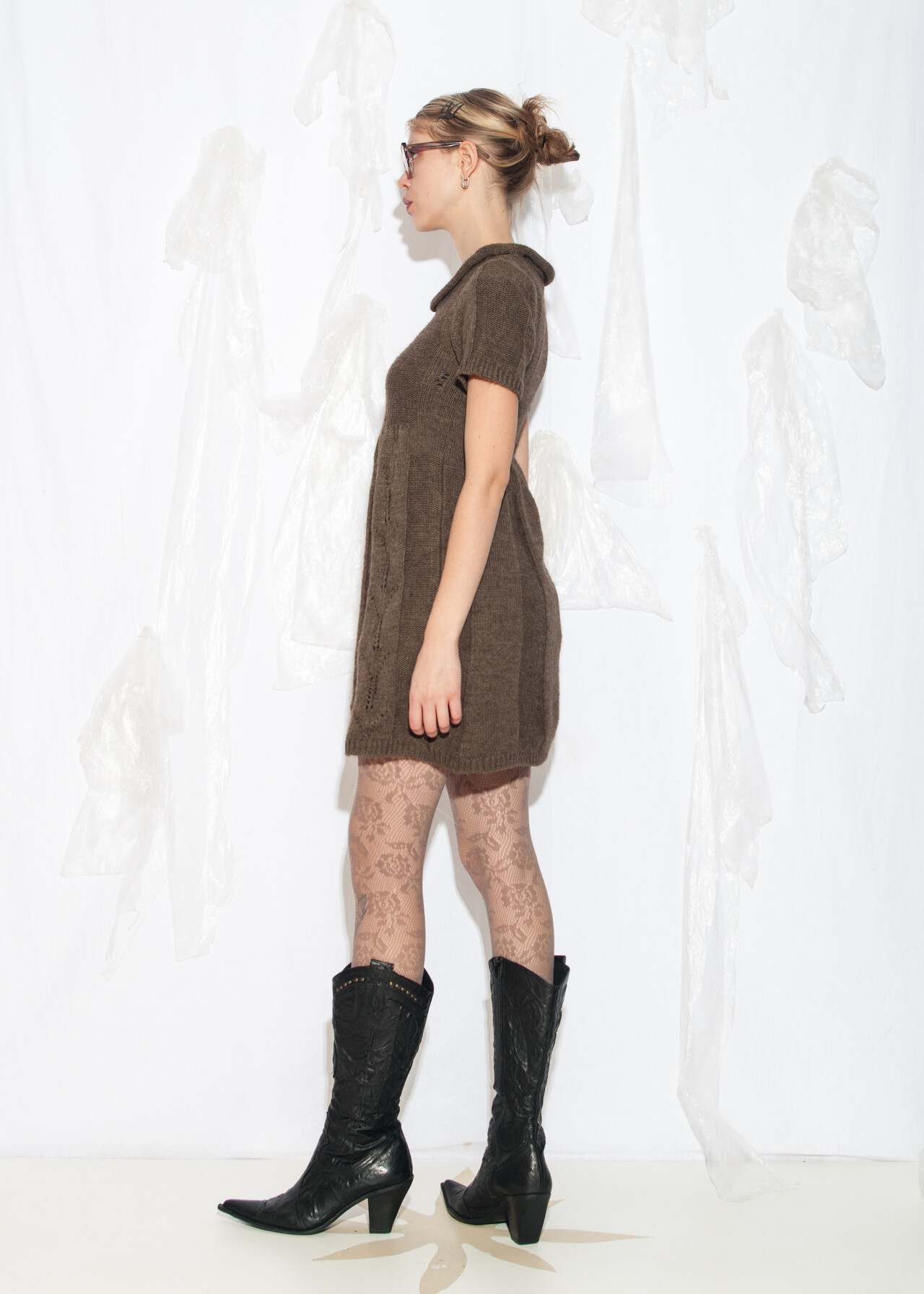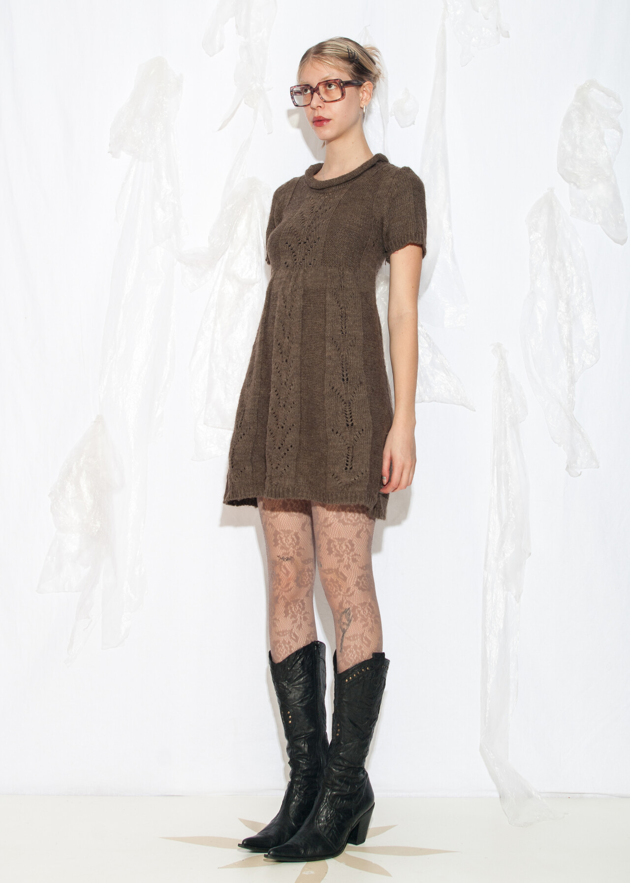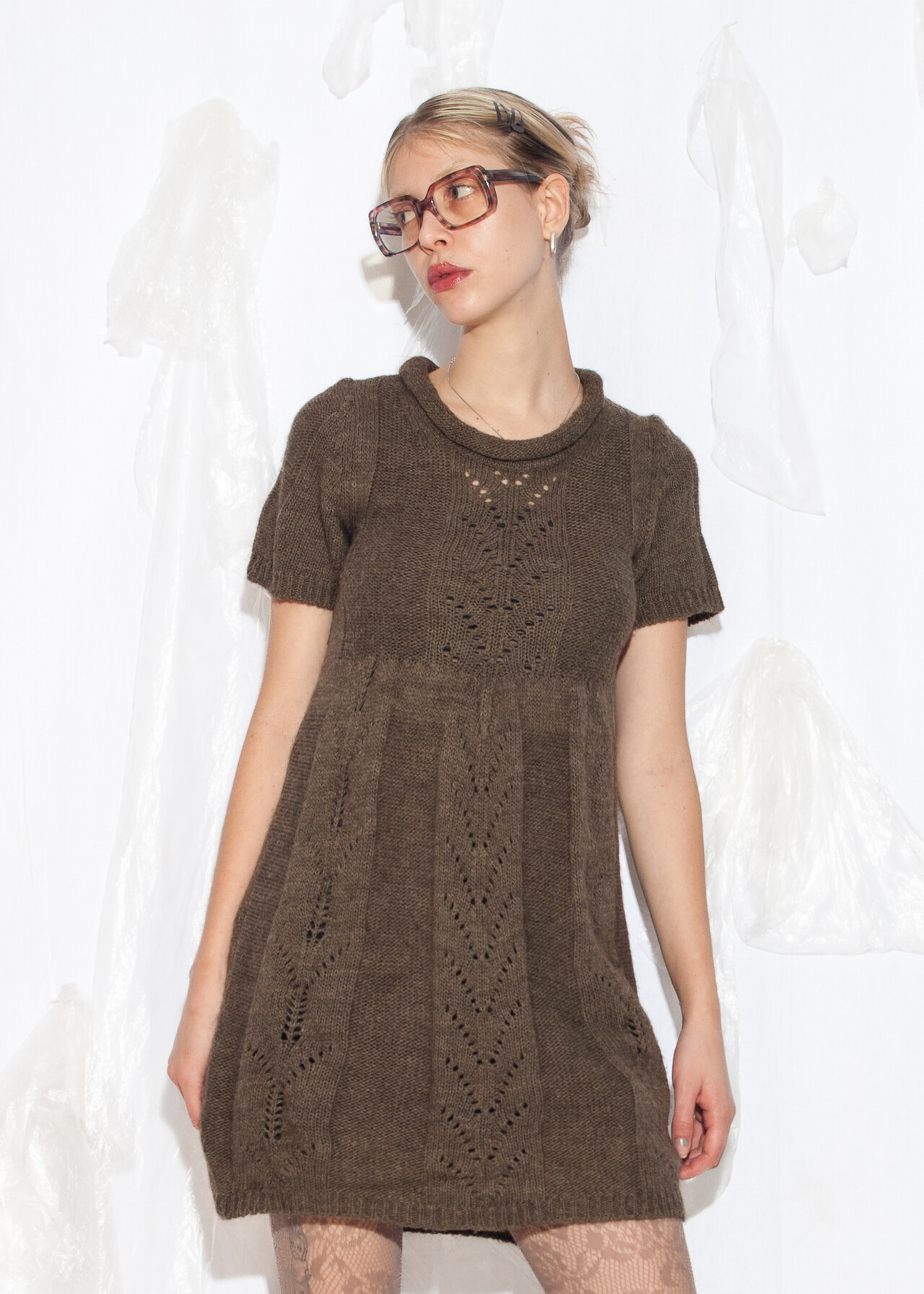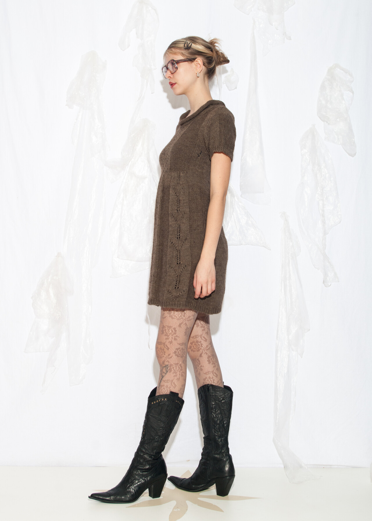 Vintage Y2K Wool Mohair Blend Mini Dress in Brown