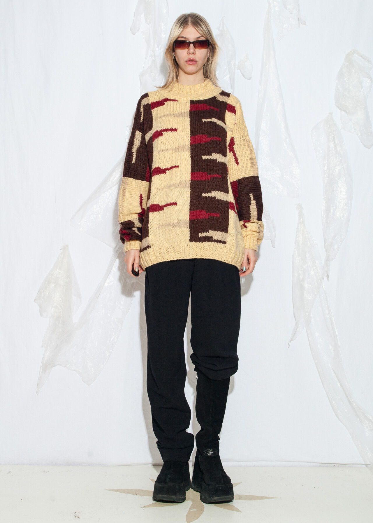 This 80s vintage knit jumper is hand knitted and oversized, perfect for when you want to look like a cozy work of abstract art.
