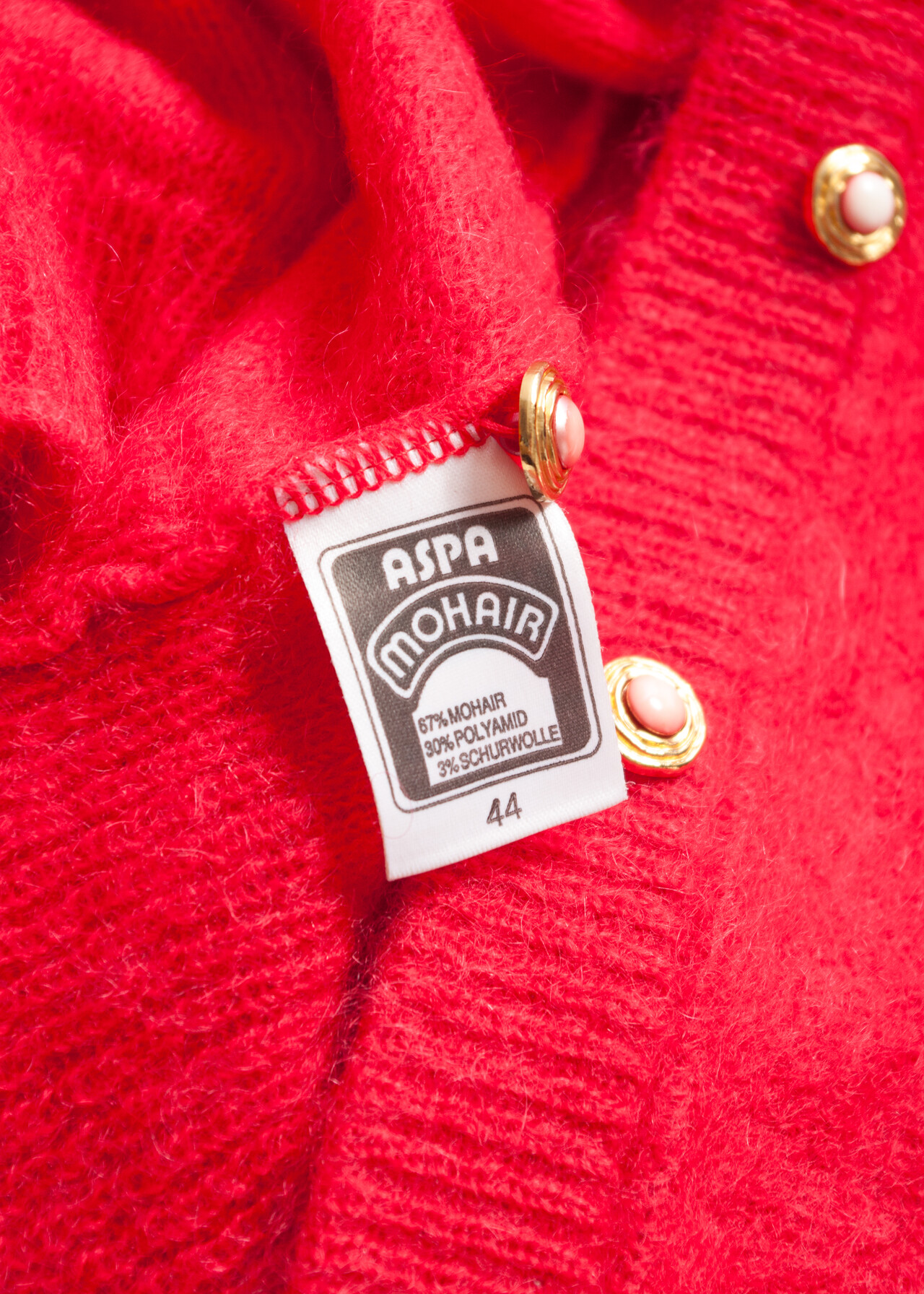 Vintage 80s Mohair Wool Knit Cardigan in Red